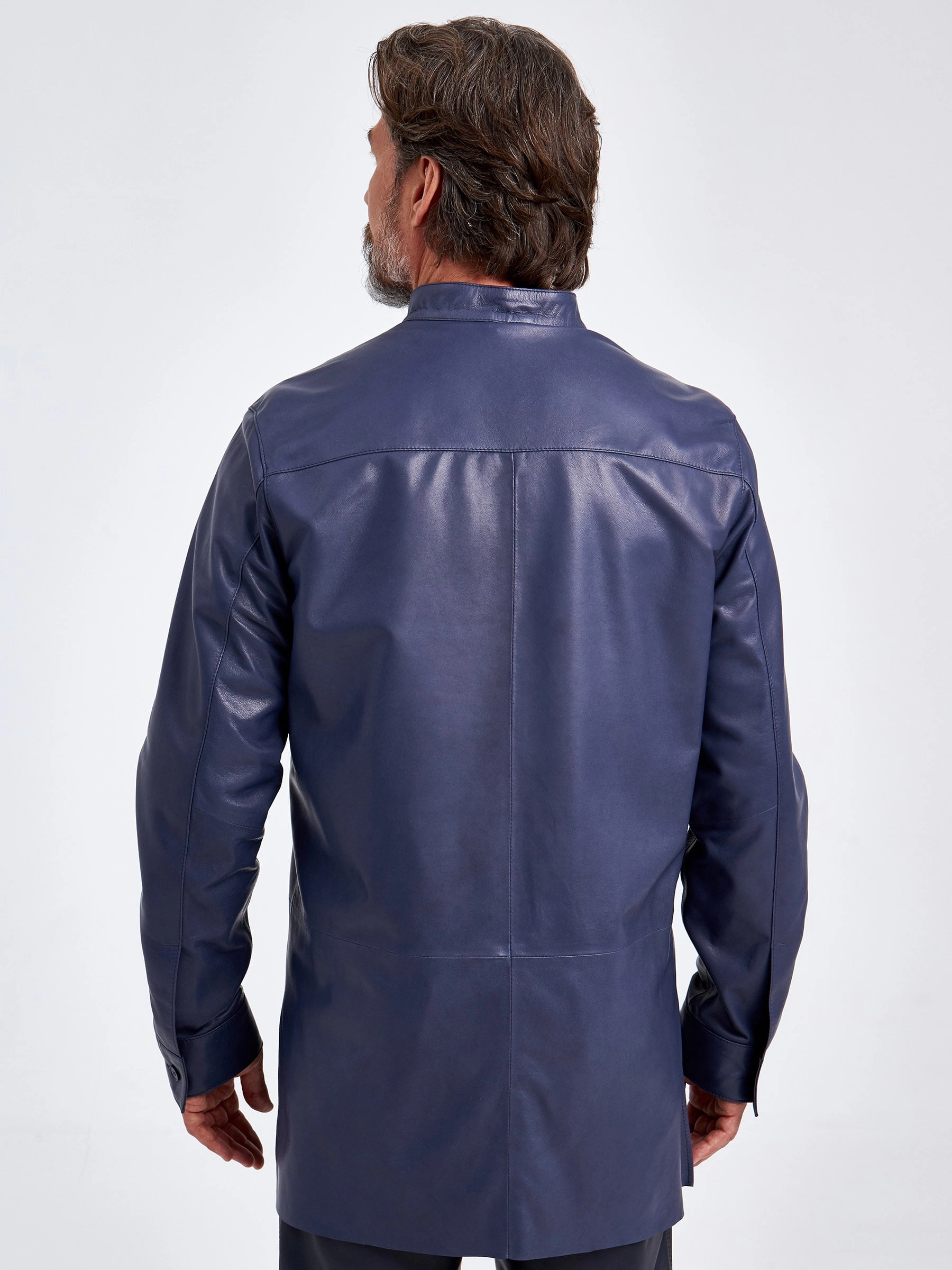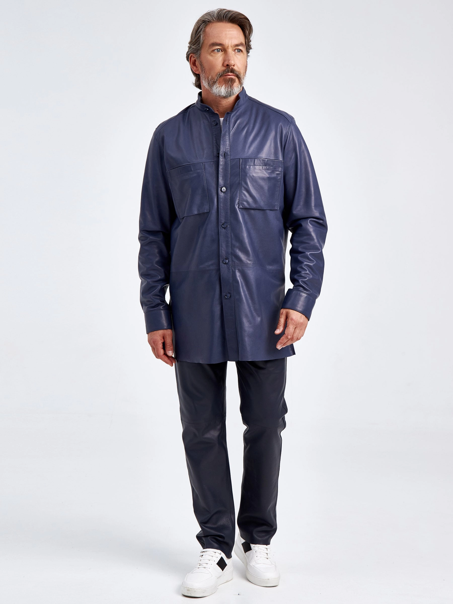 Товар рубашка из натуральной кожи премиум класса для мужчин 01, синяя, размер 48, артикул 130011 выполнен из натуральной кожи с застежкой пуговицы. Рассчитан на сезон: демисезон. Длина изделия 85 см, силуэт прямой.
