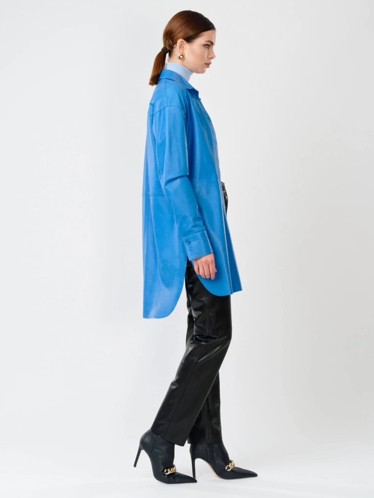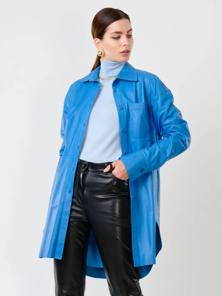 Женская кожаная рубашка с поясом из натуральной кожи 01_1, голубая, размер 46, артикул 90751