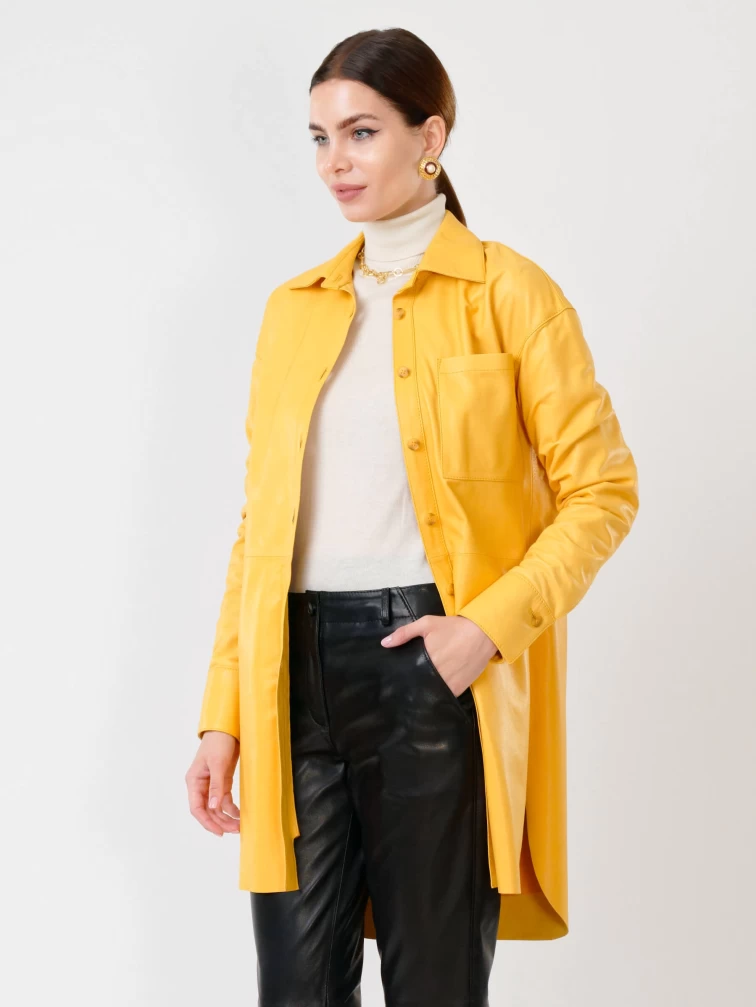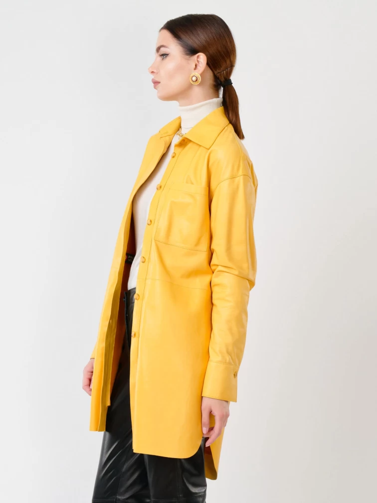 Женская кожаная рубашка с поясом из натуральной кожи 01_1, желтая, размер 46, артикул 90761