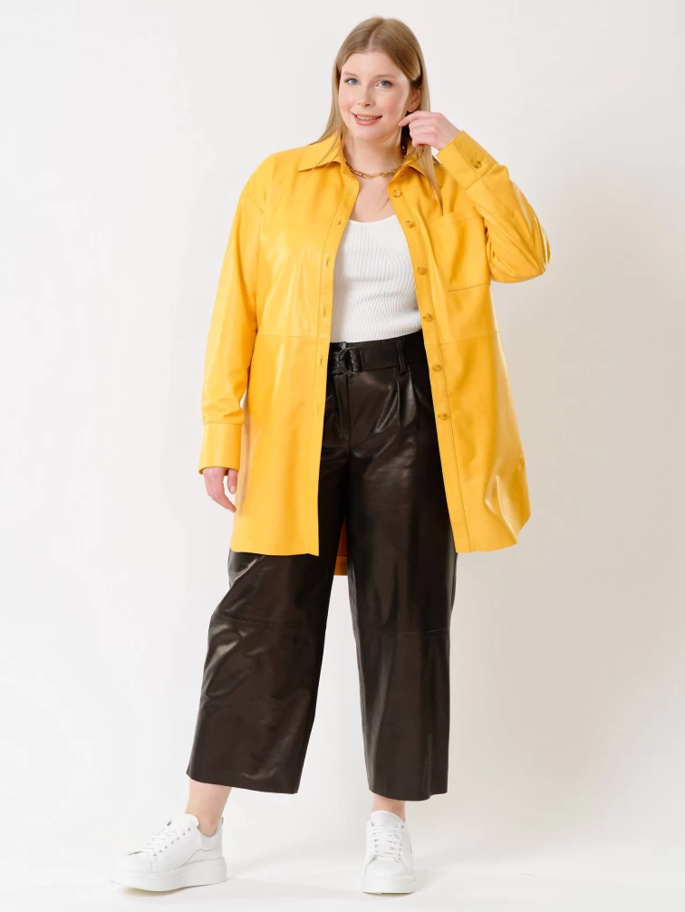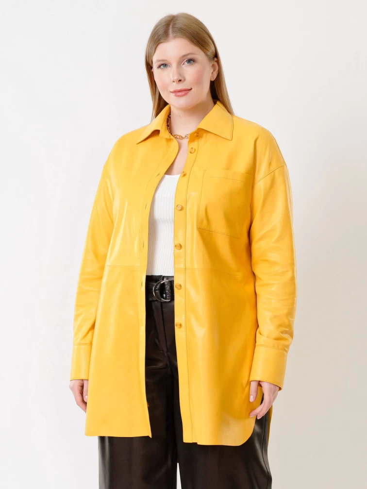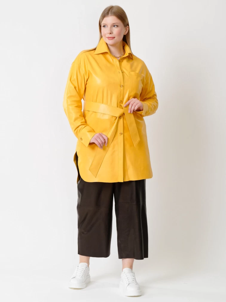 Кожаная женская рубашка с поясом из натуральной кожи 01_2, желтая, размер 48, артикул 91402