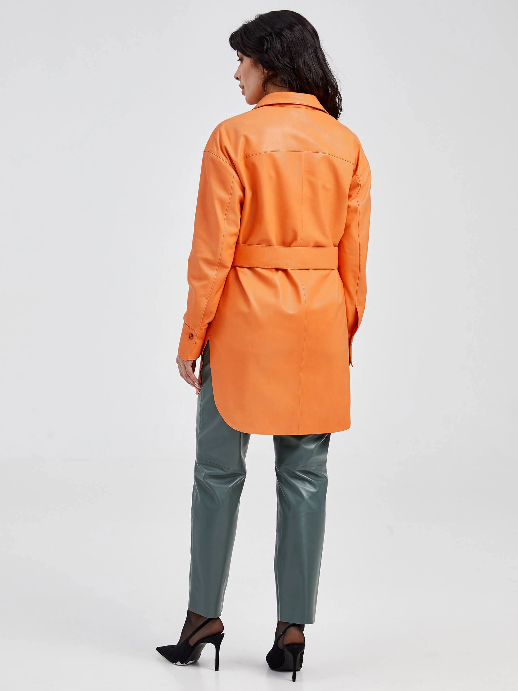 Женская кожаная рубашка с поясом из натуральной кожи 01_3, оранжевая, размер 46, артикул 90520