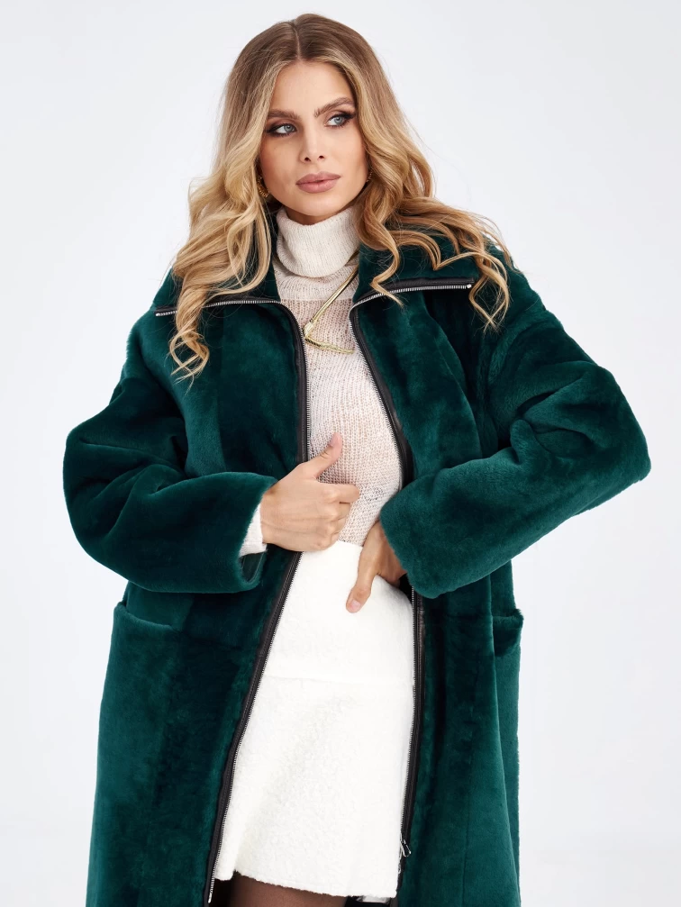 Товар двусторонняя шуба из астрагана для женщин премиум класса 2015н, зеленая, размер 46, артикул 13710 выполнен из астраган с застежкой молния. Рассчитан на сезон: осень-зима. Длина изделия 115 см, силуэт прямой.