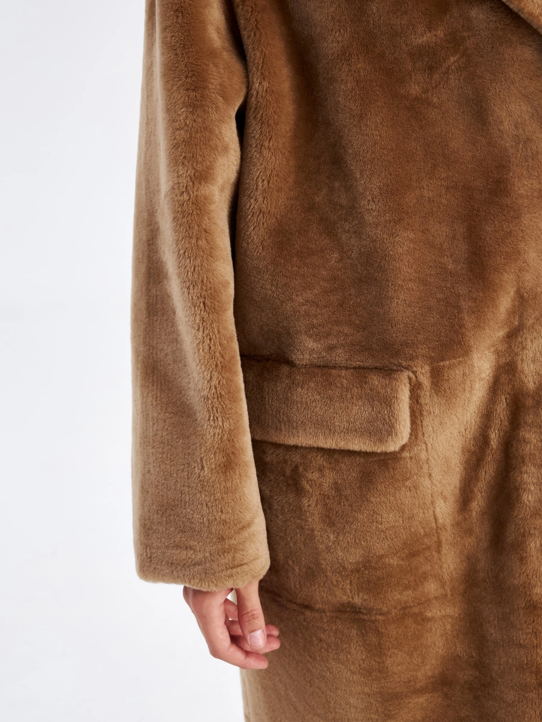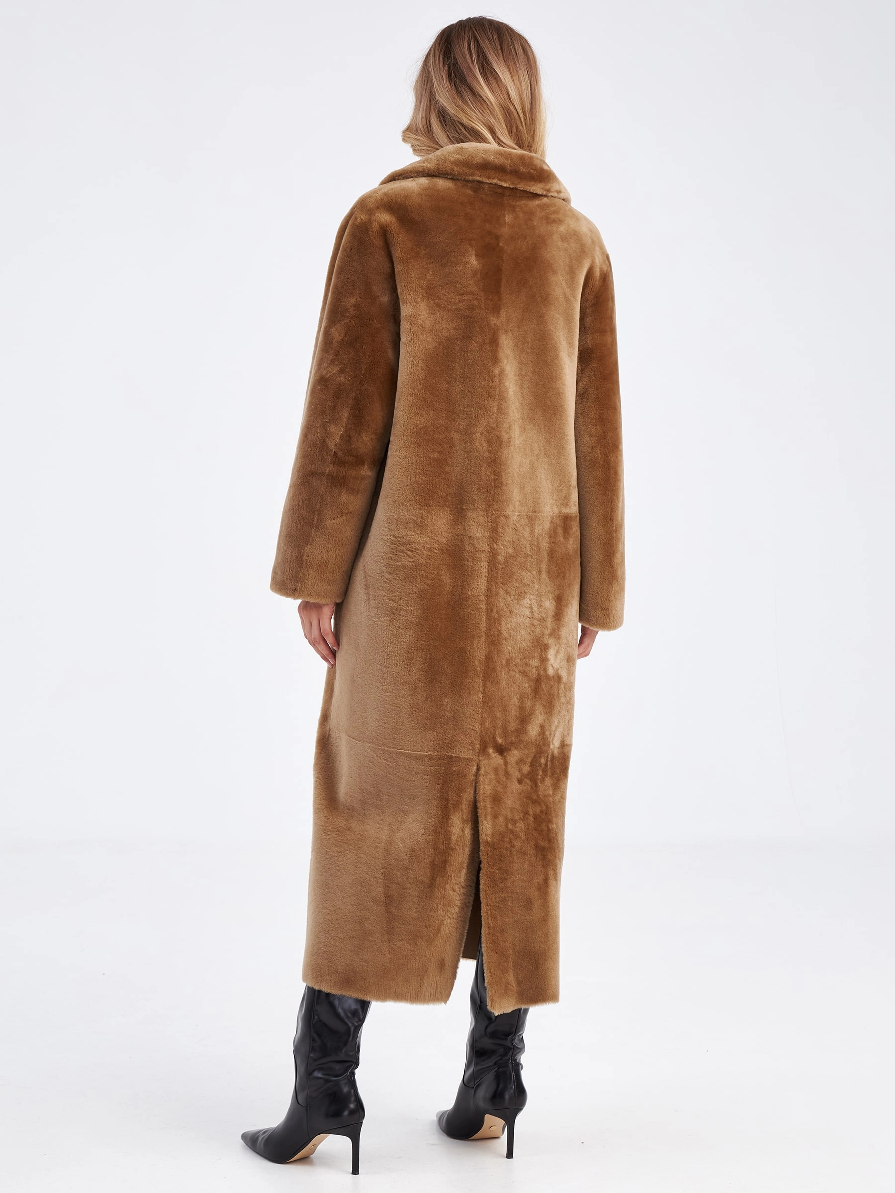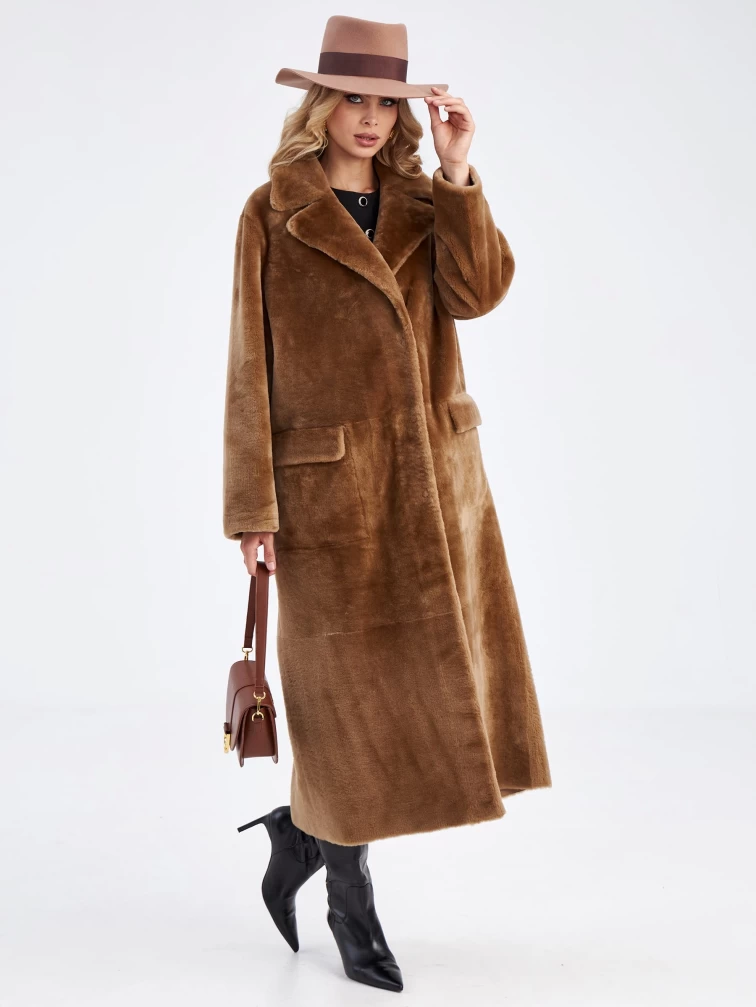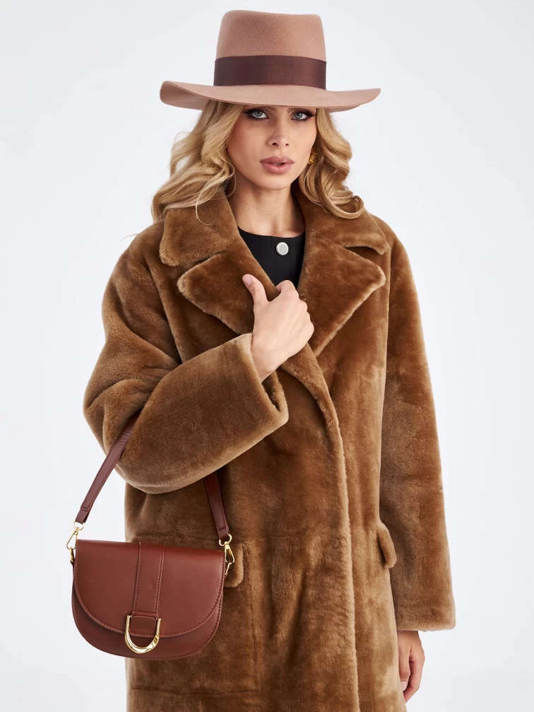 Женская двусторонняя шуба из меховой овчины премиум класса 2030, коричневая, размер 44, артикул 13720