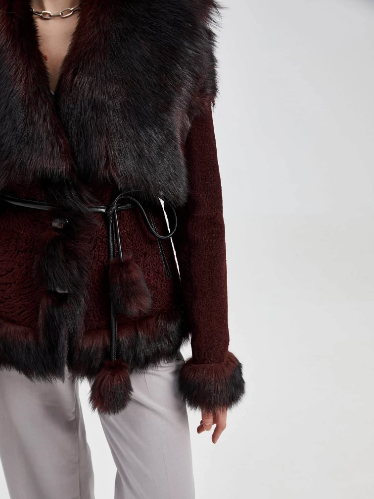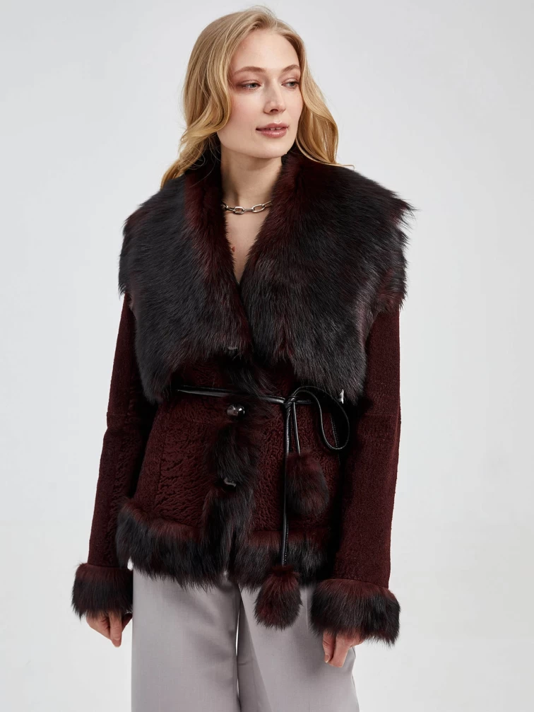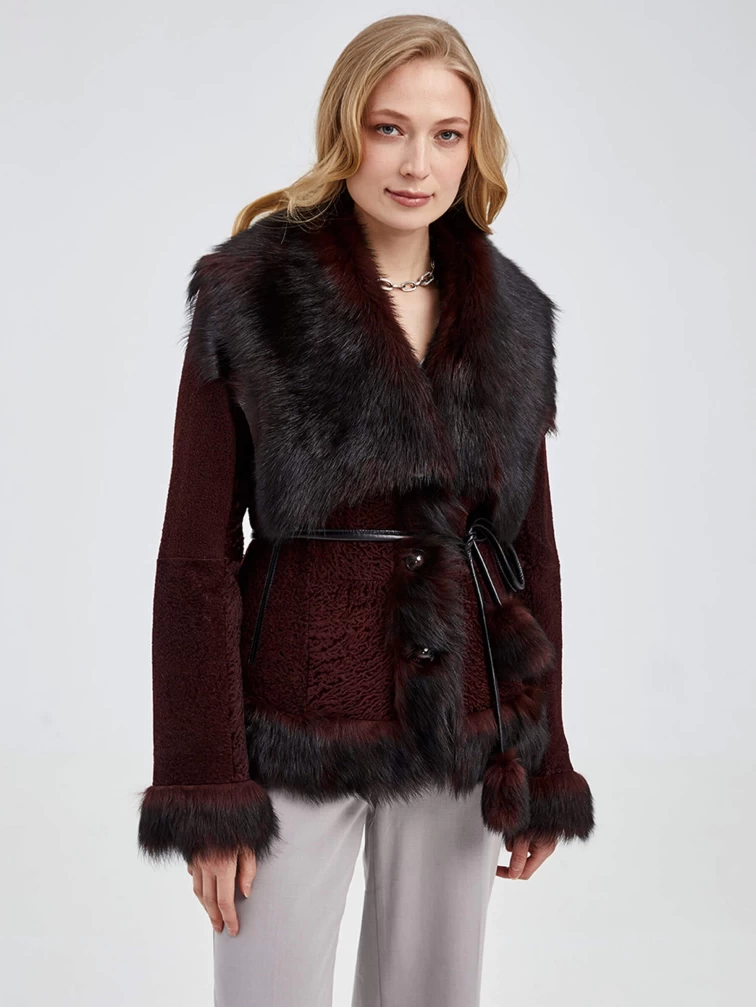 Короткая женская шуба из астрагана с отделкой из меха тосканы 10мех, коричневая, размер 42, артикул 13690