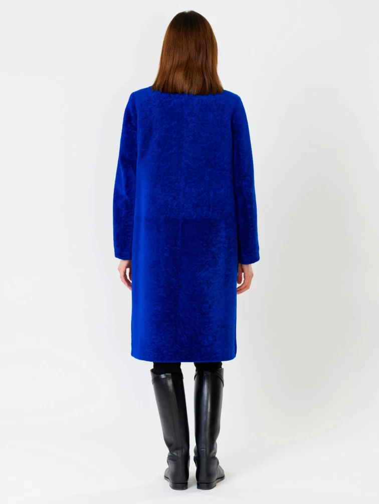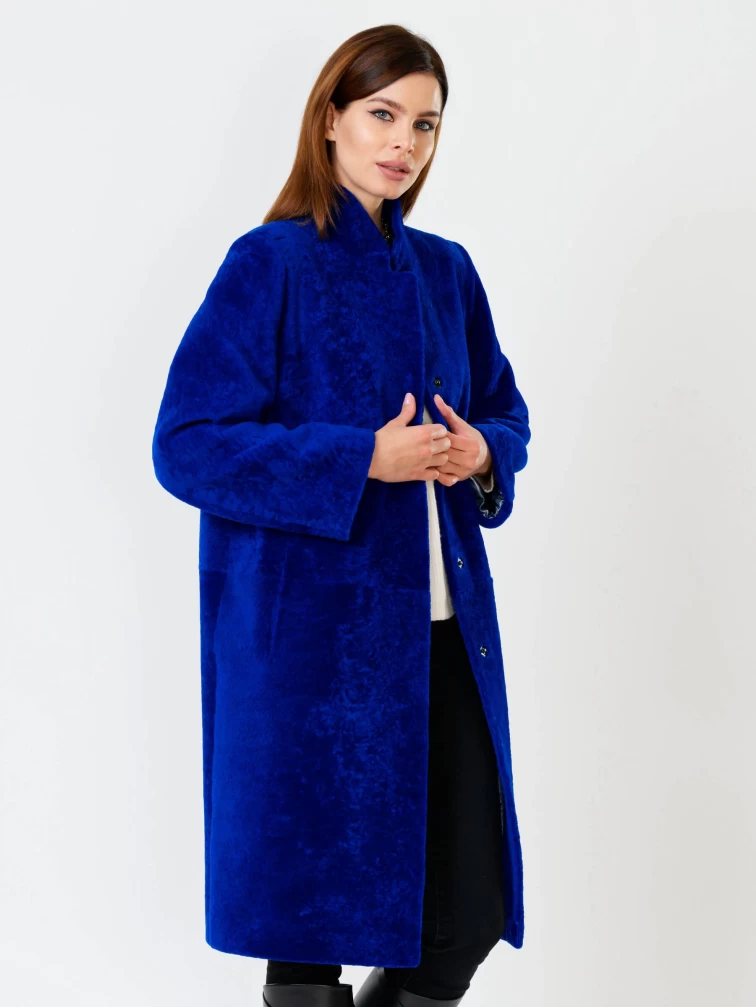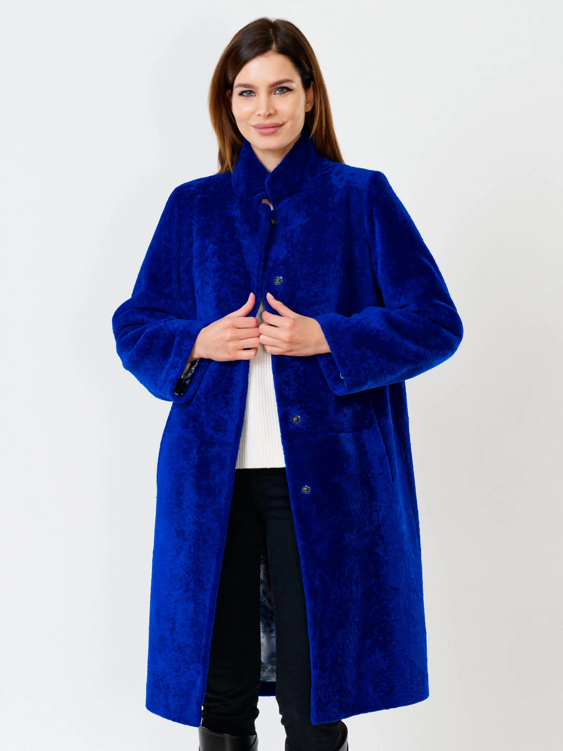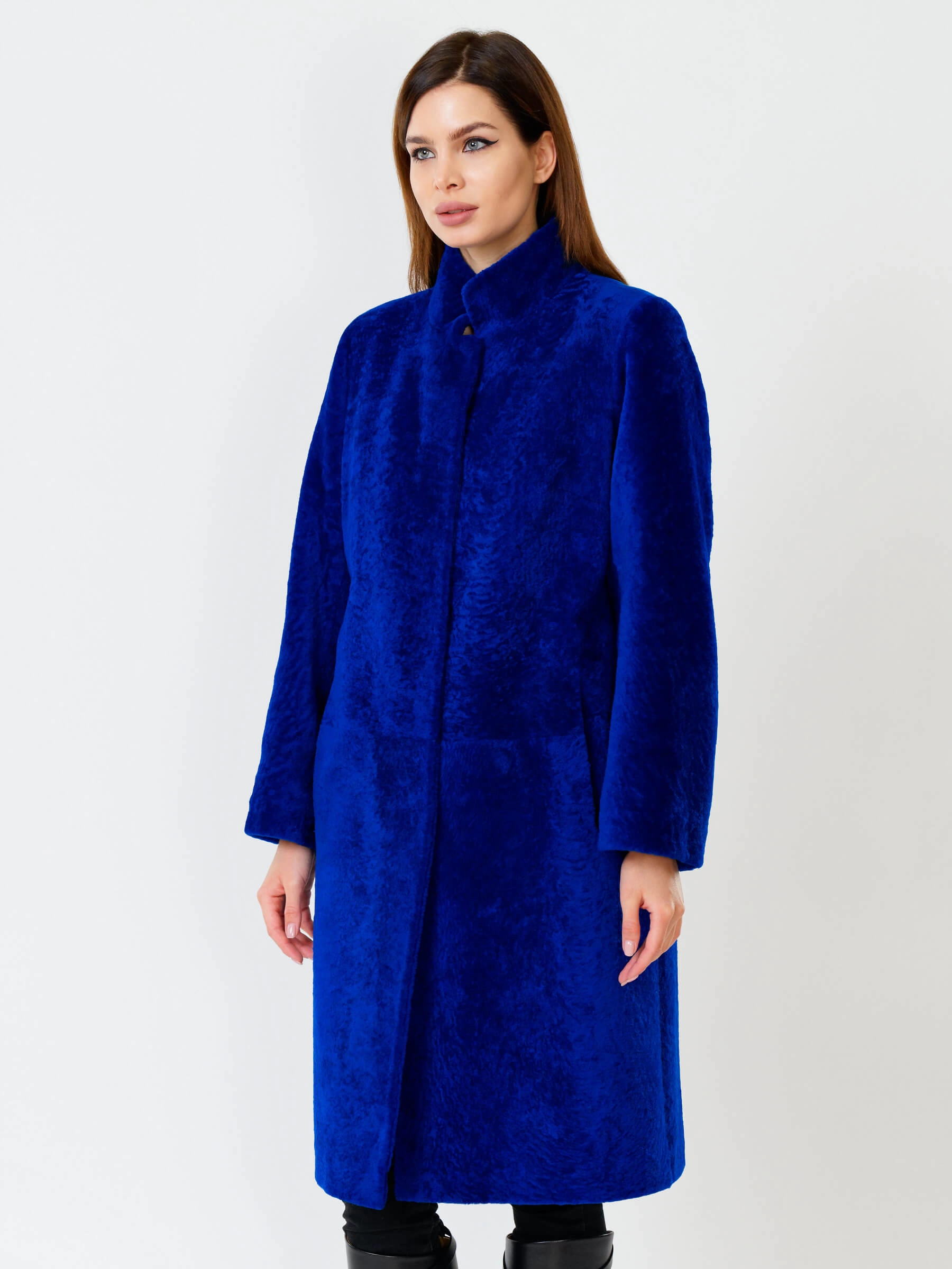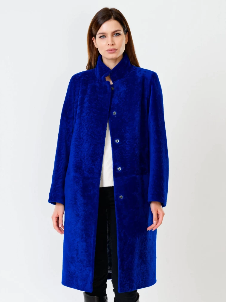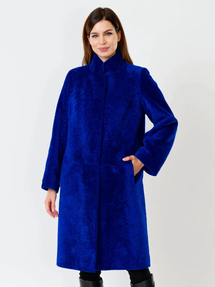 Товар шуба из астрагана с воротником стойкой для женщин 54мех, синяя, размер 46, артикул 13631 выполнен из астраган с застежкой кнопки. Рассчитан на сезон: осень-зима. Длина изделия свыше 90 см, силуэт прямой.