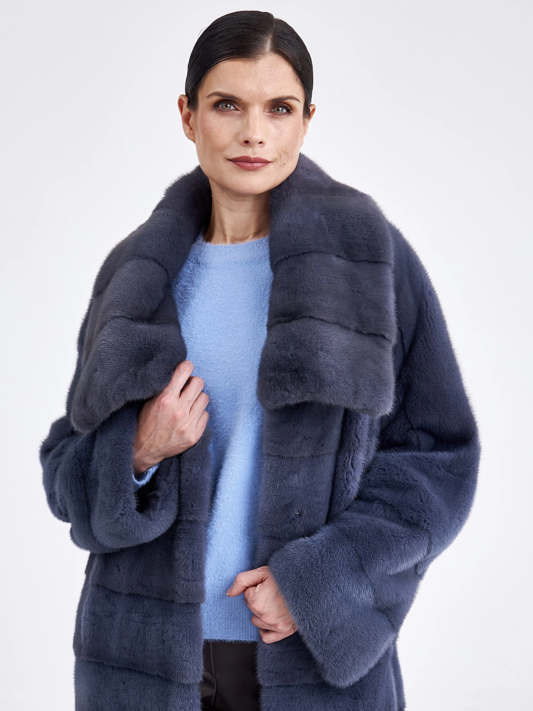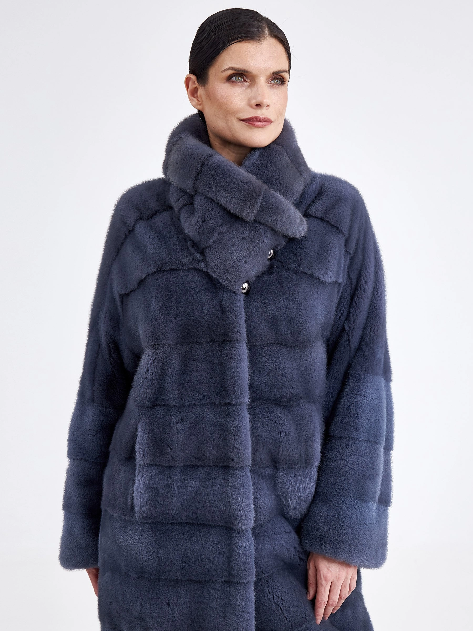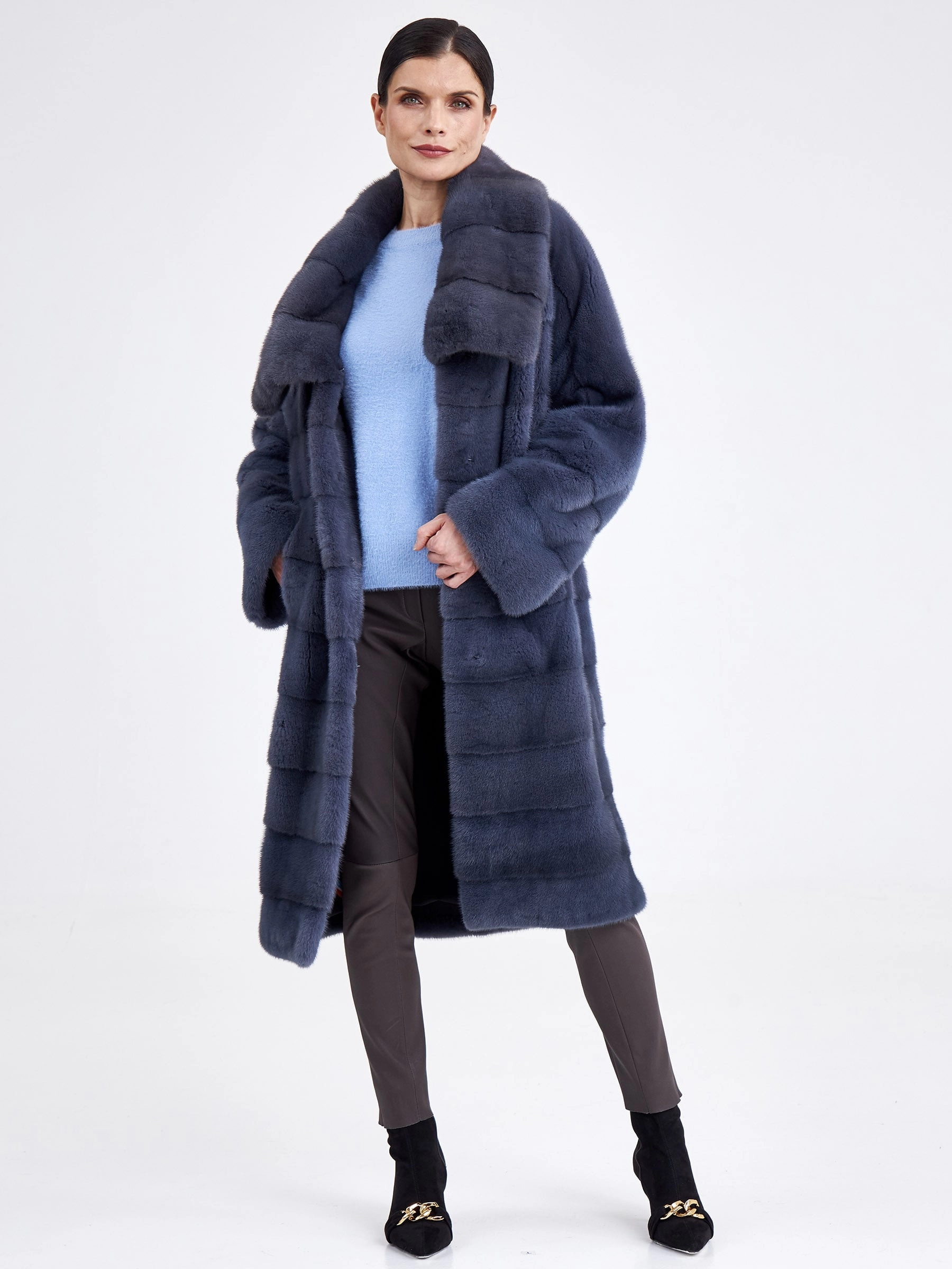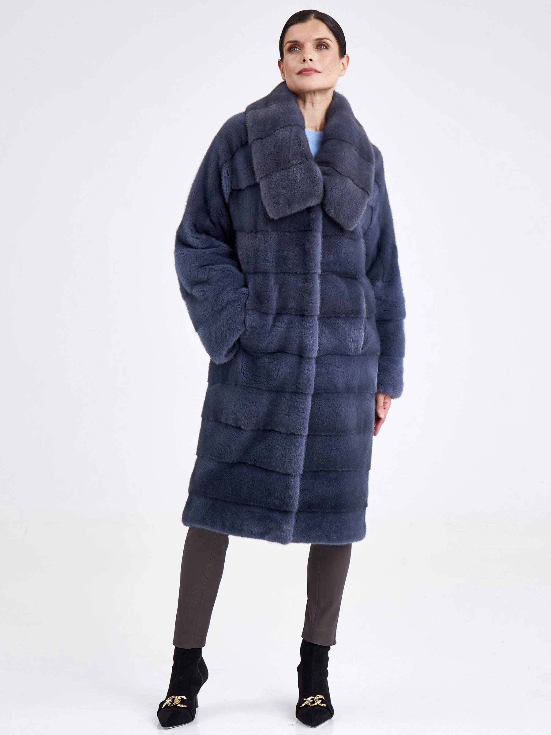 Длинная поперечная женская шуба из меха норки 1150(в), серая, размер 44, артикул 33180