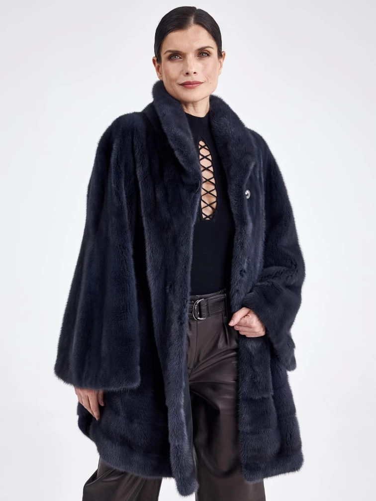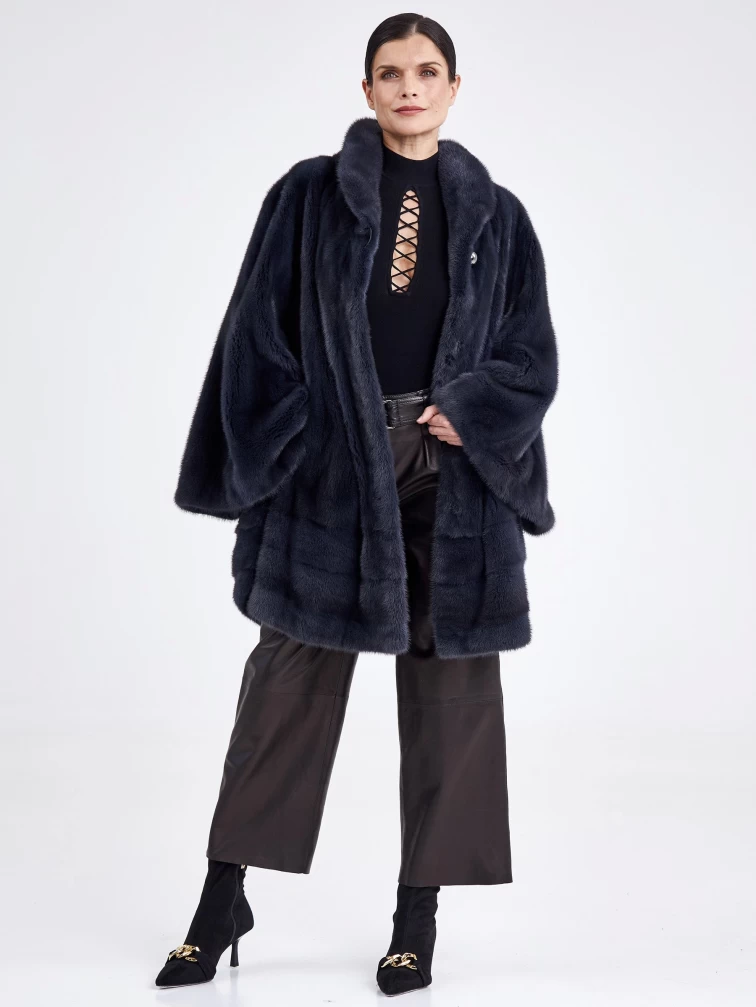 Шуба из меха норки женская 1326(в), графитовая, размер 48, артикул 33320
