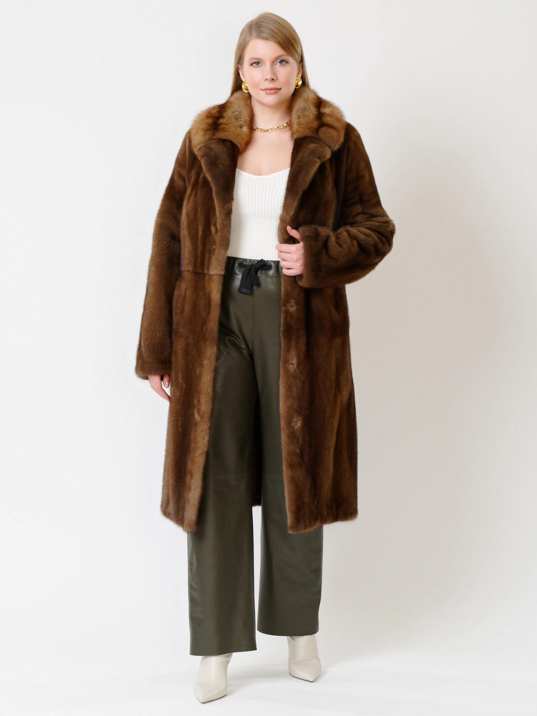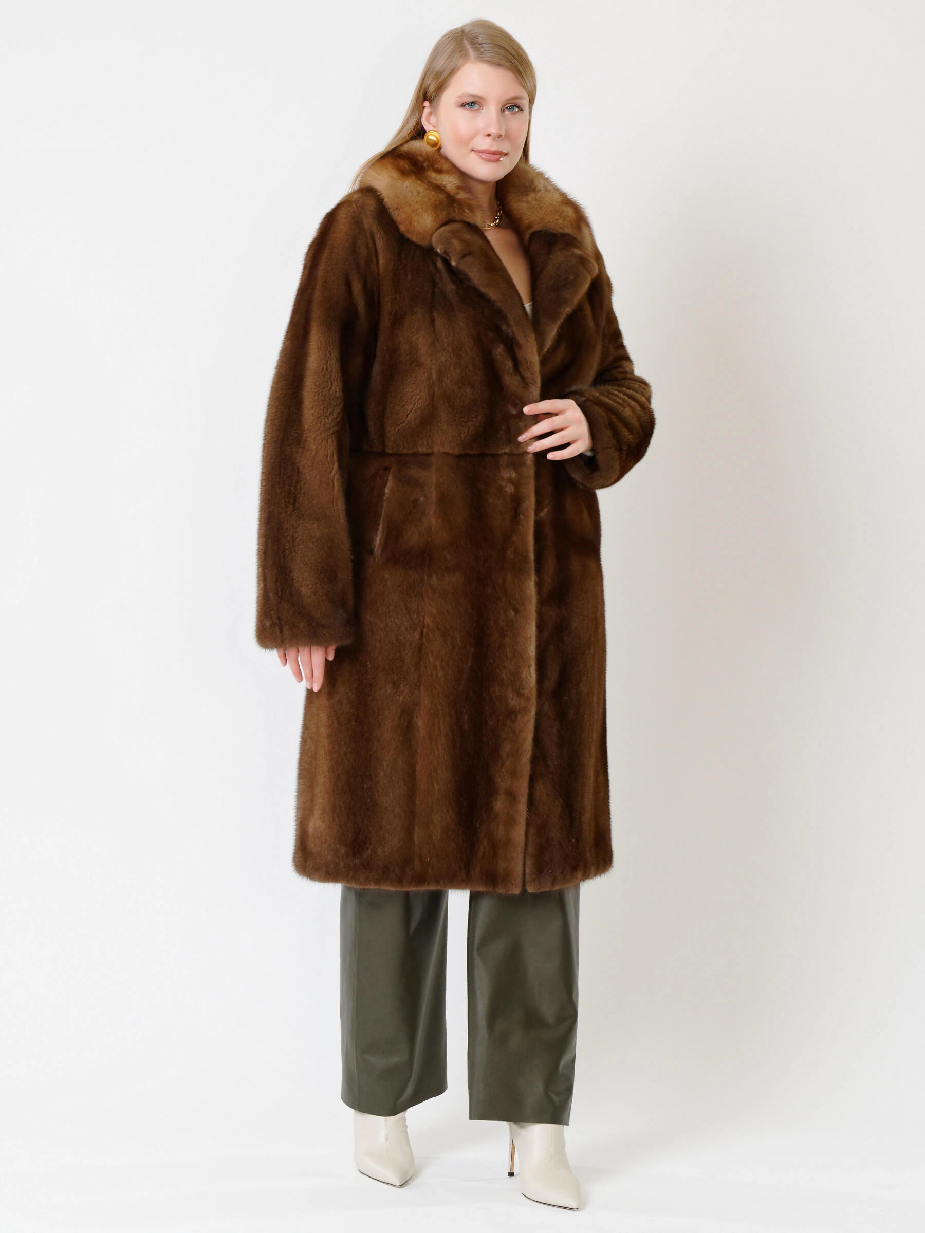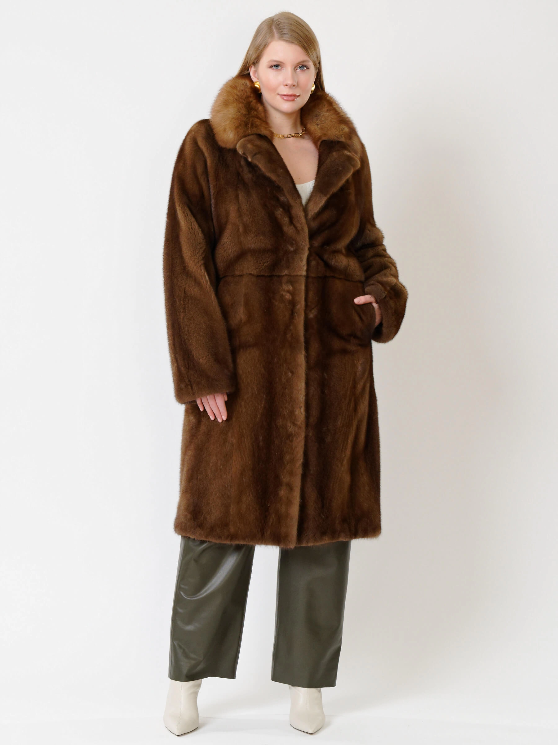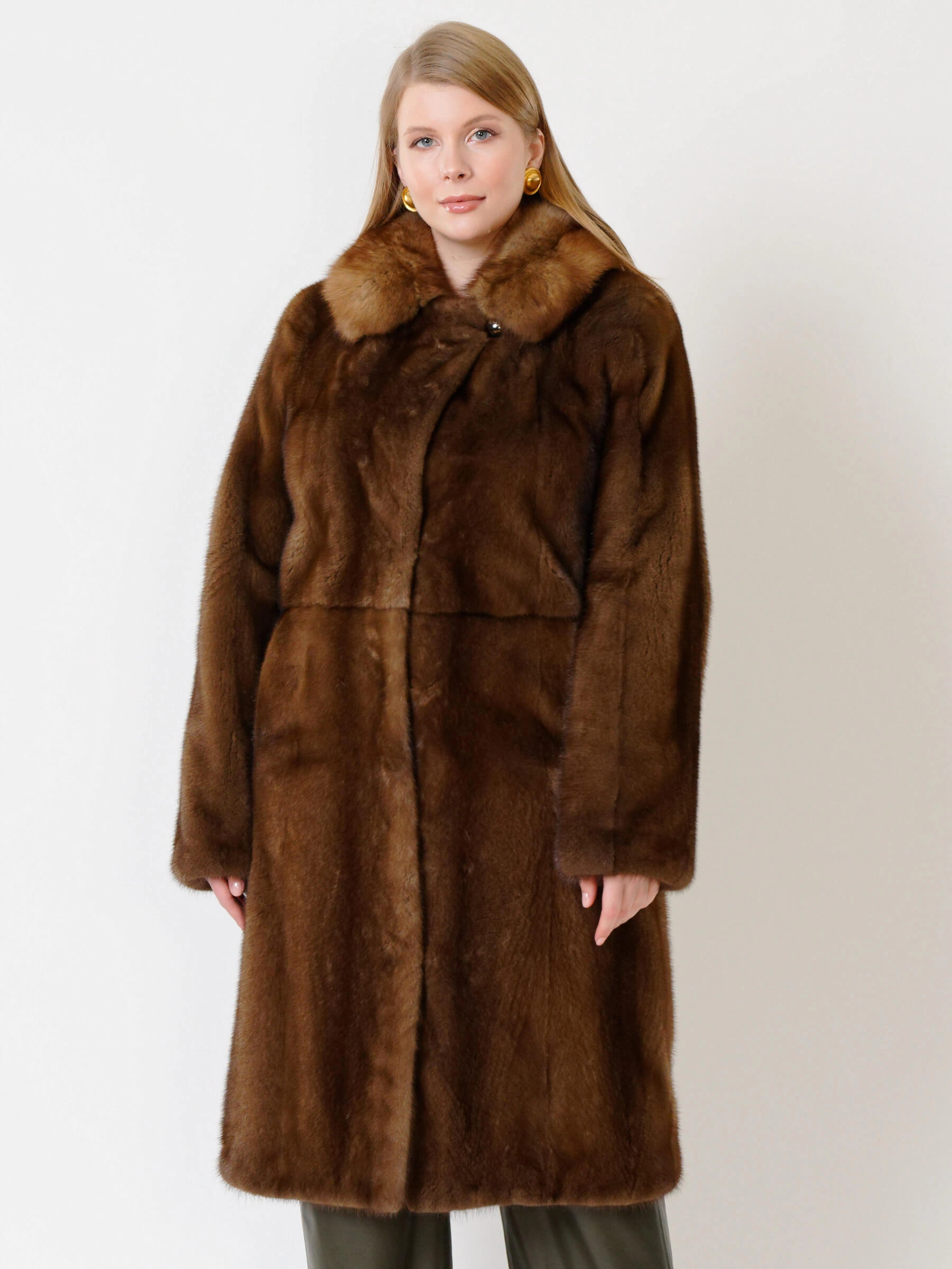 Норковая женская шуба с английским воротником из меха соболя 17417(ав), коричневая, размер 48, артикул 33470