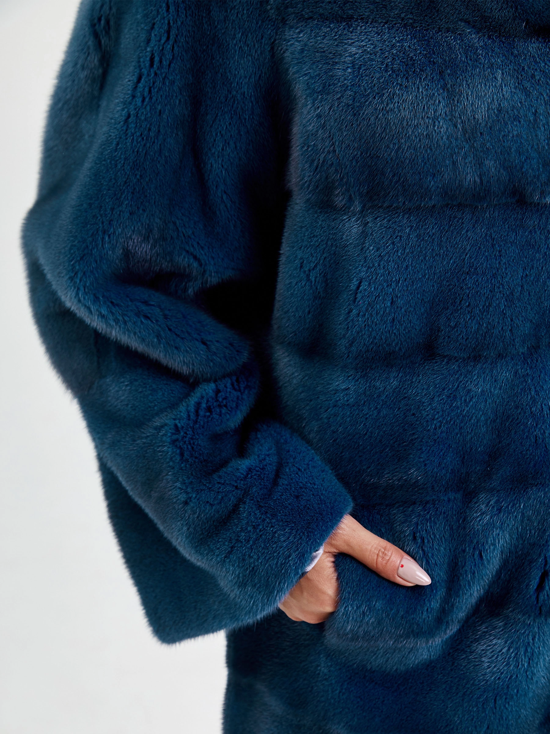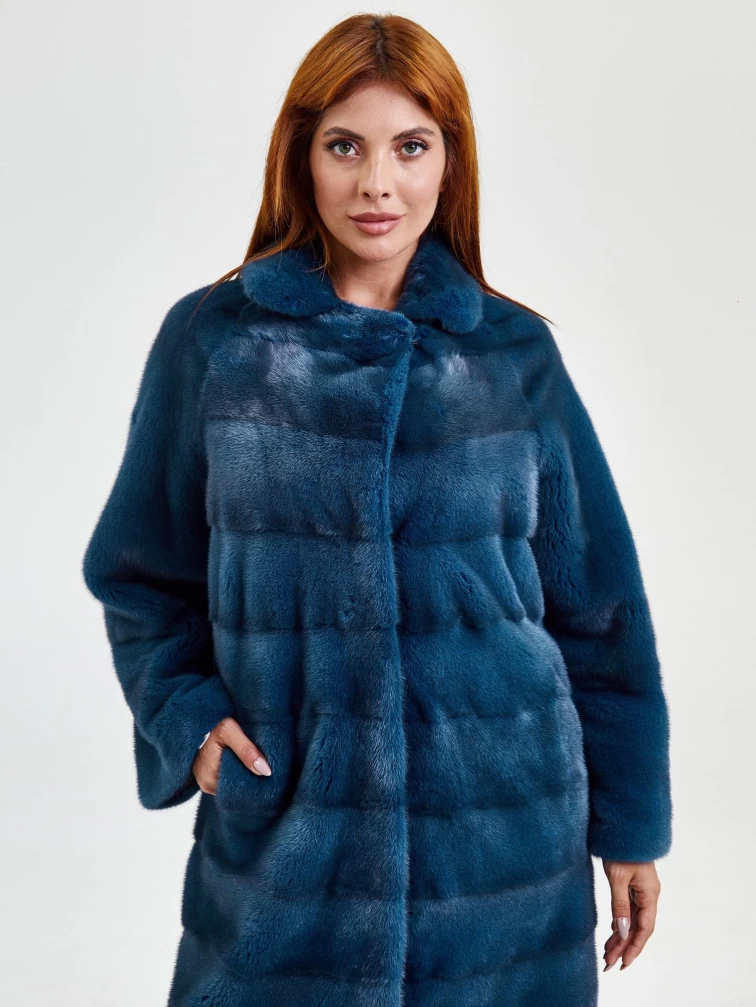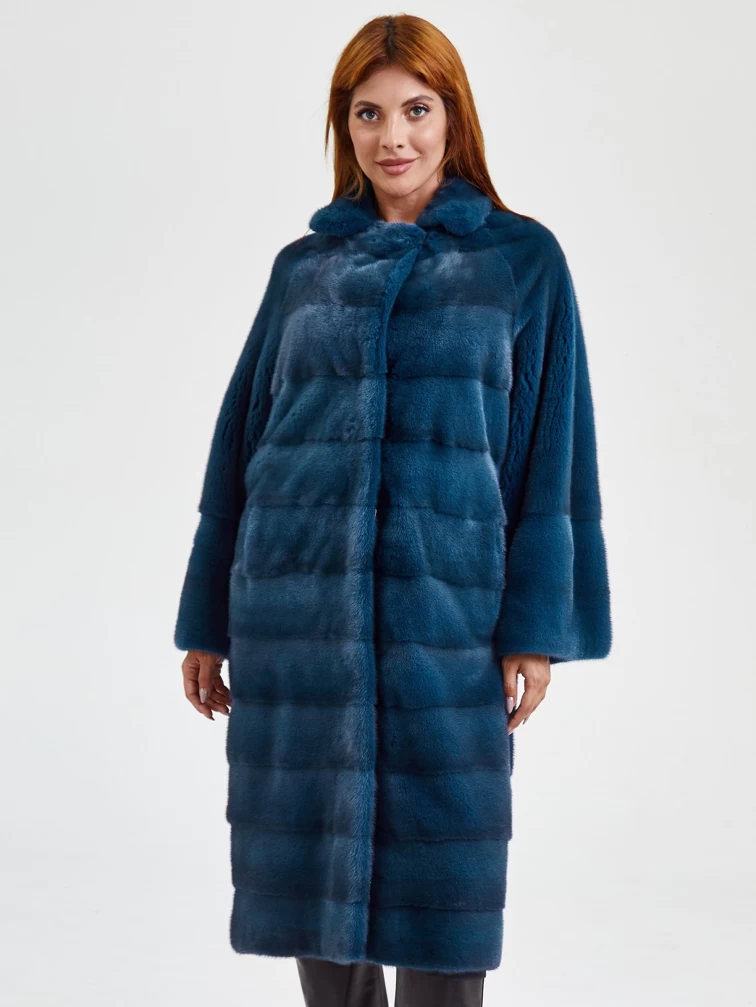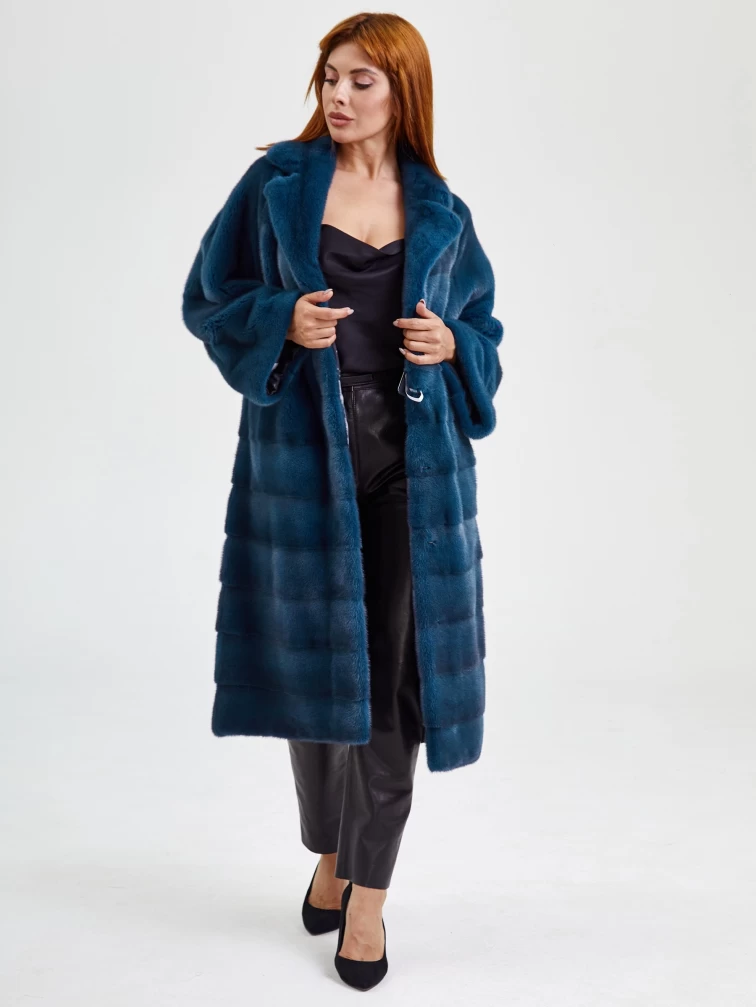 Норковая длинная женская шуба с английским воротником 18А182(ав), синяя, размер 44, артикул 33500