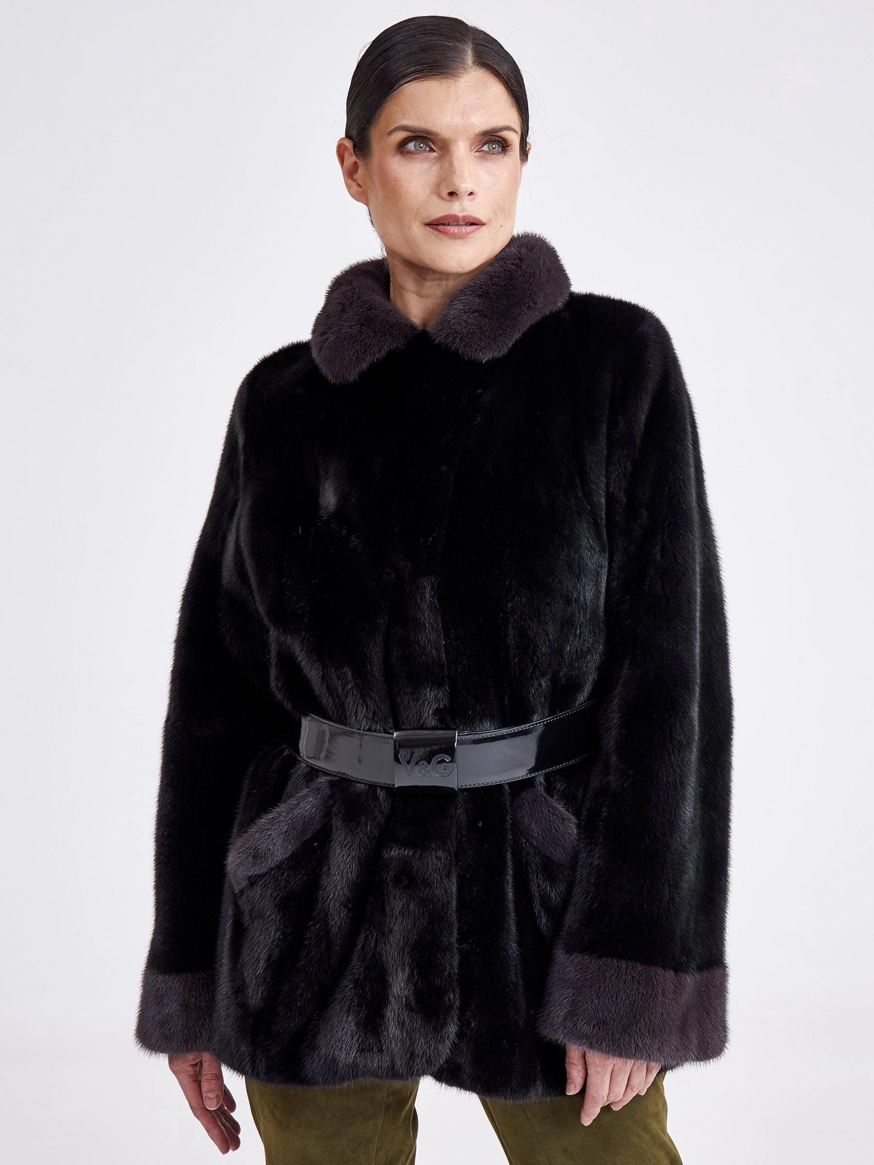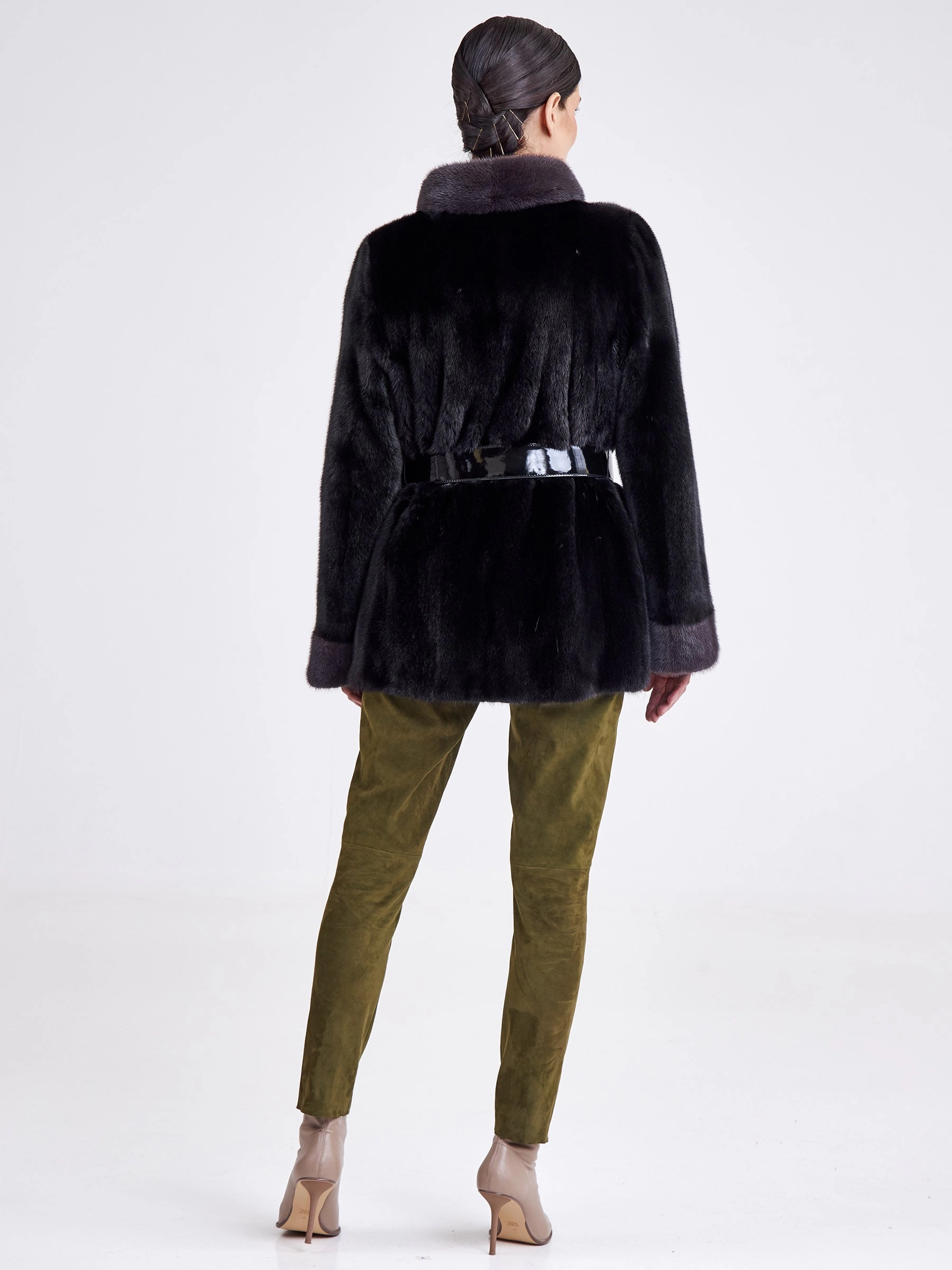 Шуба автоледи из меха норки с поясом для женщин 19011(ав), черная, размер 48, артикул 33330