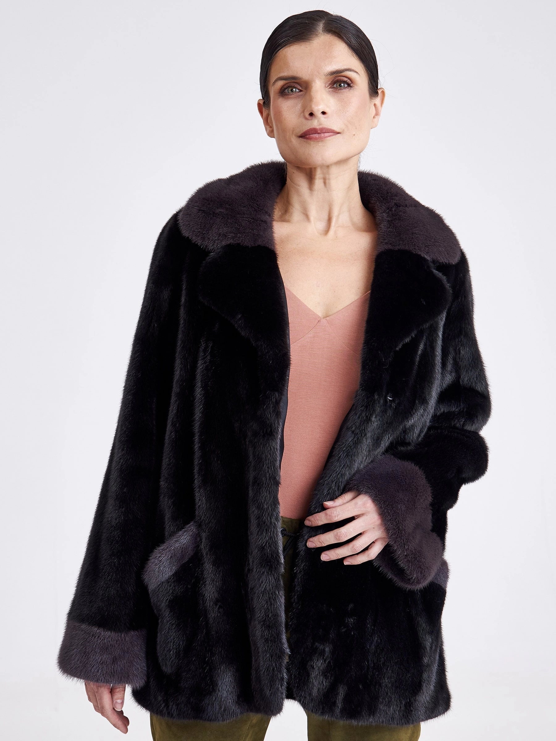 Эта классическая короткая шуба из низковорсовой крашеной норки насыщенного синего цвета демонстрирует безупречную зимнюю элегантность. Модель с прямым силуэтом, втачными плечами и строгим английским воротником обеспечивает идеальную посадку по фигуре. Короткая длина (51–74 см) и лаконичная застёжка на декоративные клипсы придают образу современную лёгкость. Шуба дополнена двумя функциональными карманами и длинным поясом, позволяющим варьировать силуэт. Благодаря шелковистому низковорсовому меху и подкладке из 100% вискозы изделие исключительно тёплое, лёгкое и комфортное для носки. Совет стилиста: наденьте её поверх однотонного платья-миди с сапогами на тонком каблуке для вечернего выхода или сочетайте с высокими кожаными брюками и объёмным свитером для создания дерзкого городского образа с акцентом на талии.