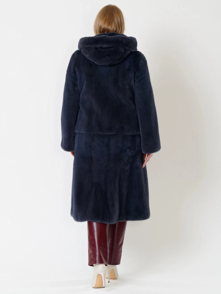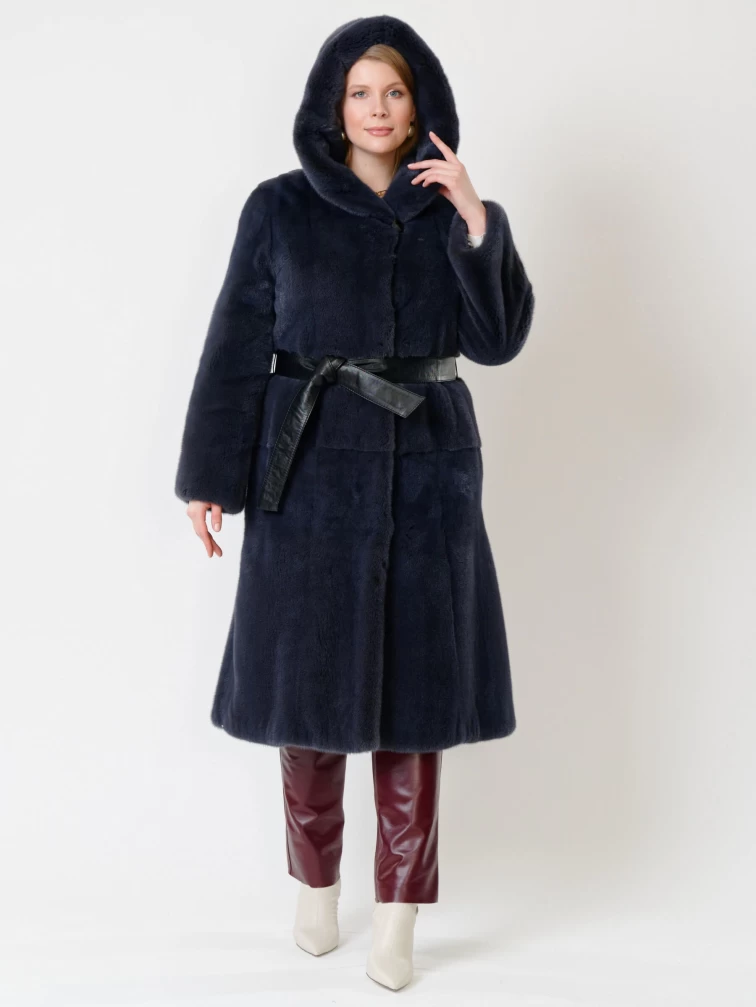 Шуба из меха норки датской селекции. Классика! А качественная классика – всегда в моде. Удобный капюшон. Очень удобные широкие рукава. Изящный пояс из кожи. Застёжки – европейские шубные клипсы. Красивая и надёжная смесовая подкладка. Все технологические швы продублированы на х/б кромку вручную. Борт, область вокруг кармана и низ рукавов продублированы бортовкой из льна с вкраплением конского волоса. Аккуратность во всей работе. Чёткая, выверенная посадка по фигуре. Прекрасная свобода движений.