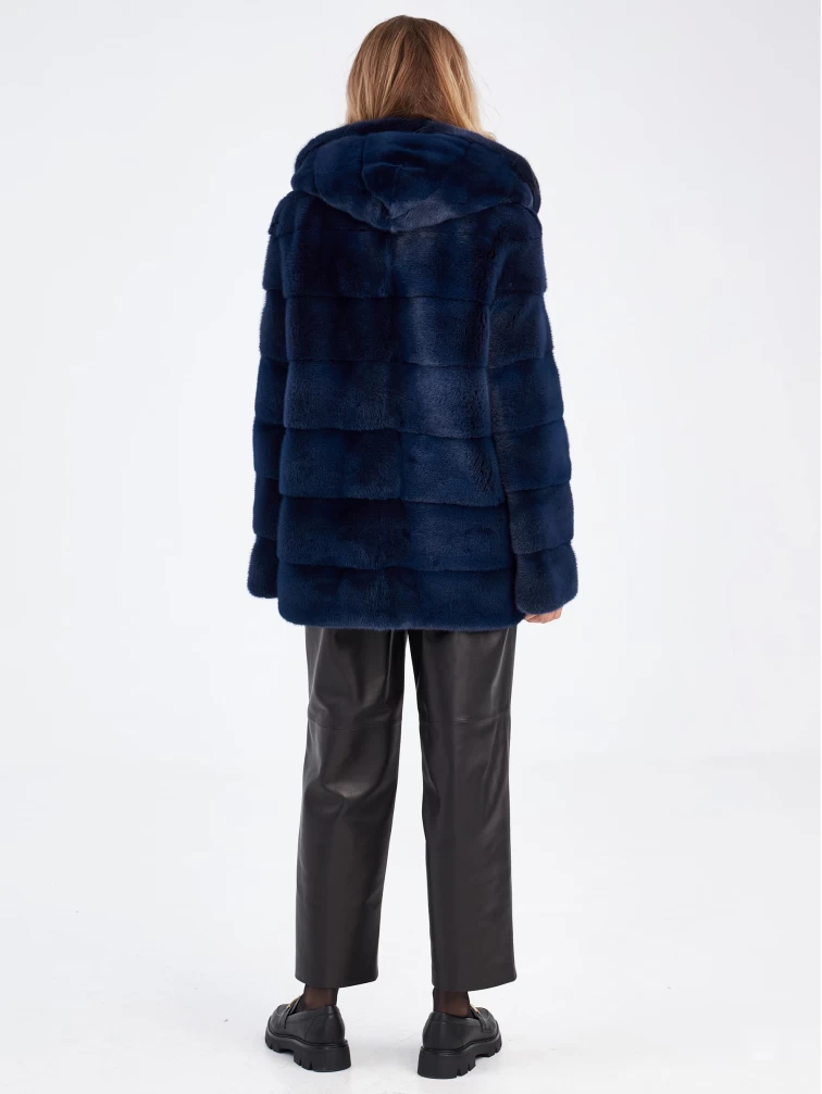 Легкая и очень комфортная куртка выполенная из благородного меха норки с густым ворсом, которая хорошо сохраняет тепло в холодную погоду. Прямой крой, горизонтальная раскладка меха. Объемный капюшон обеспечит дополнительную защиту от холода.