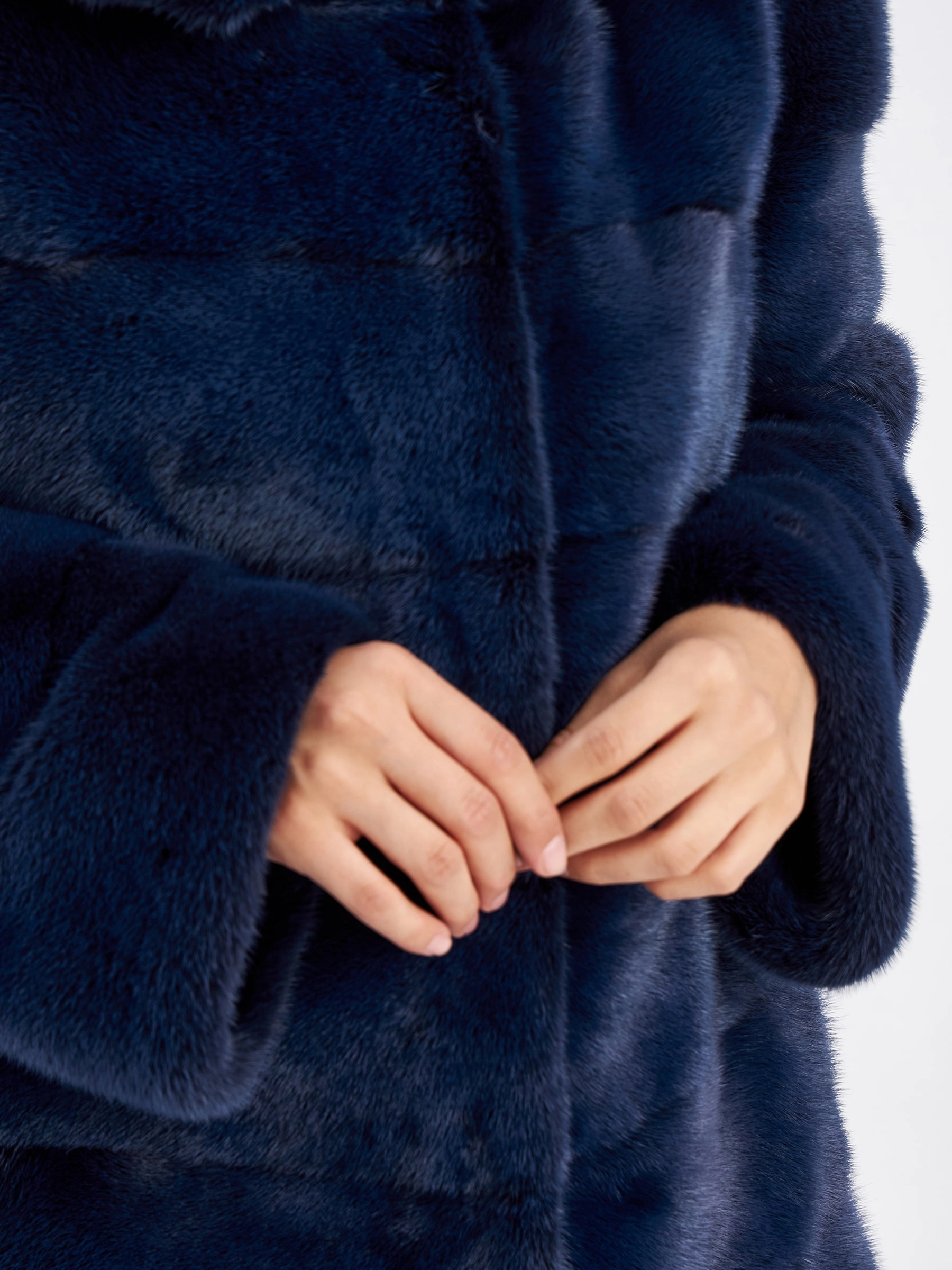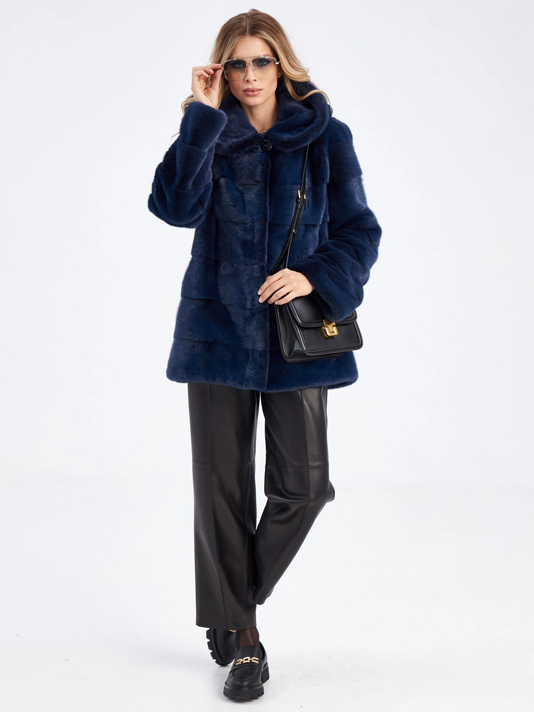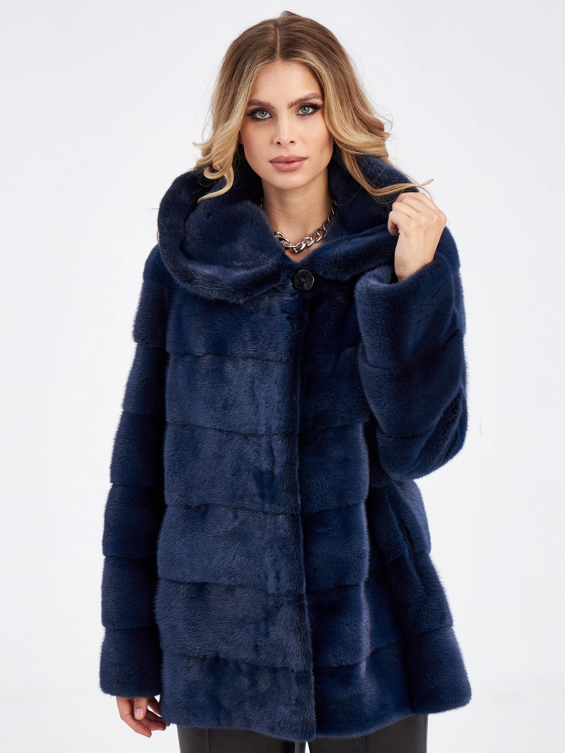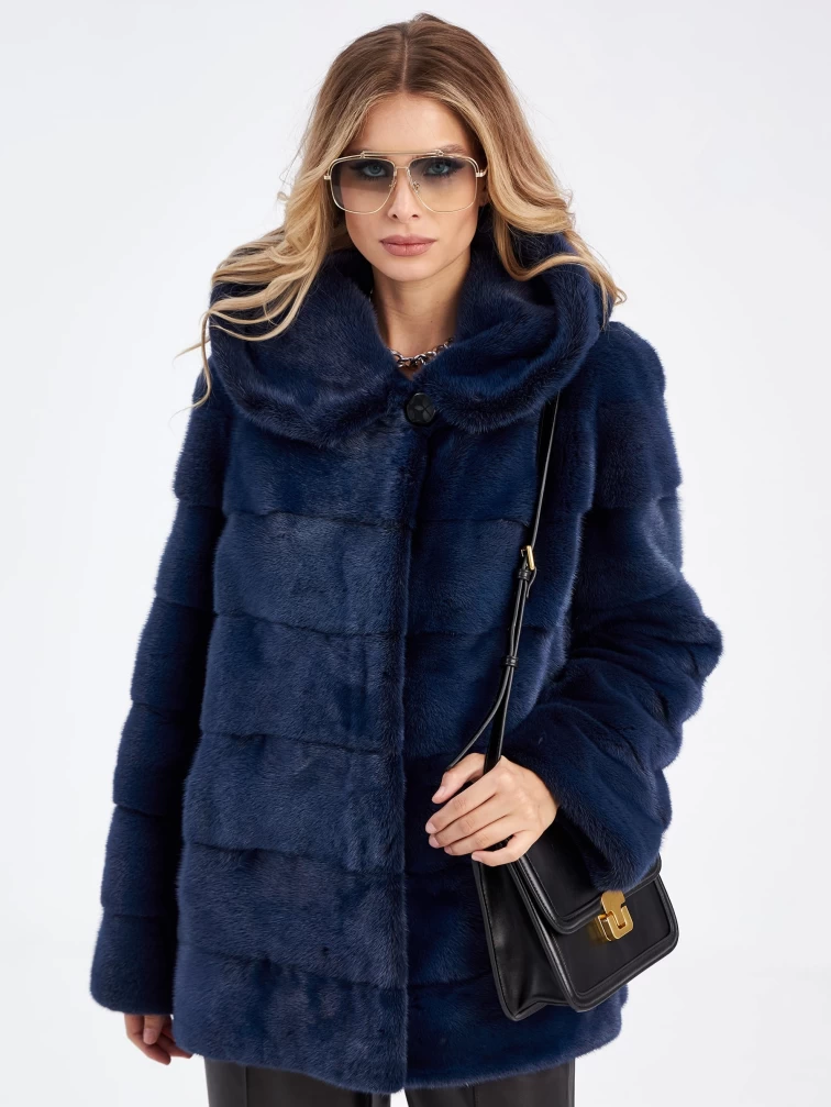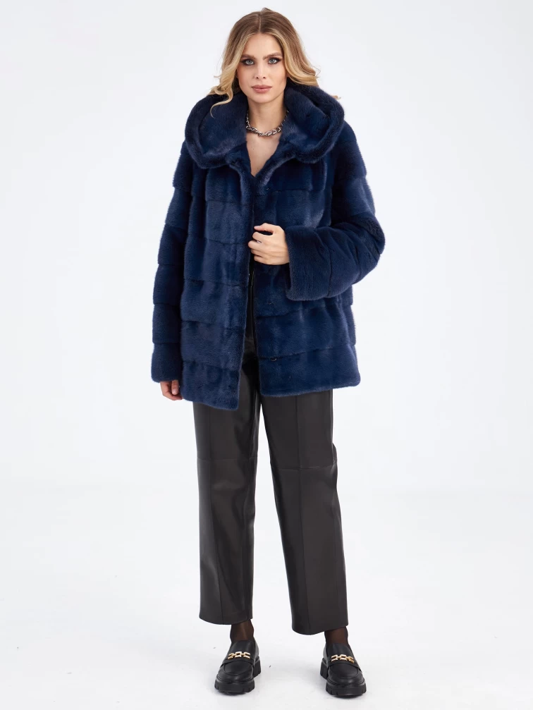 Женская норковая шуба автоледи 2а-к(к), сине-черная, размер 44, артикул 33820