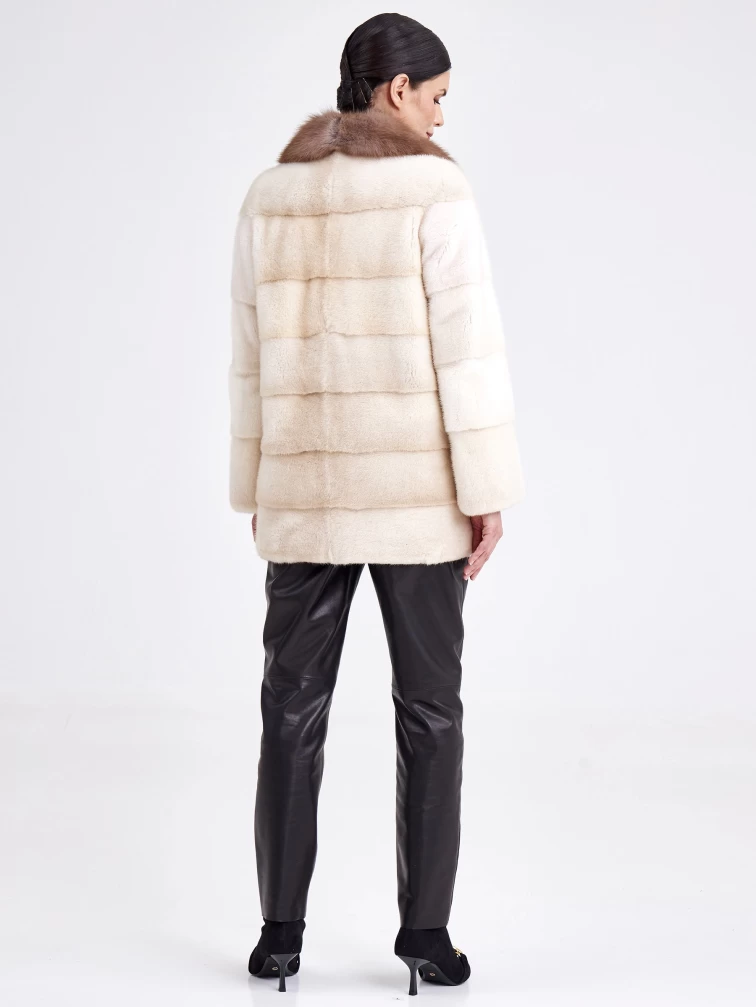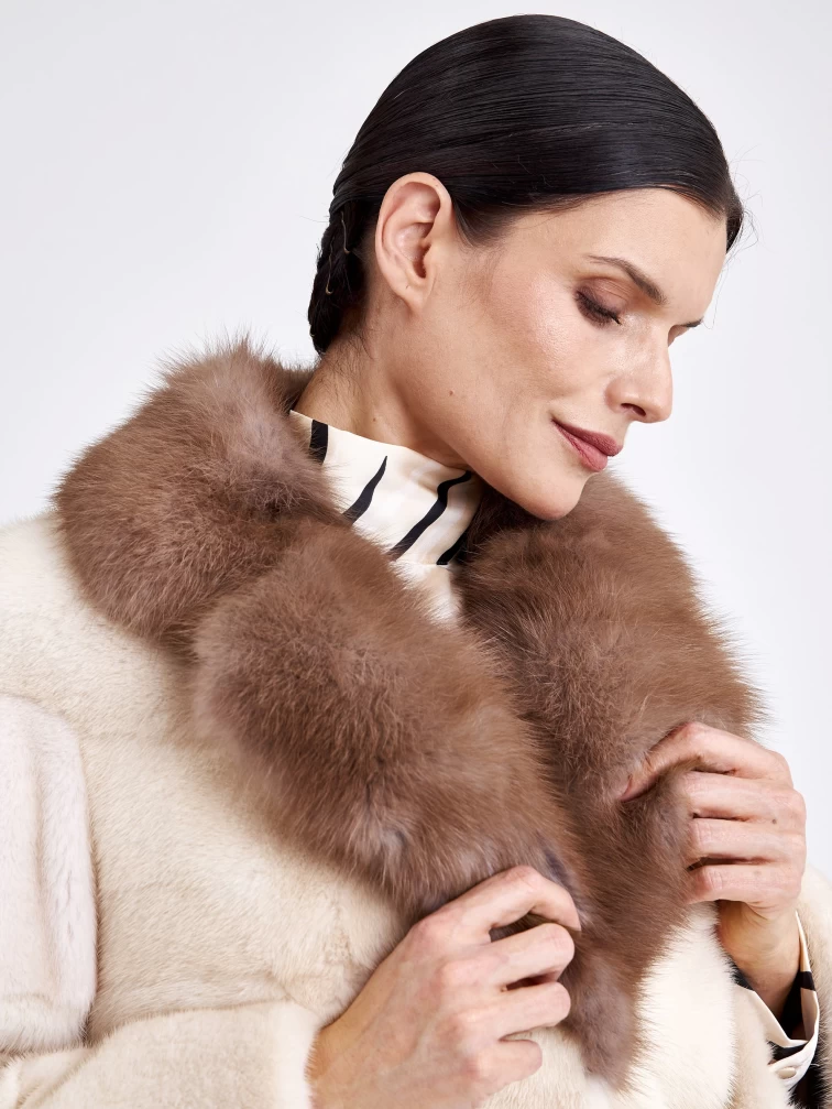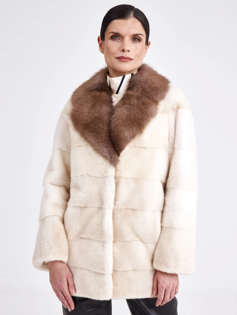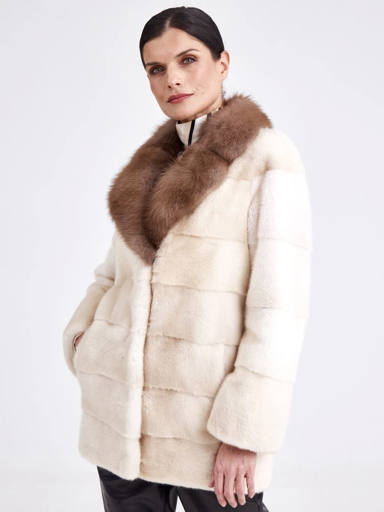 Женская шуба из меха норки с воротником из меха куницы 2а(авк), жемчужная, размер 44, артикул 33220