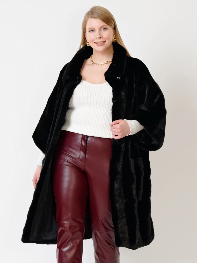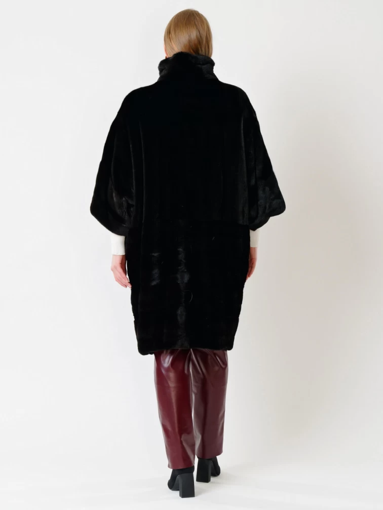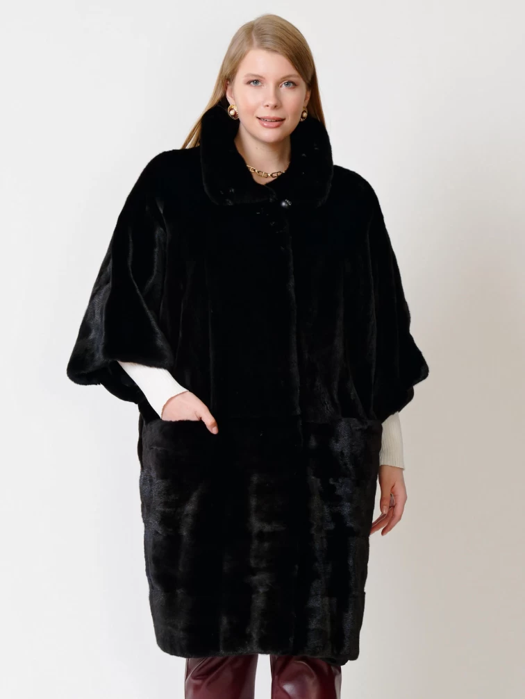 Товар шуба женская из меха норки с рукавом 3/4 402, черная, размер 48, артикул 33490 выполнен из норка крашенной с застежкой клипсы. Рассчитан на сезон: осень-зима. Длина изделия свыше 90 см, силуэт свободный.