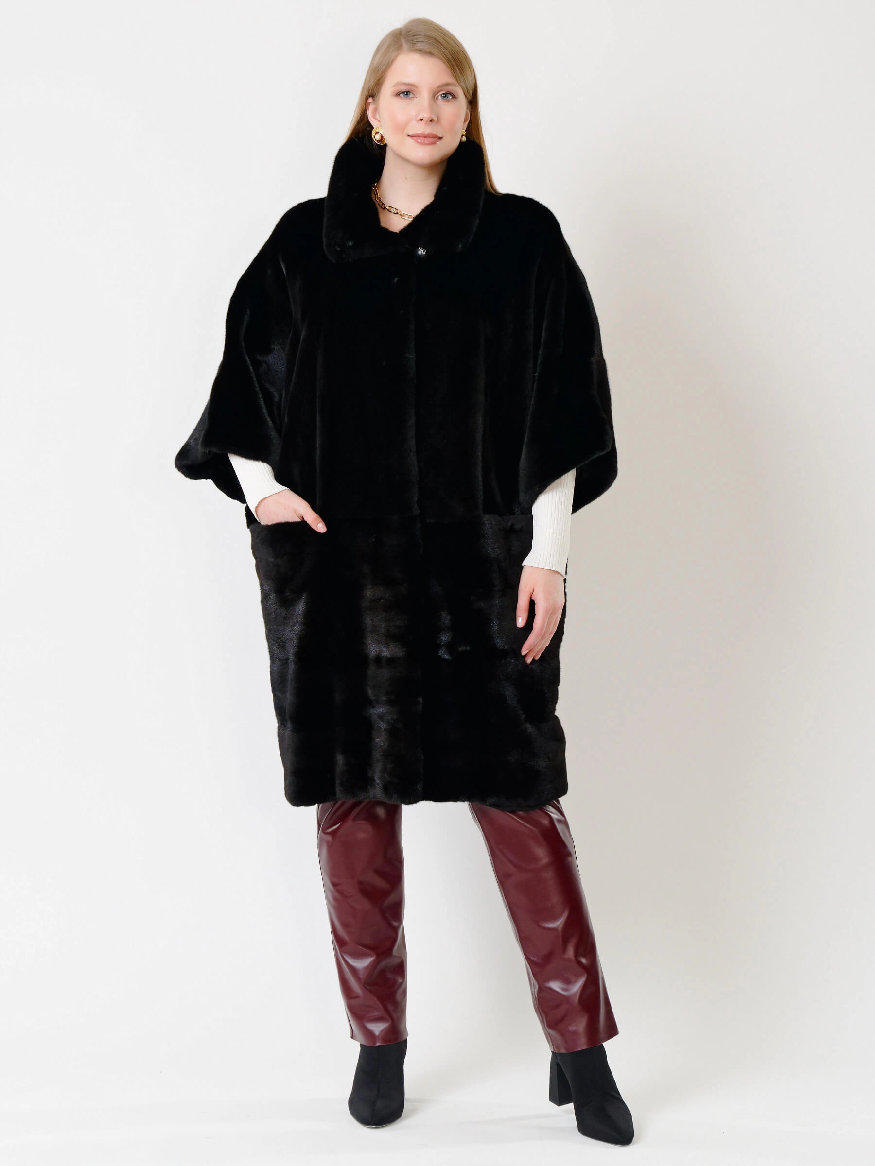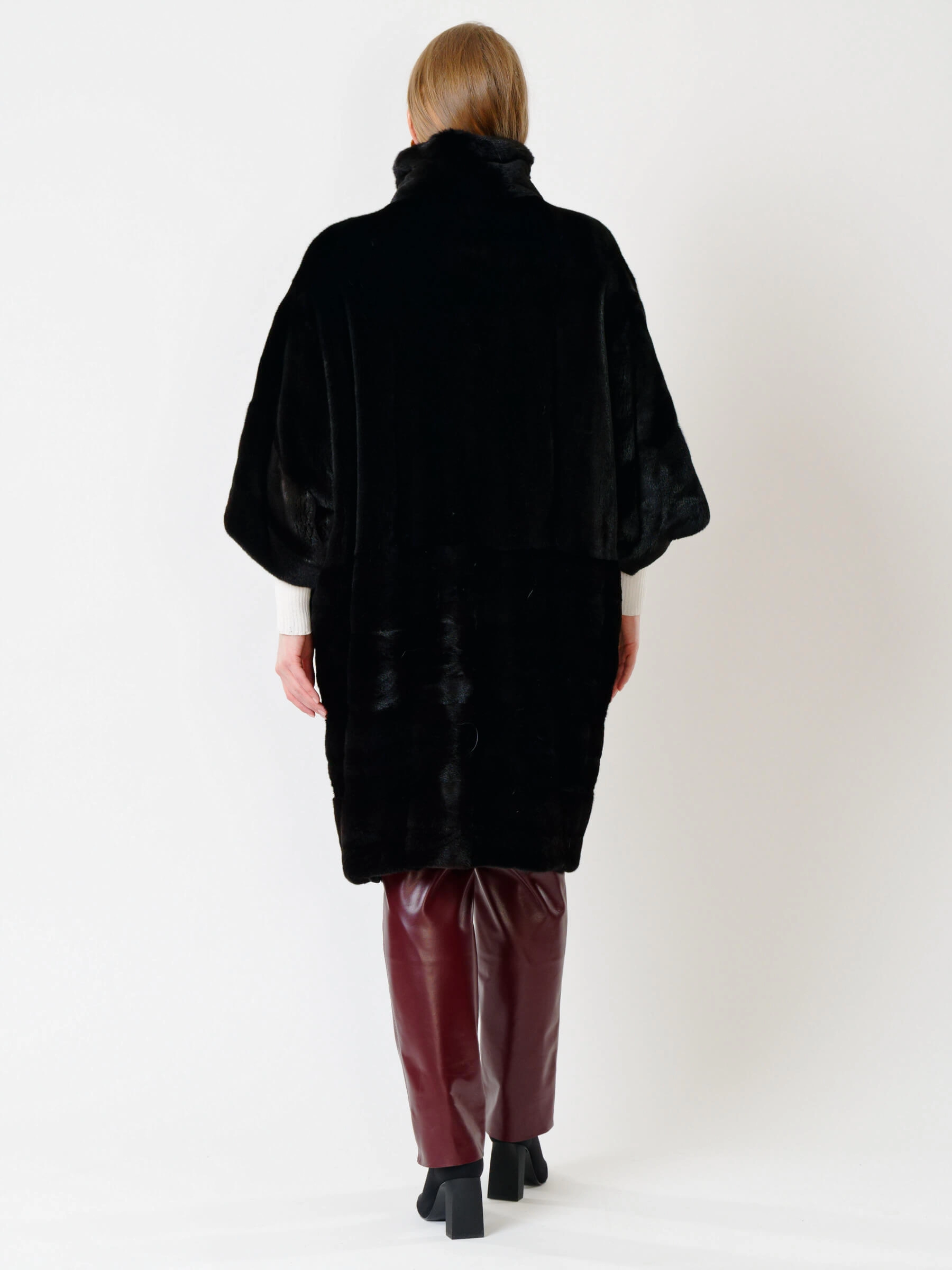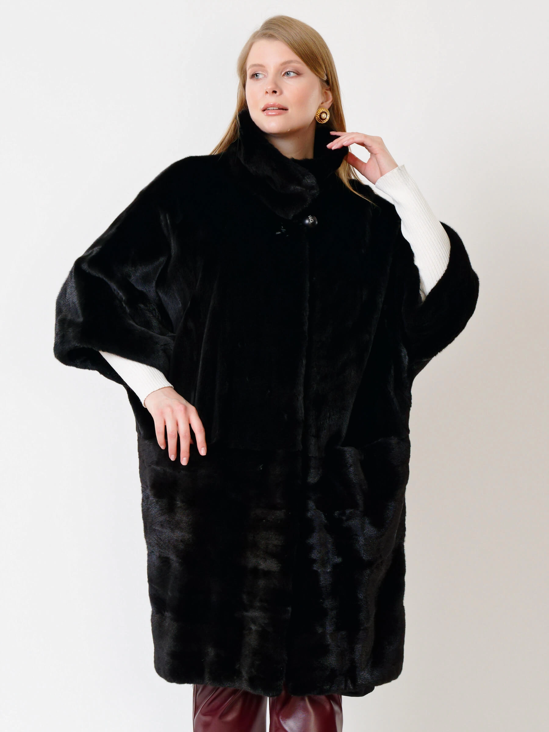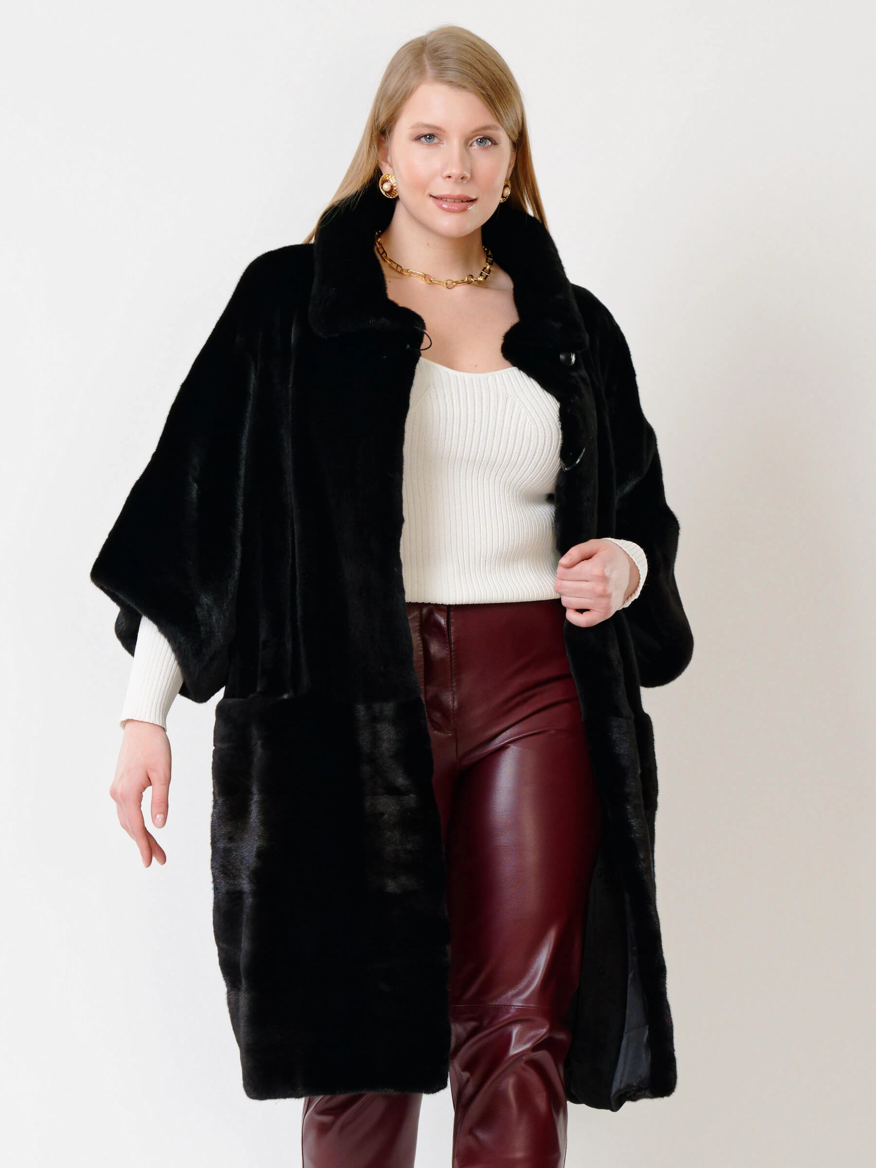 Шуба женская из меха норки с рукавом 3/4 402, черная, размер 48, артикул 33490