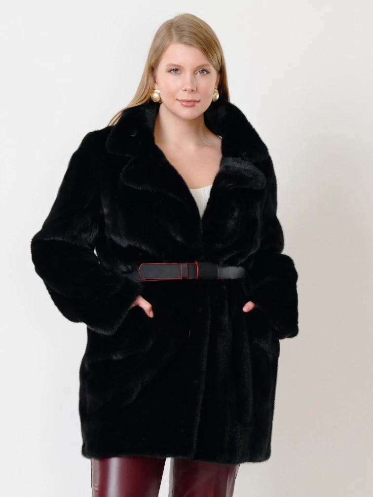 Товар короткая женская норковая шуба с поясом премиум класса electra(ав), черная, размер 52, артикул 33560 выполнен из норка крашенной с застежкой клипсы. Рассчитан на сезон: осень-зима. Длина изделия 75-90 см, силуэт прямой.
