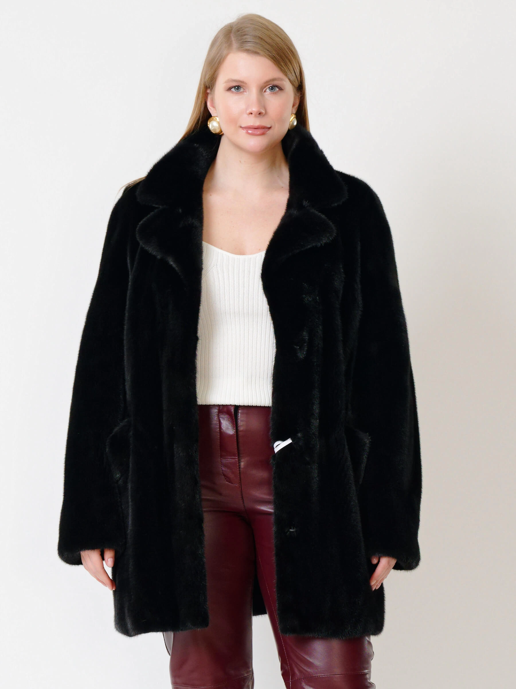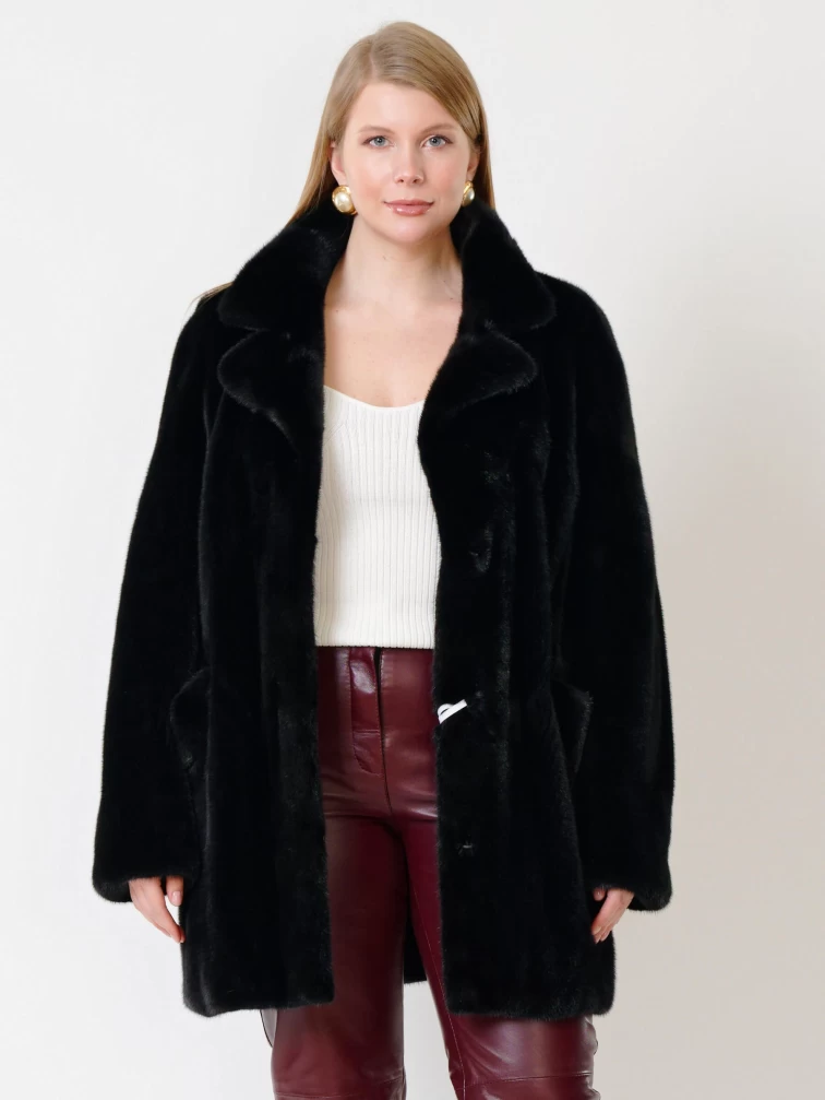Шуба из меха норки датской селекции с английским воротником. Нежнейший мех, максимально густой, с коротким остевым волосом. Премиальное качество.
