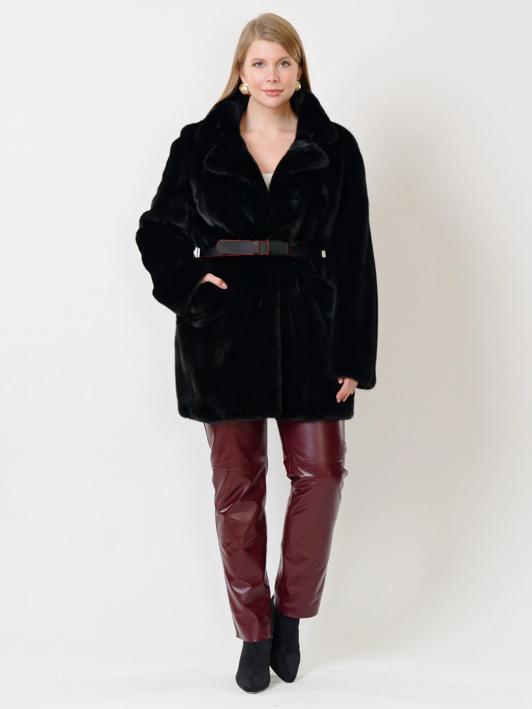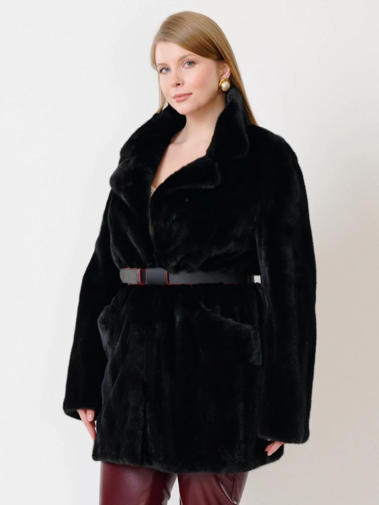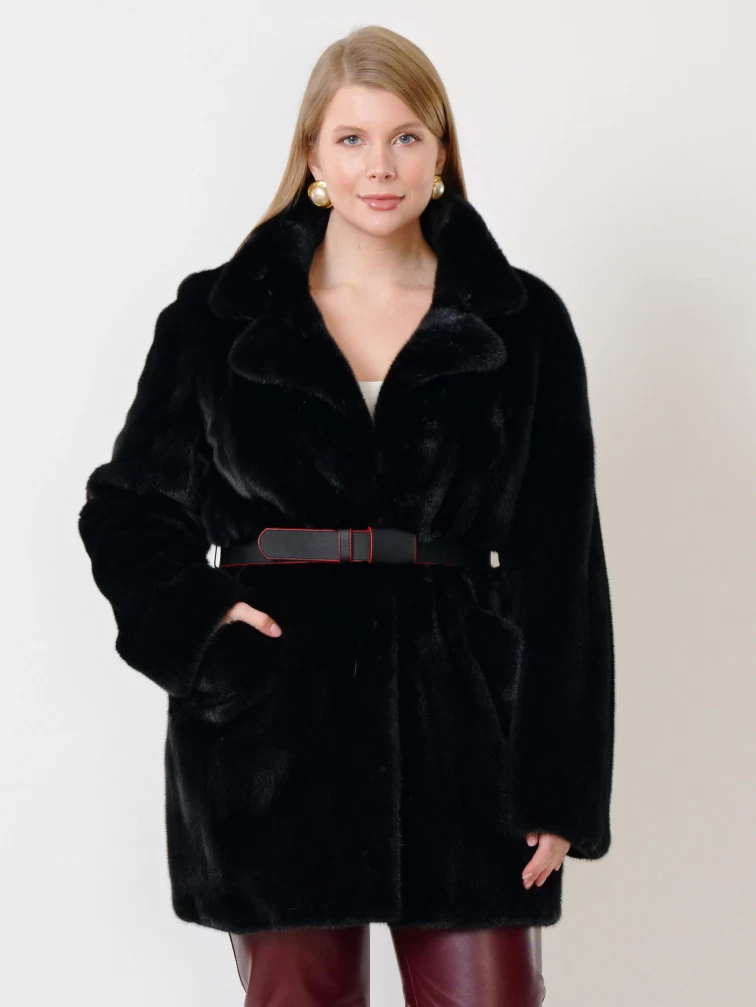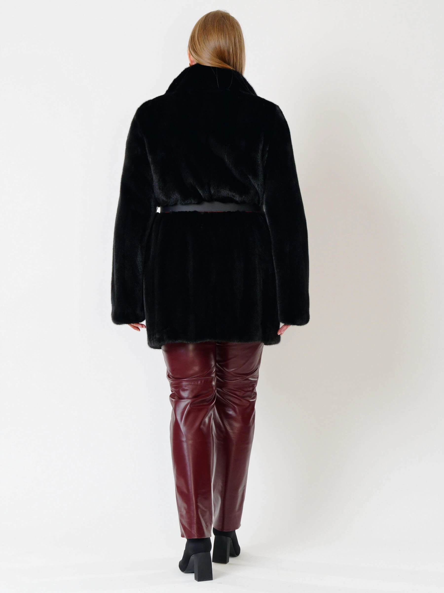 Короткая женская норковая шуба с поясом премиум класса Electra(ав), черная, размер 52, артикул 33560