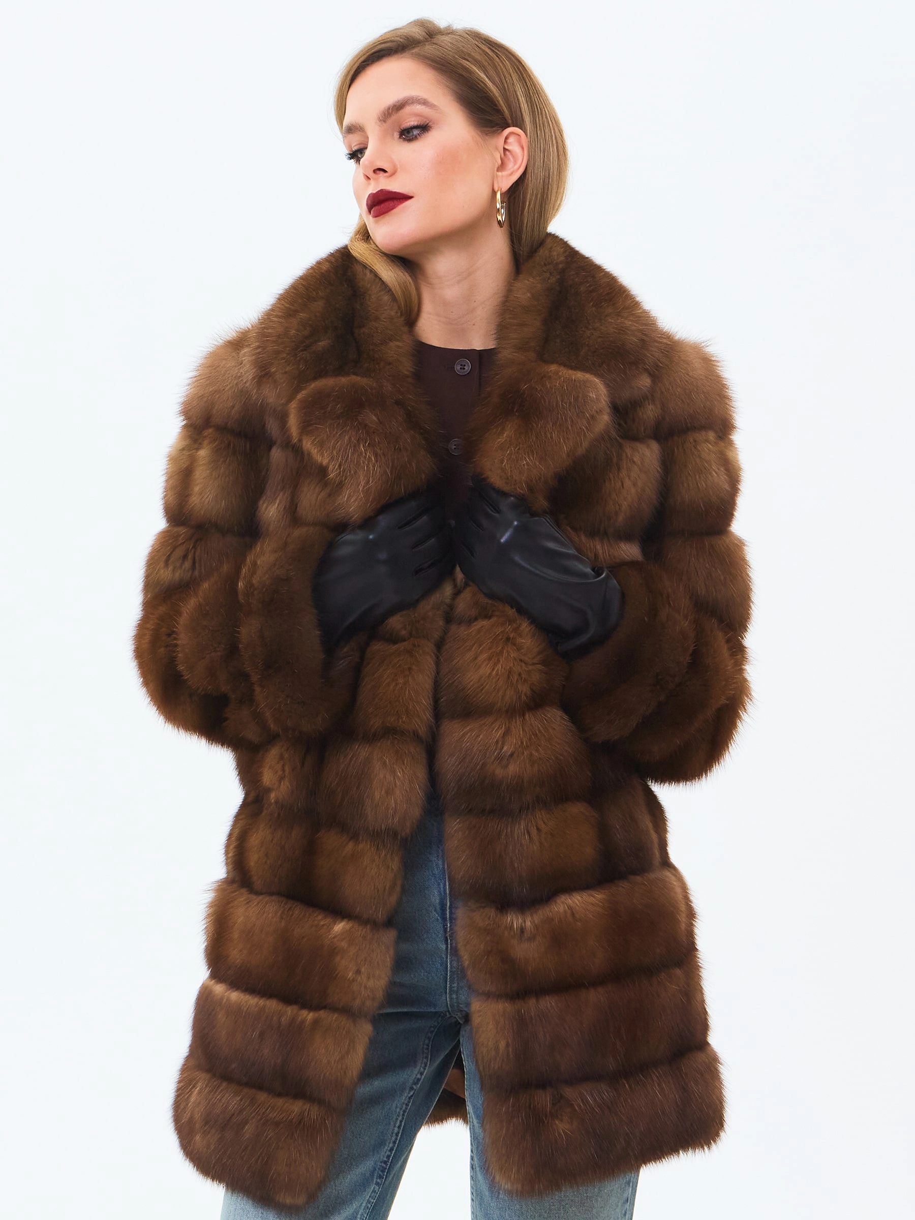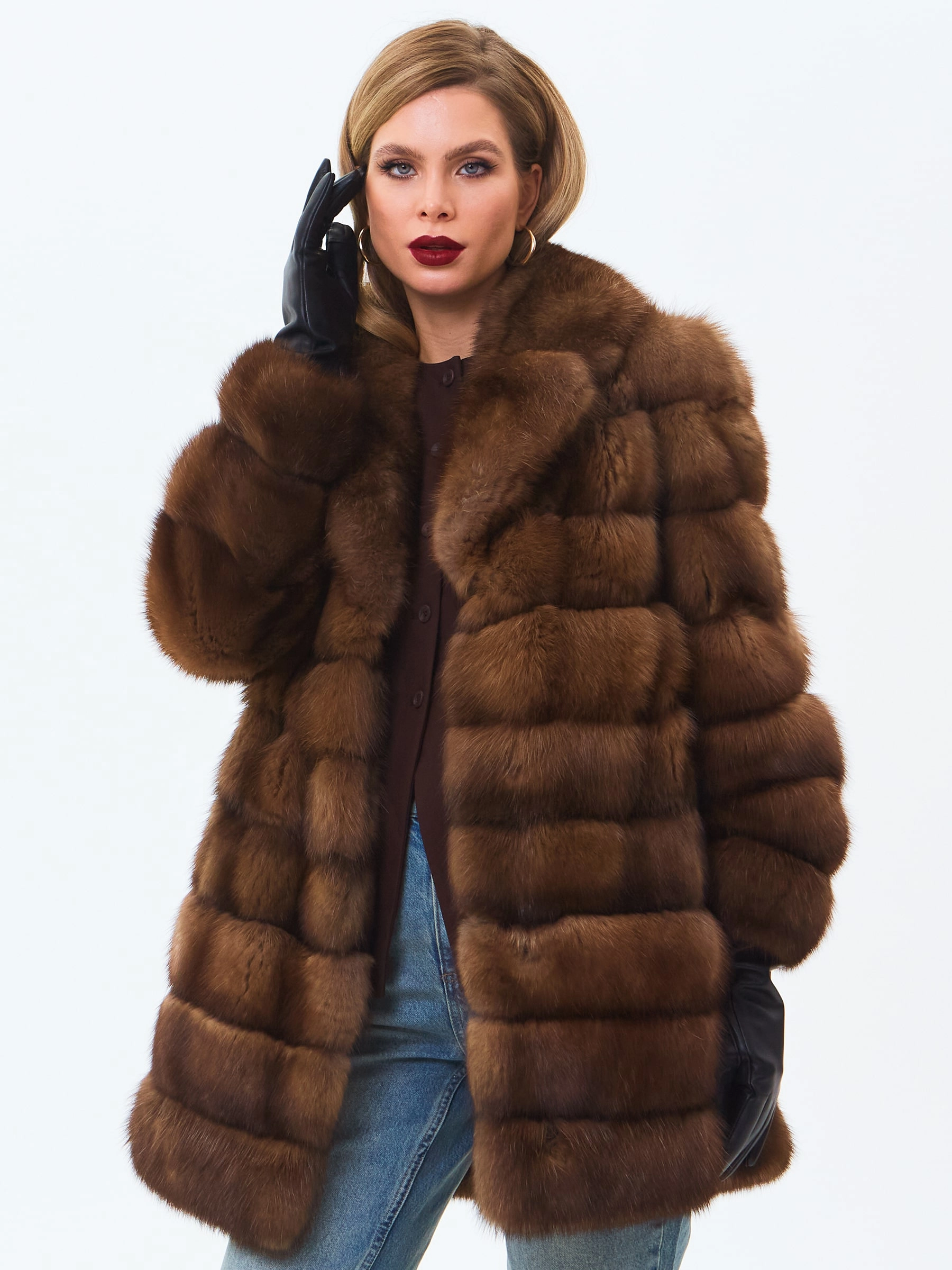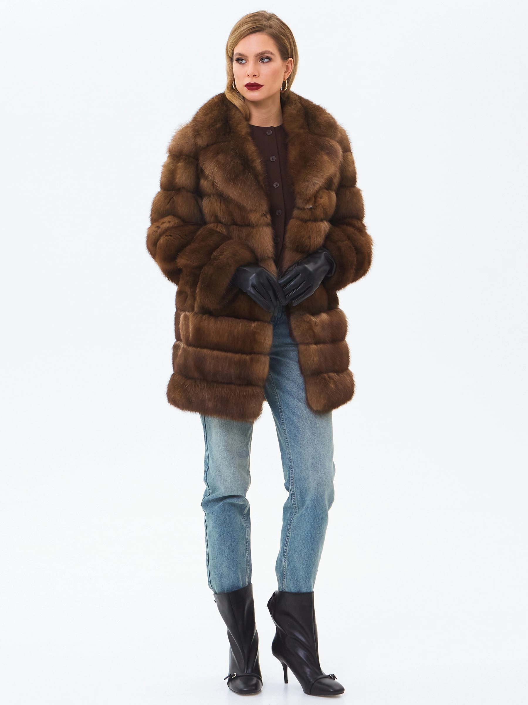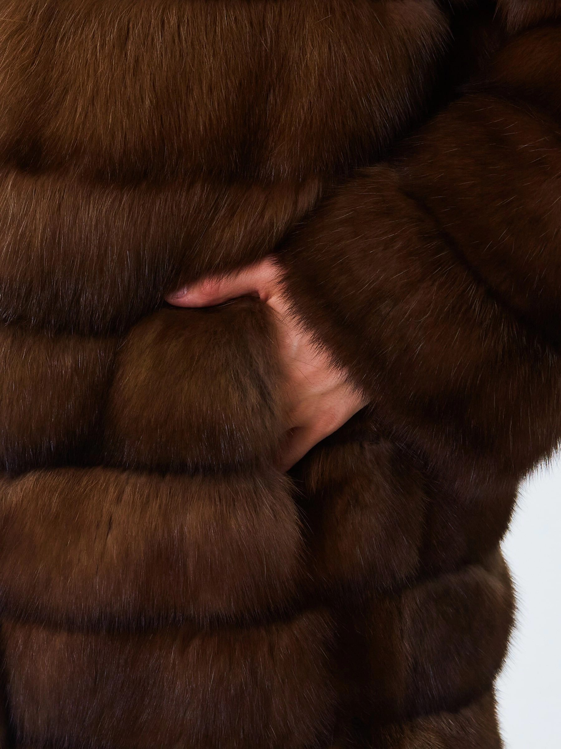Шуба из меха соболя женская премиум класса 2А, темно-коричневая, размер 46, артикул 34210