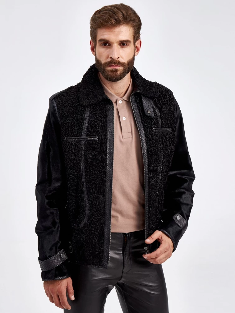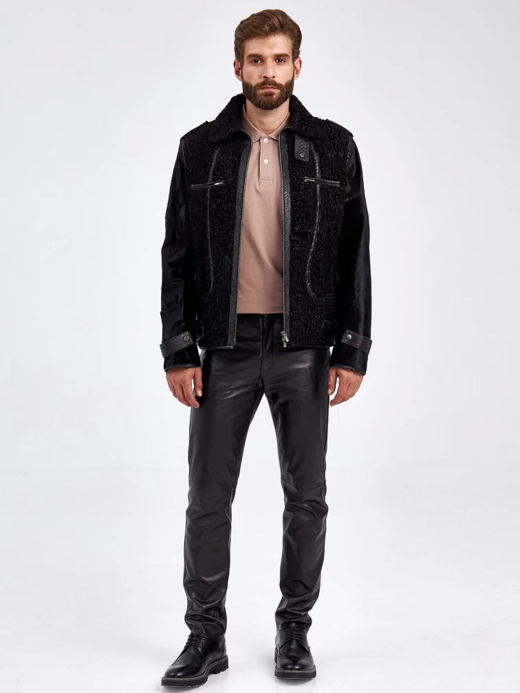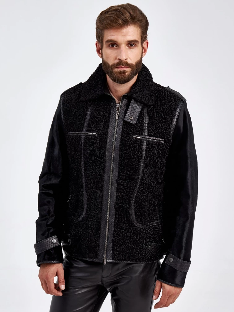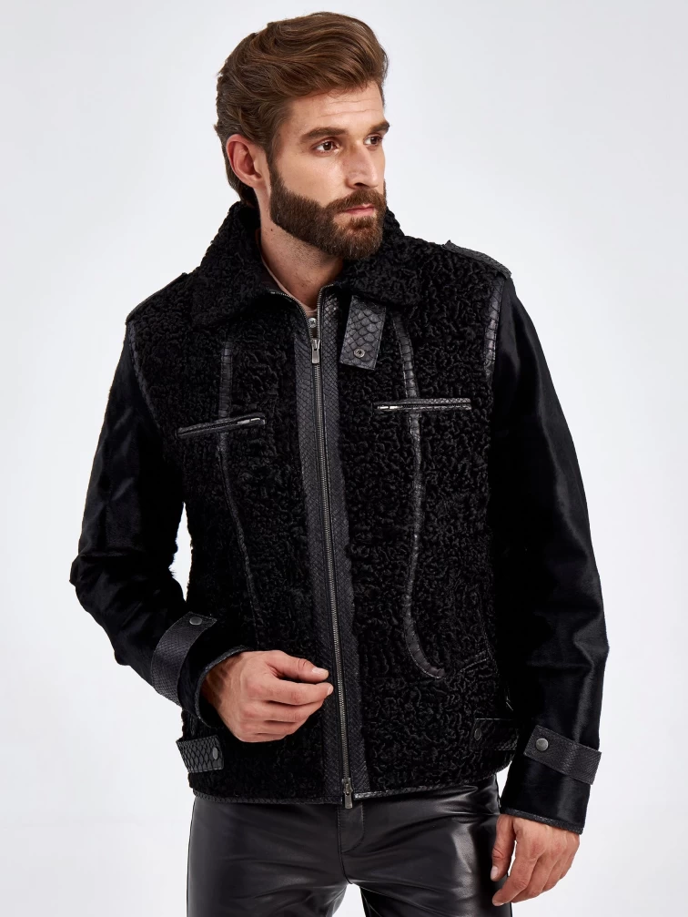 Шуба меховая из канадского каракуля для мужчин VE-7910, черная, размер 48, артикул 71270