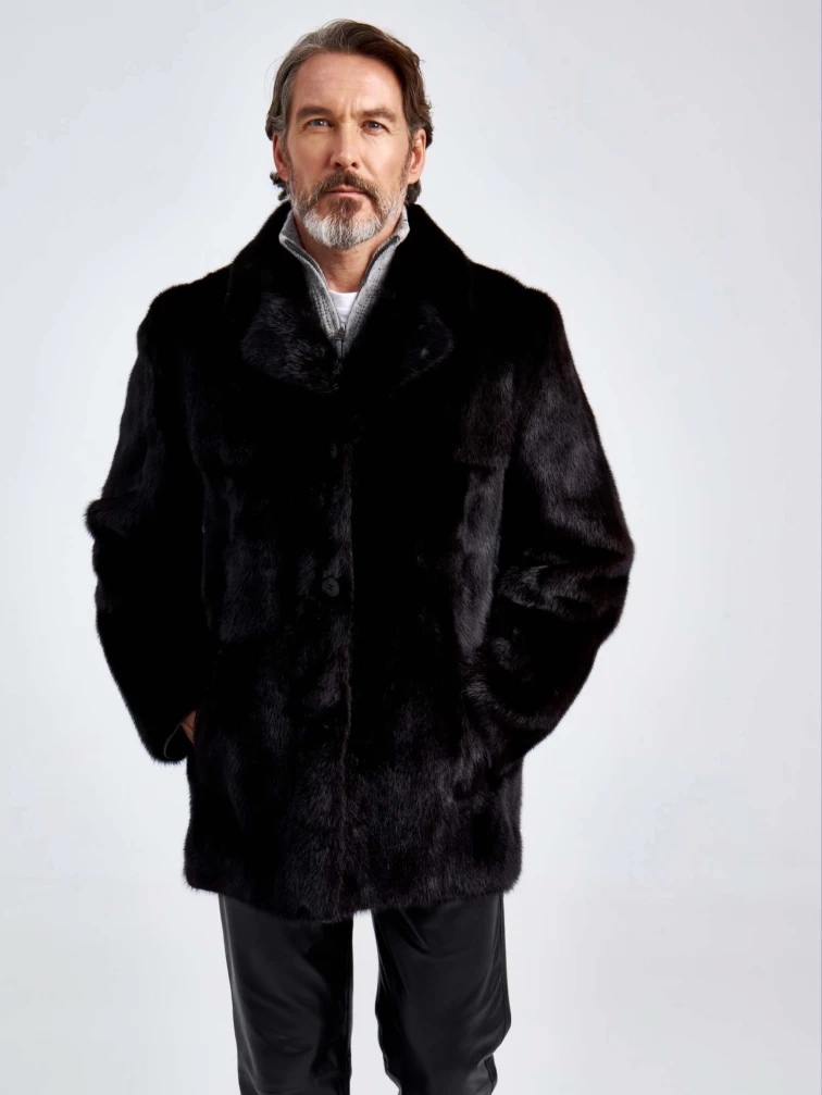 Меховая шуба из меха норки для мужчин Delon, черная, размер 48, артикул 71300