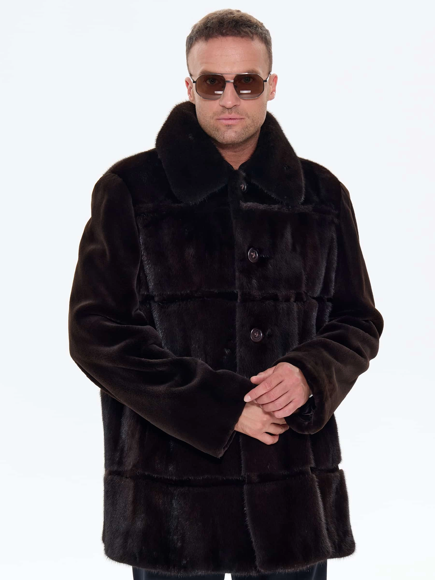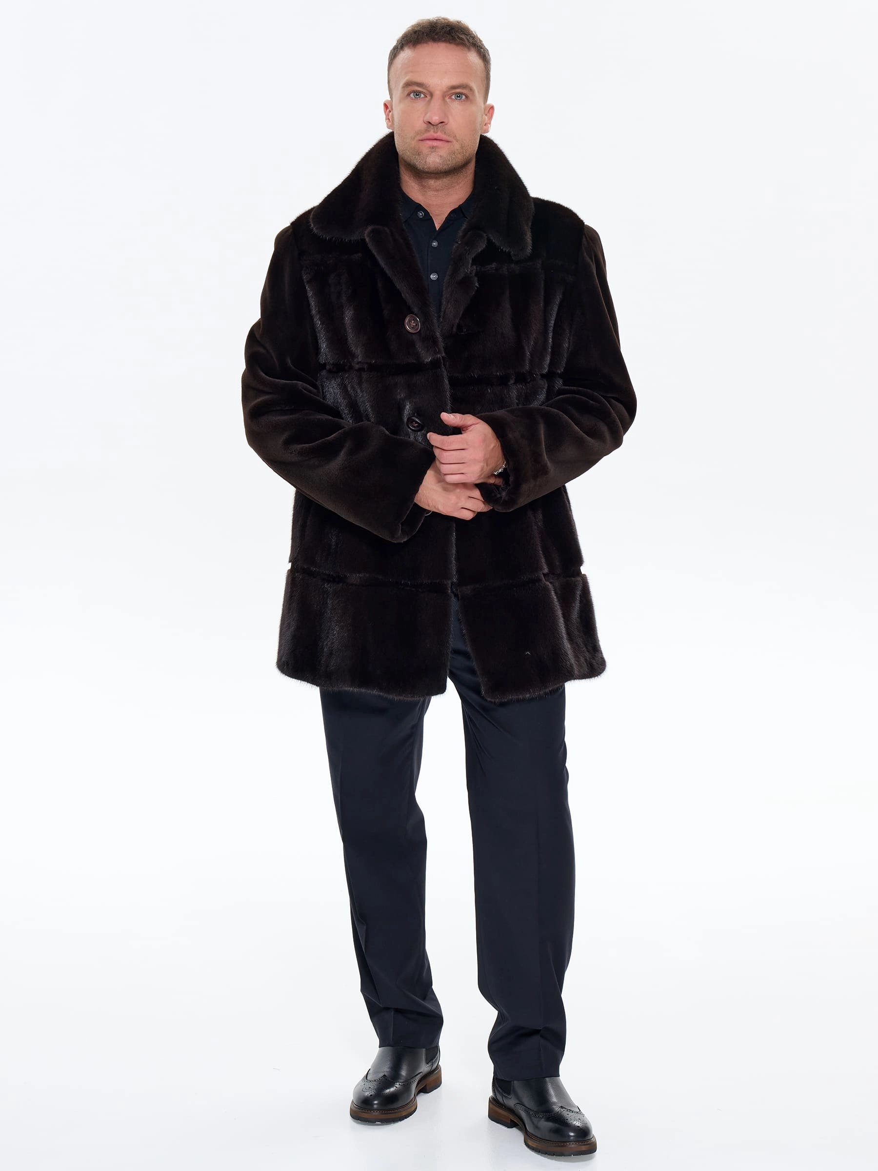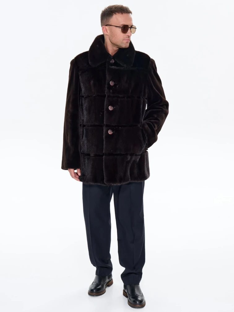 Шуба мужская из меха норки REGAL RRM-506, коричневая, размер 56, артикул 34550
