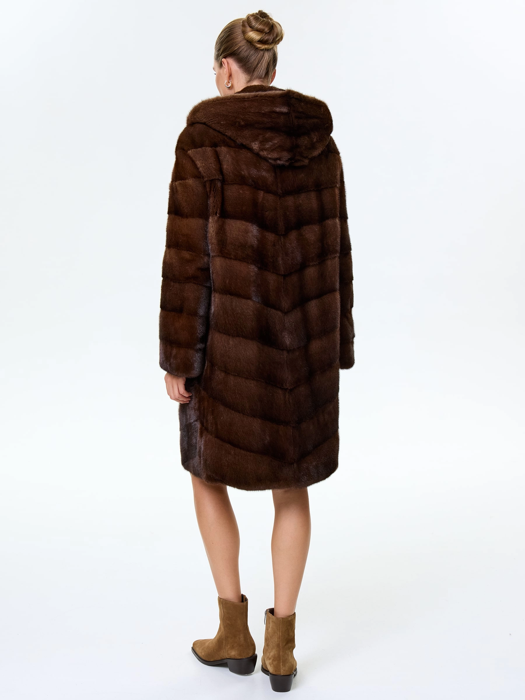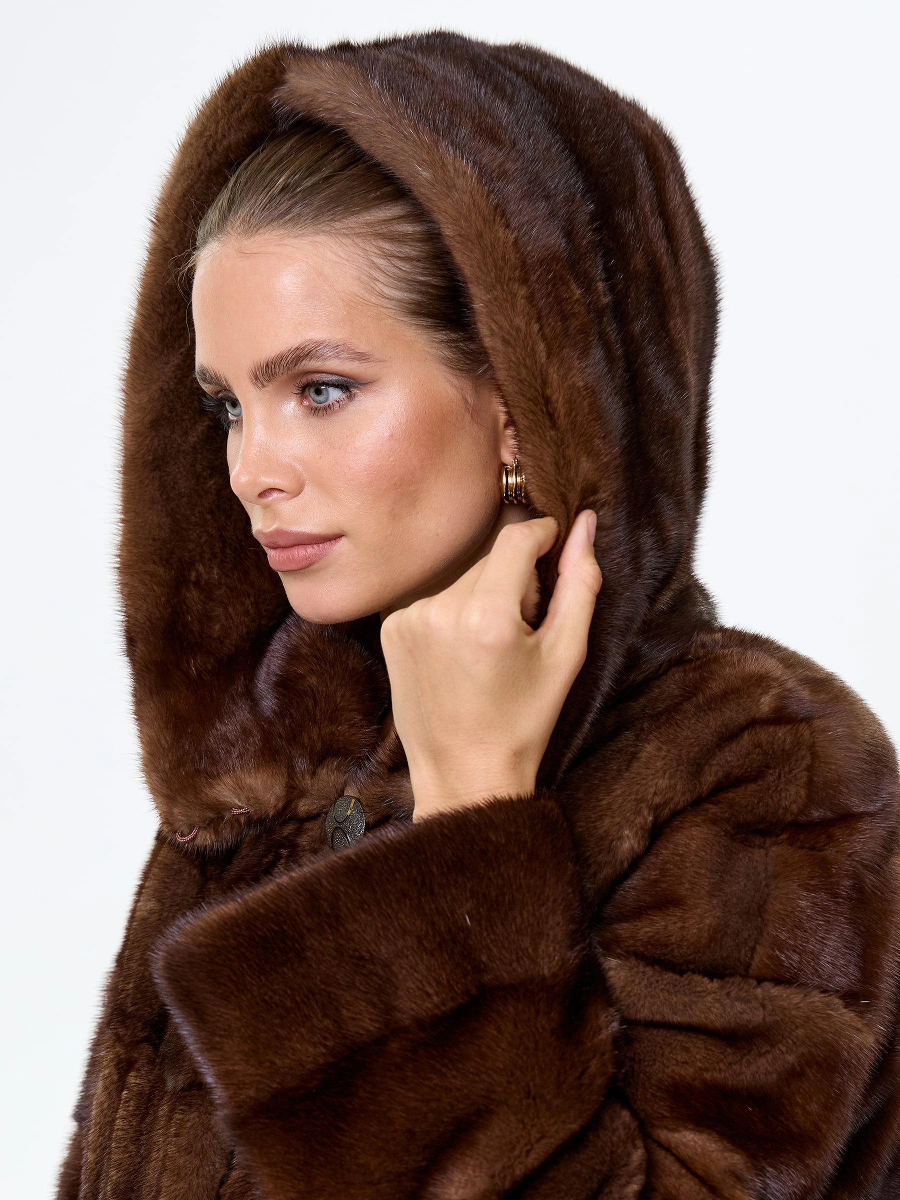 Норковая женская шуба с капюшоном Галя(к), коричневая, размер 50, артикул 34070