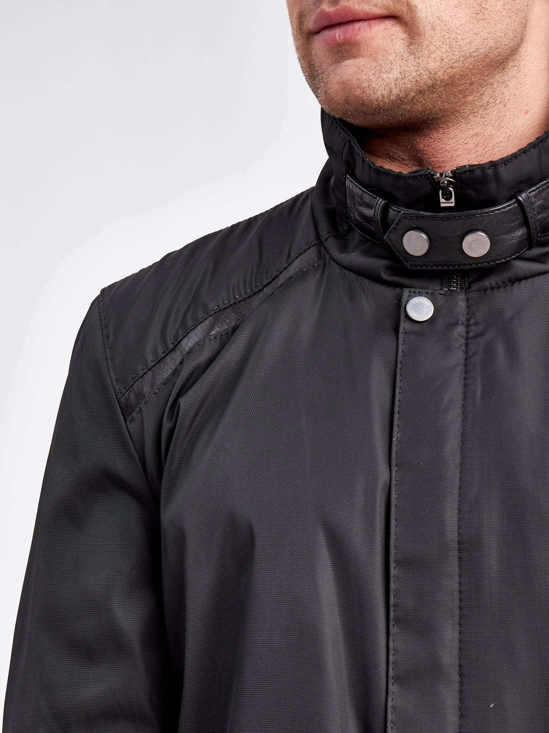 Товар мужская текстильная куртка с кожаными отделками 07209, черный, размер 48, артикул 40950 выполнен из текстиль с застежкой молния. Рассчитан на сезон: весна-осень. Длина изделия 76 см, силуэт прямой.