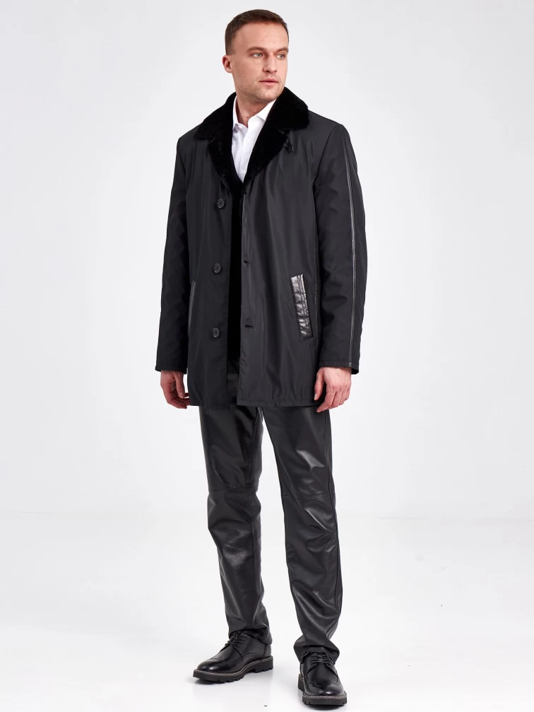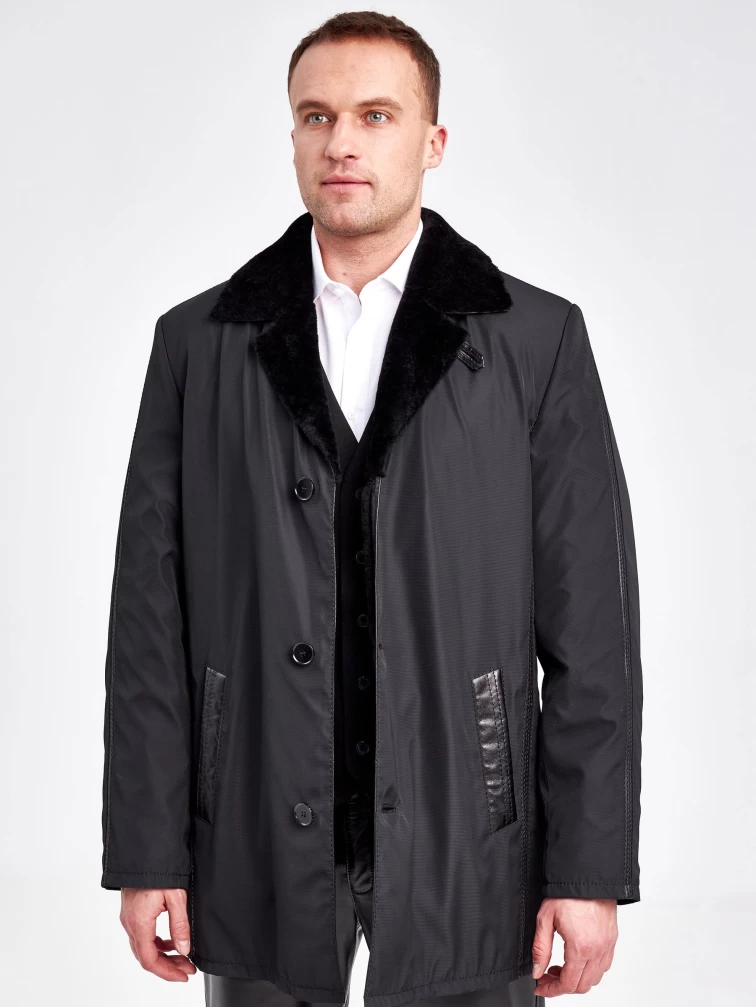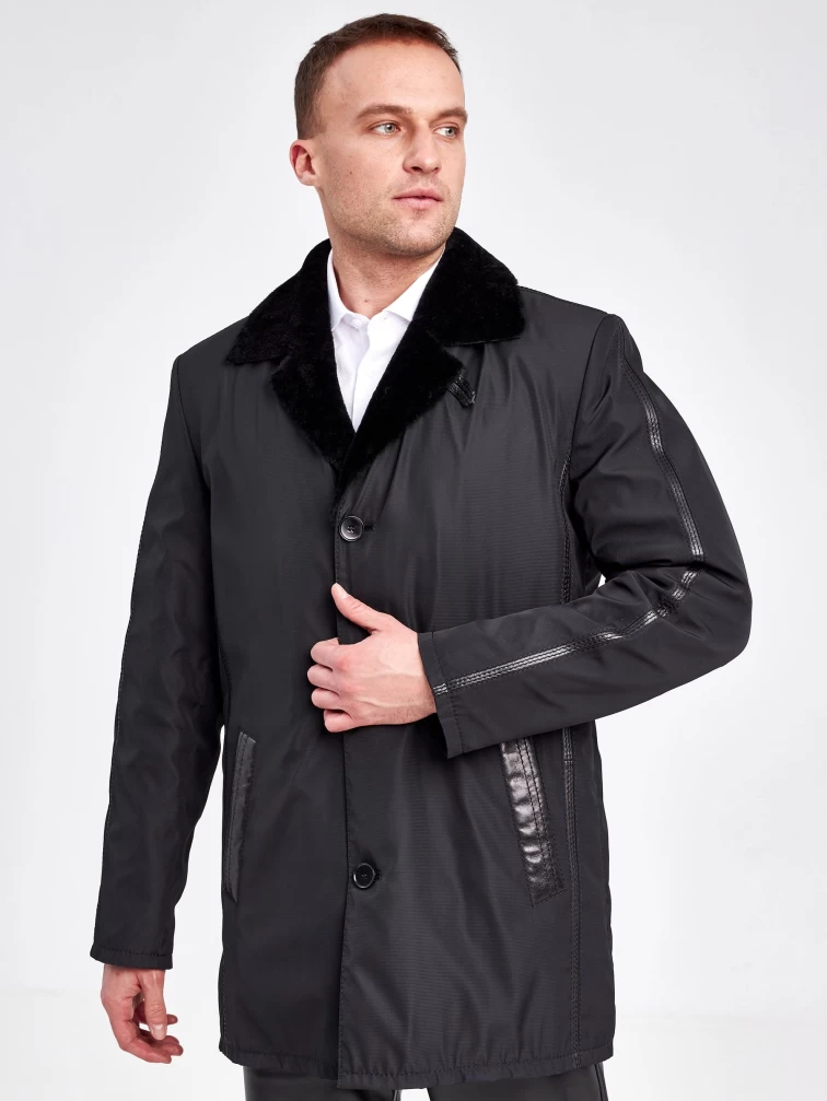 Текстильная зимняя мужская куртка на подкладке из овчины 2352, черная, размер 50, артикул 40890