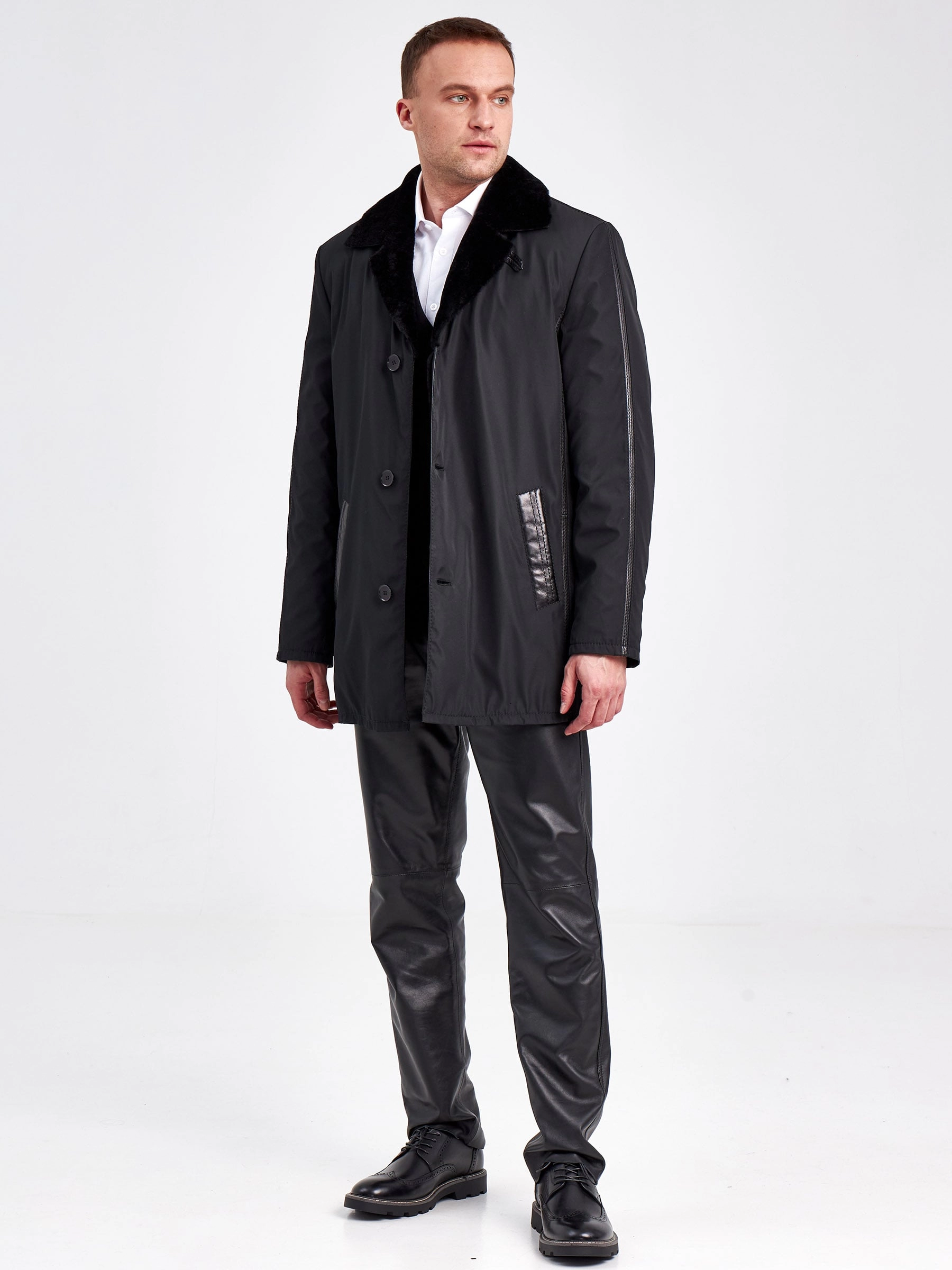 Товар текстильная зимняя мужская куртка на подкладке из овчины 2352, черная, размер 50, артикул 40890 выполнен из текстиль с застежкой пуговицы. Рассчитан на сезон: осень-зима. Длина изделия 85 см, силуэт прямой.