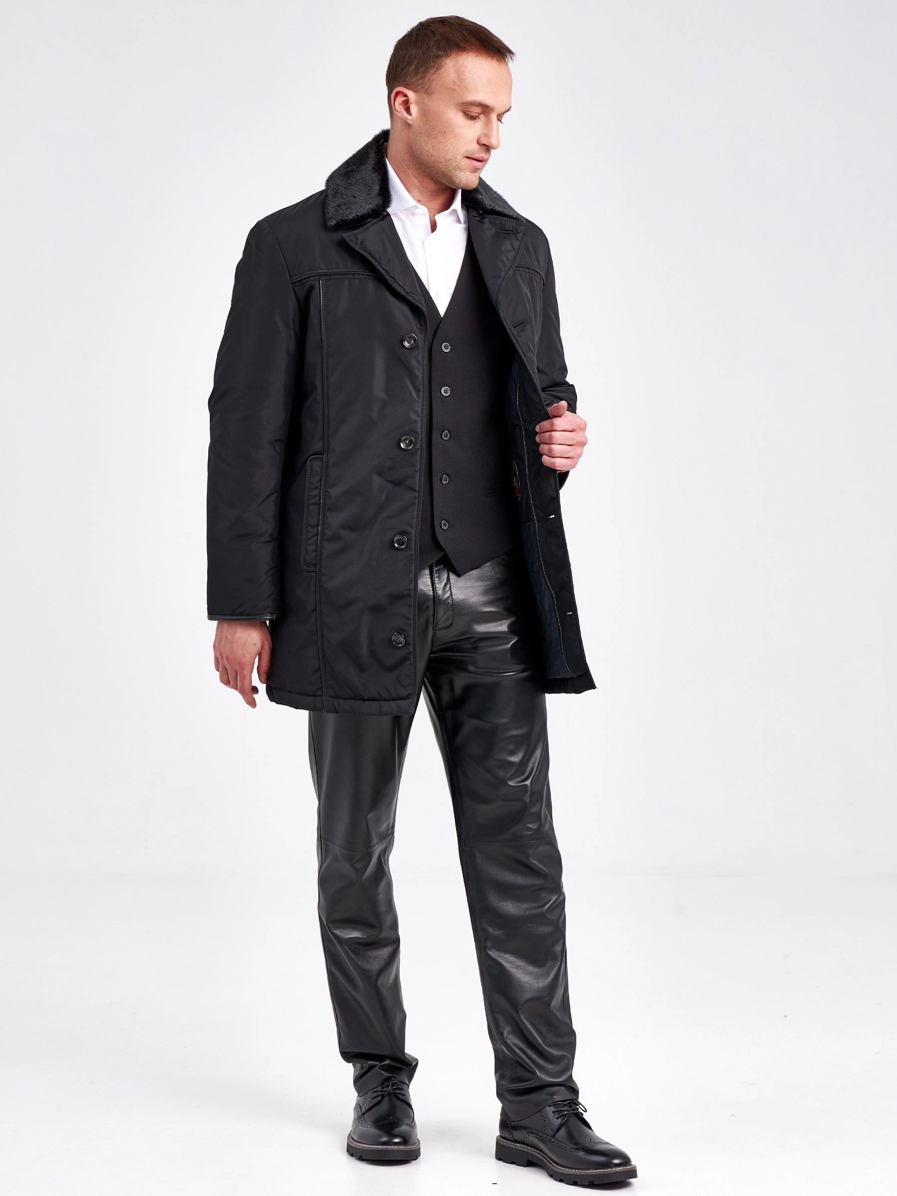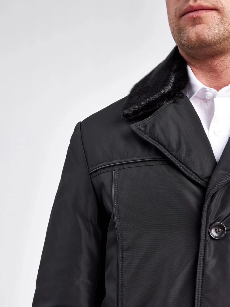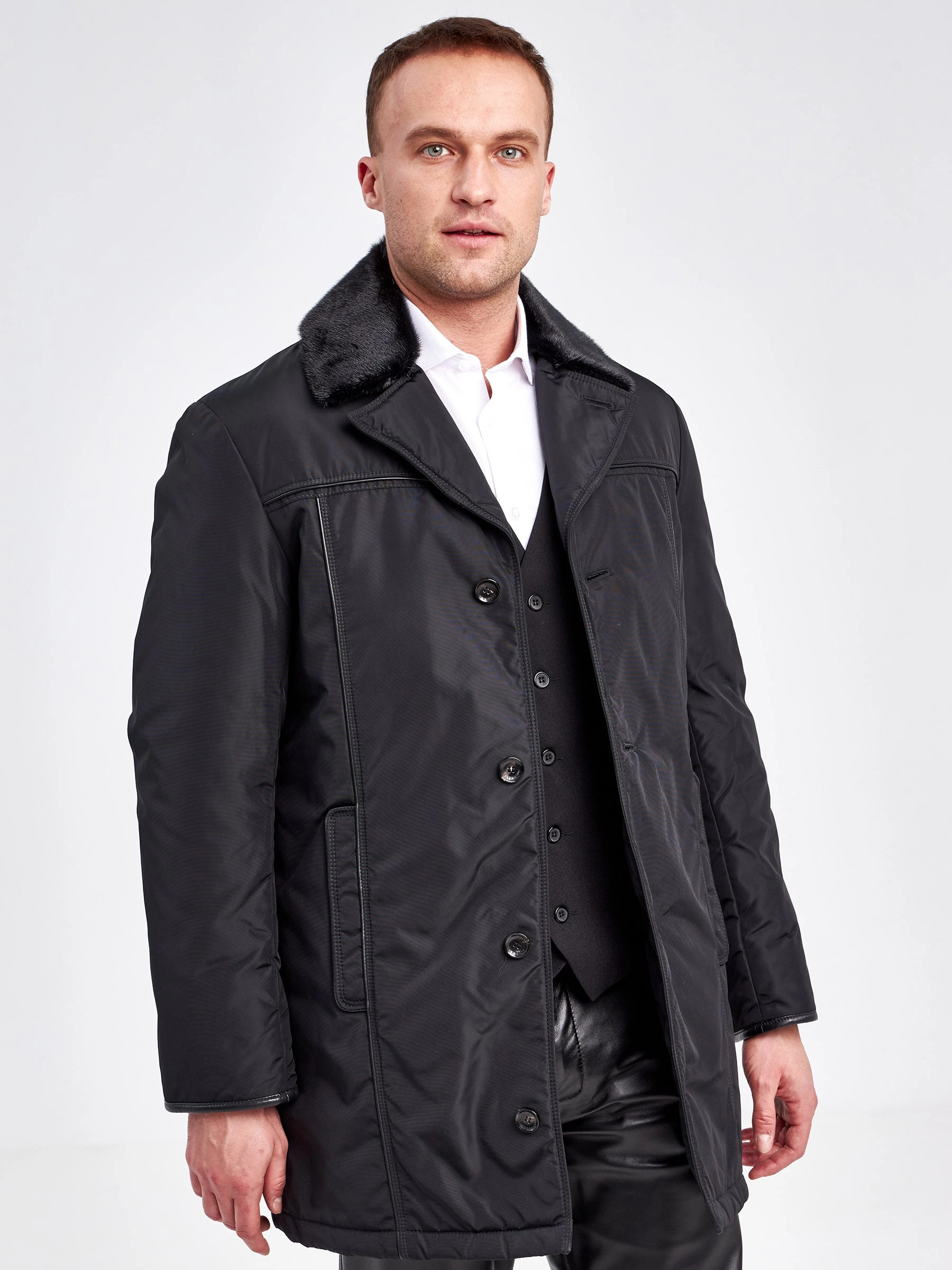 Текстильная зимняя куртка с воротником меха нерпы мужчин Belpasso, черная, размер 48, артикул 40920
