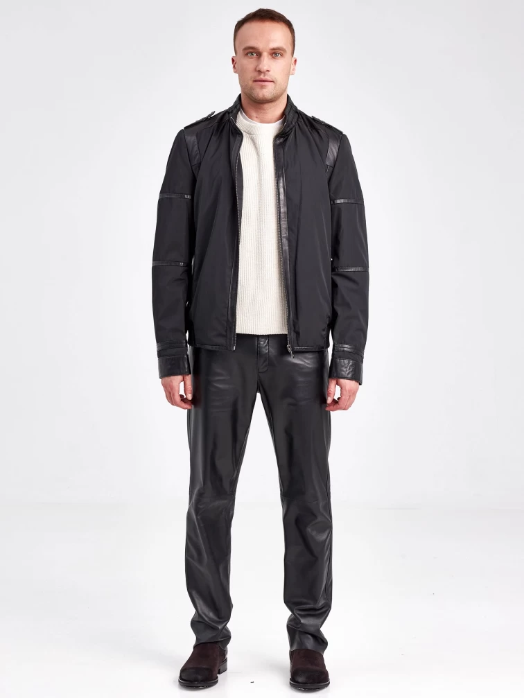 Текстильная мужская куртка бомбер с кожаными отделками 07210, черная, размер 50, артикул 40930