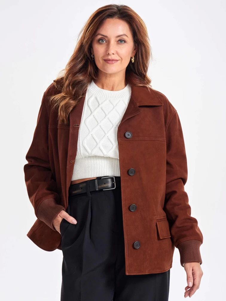 Товар удлиненная женская кожаная куртка бомбер премиум класса 3065, виски, размер 44, артикул 23780 выполнен из натуральной кожи с застежкой пуговицы. Рассчитан на сезон: весна-лето. Длина изделия 70 см, силуэт прямой.