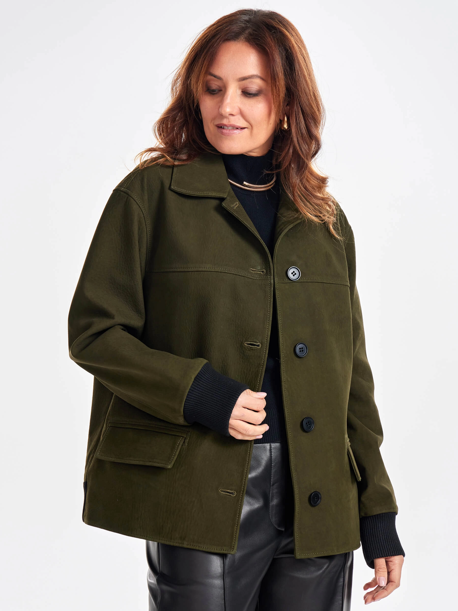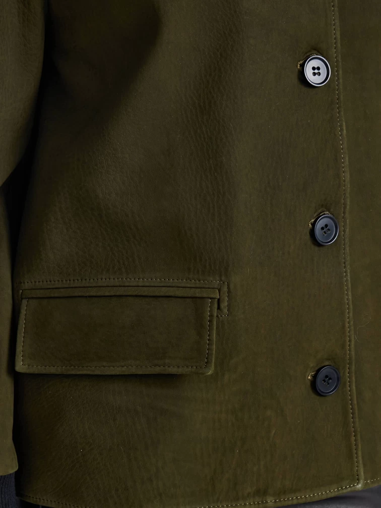 Товар удлиненная женская кожаная куртка бомбер премиум класса 3065, хаки, размер 48, артикул 23790 выполнен из натуральной кожи с застежкой пуговицы. Рассчитан на сезон: весна-лето. Длина изделия 70 см, силуэт прямой.