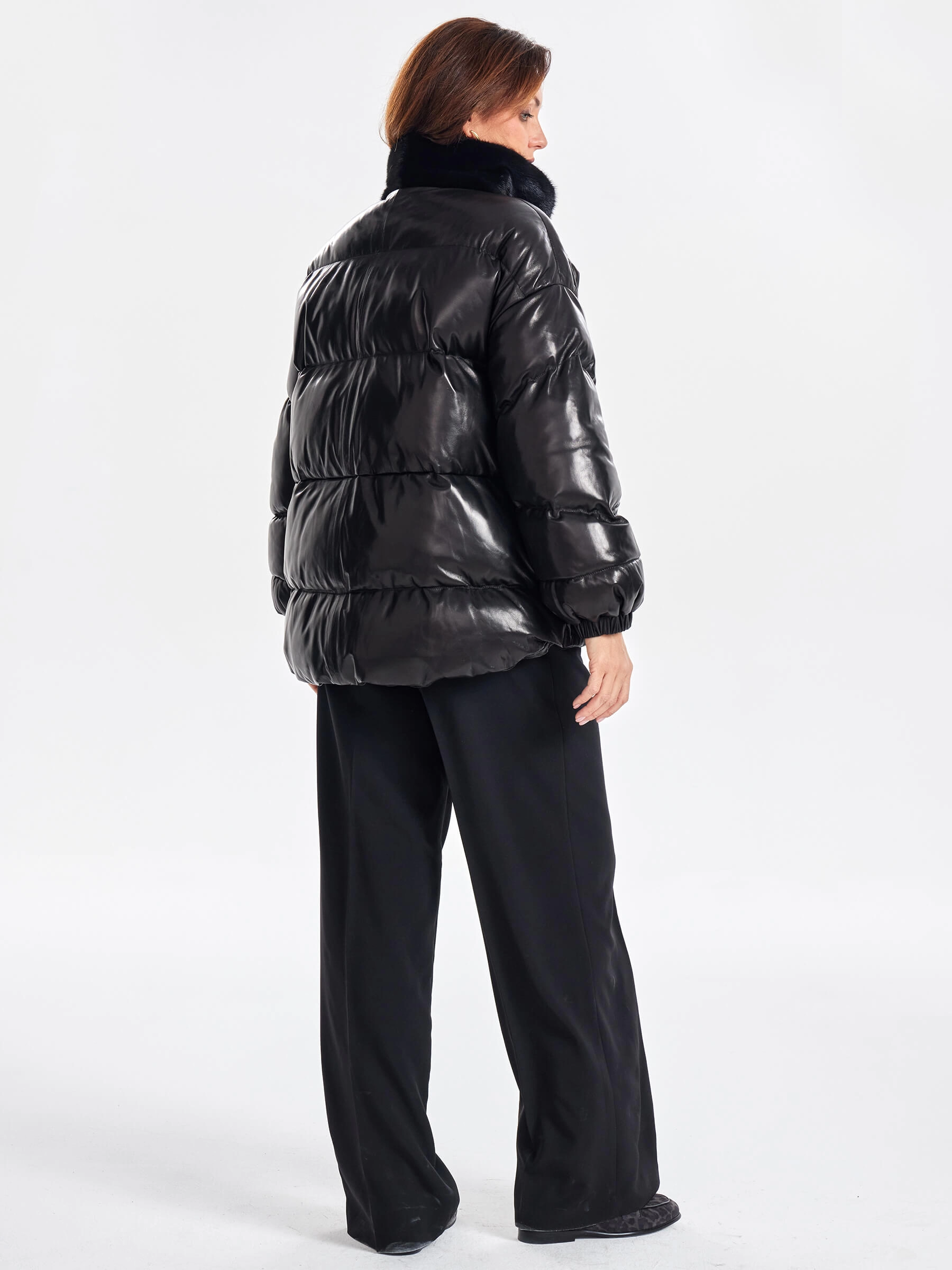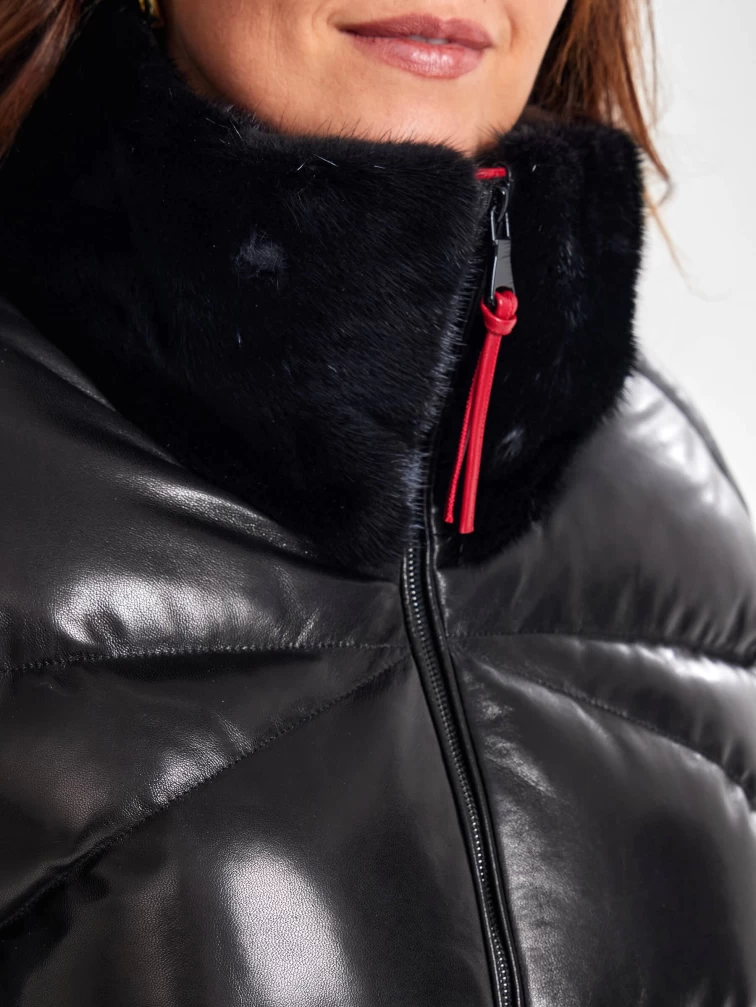Утепленная женская кожаная куртка с норковым воротником премиум класса 3072, черная, размер 44, артикул 25560