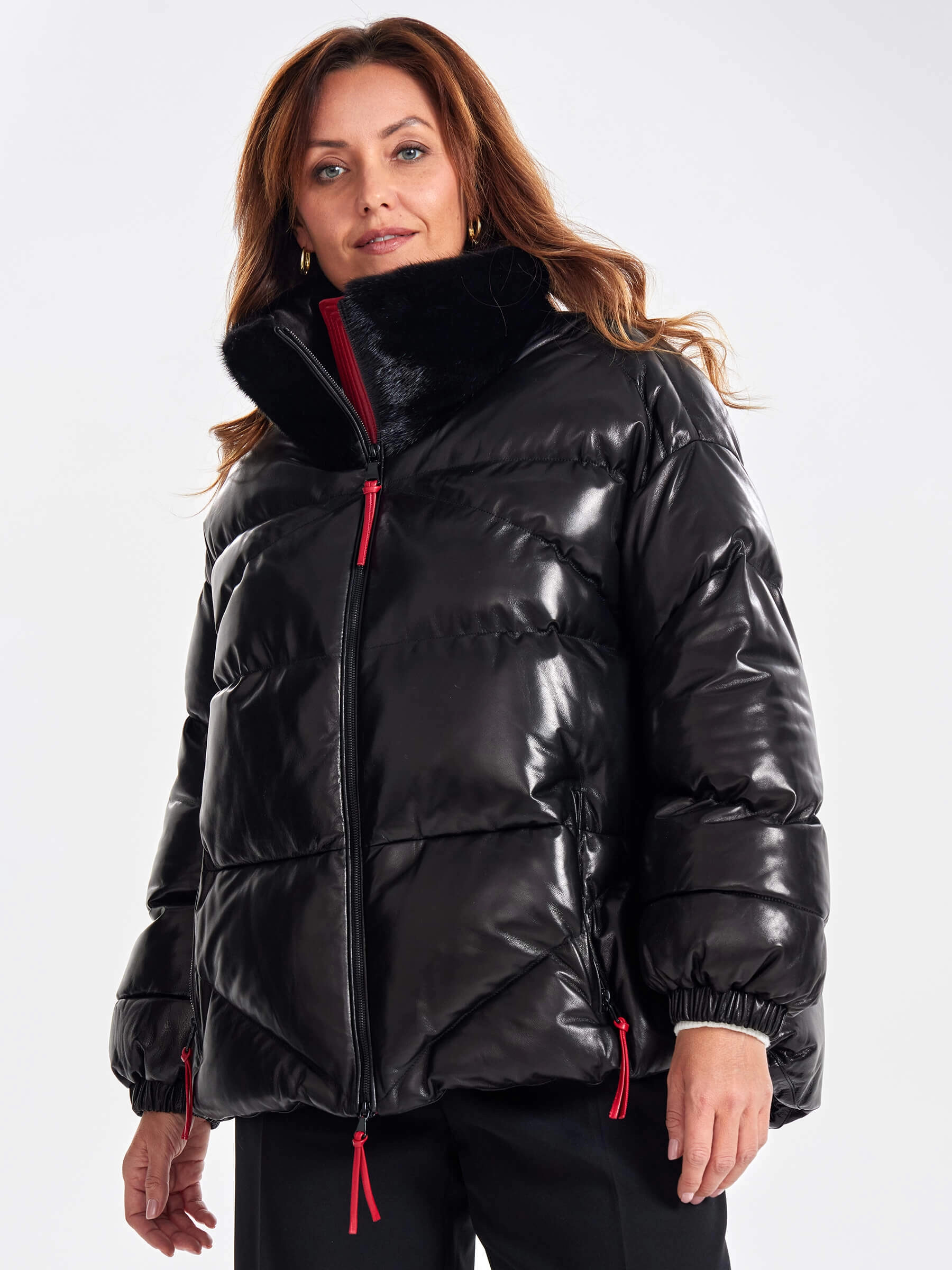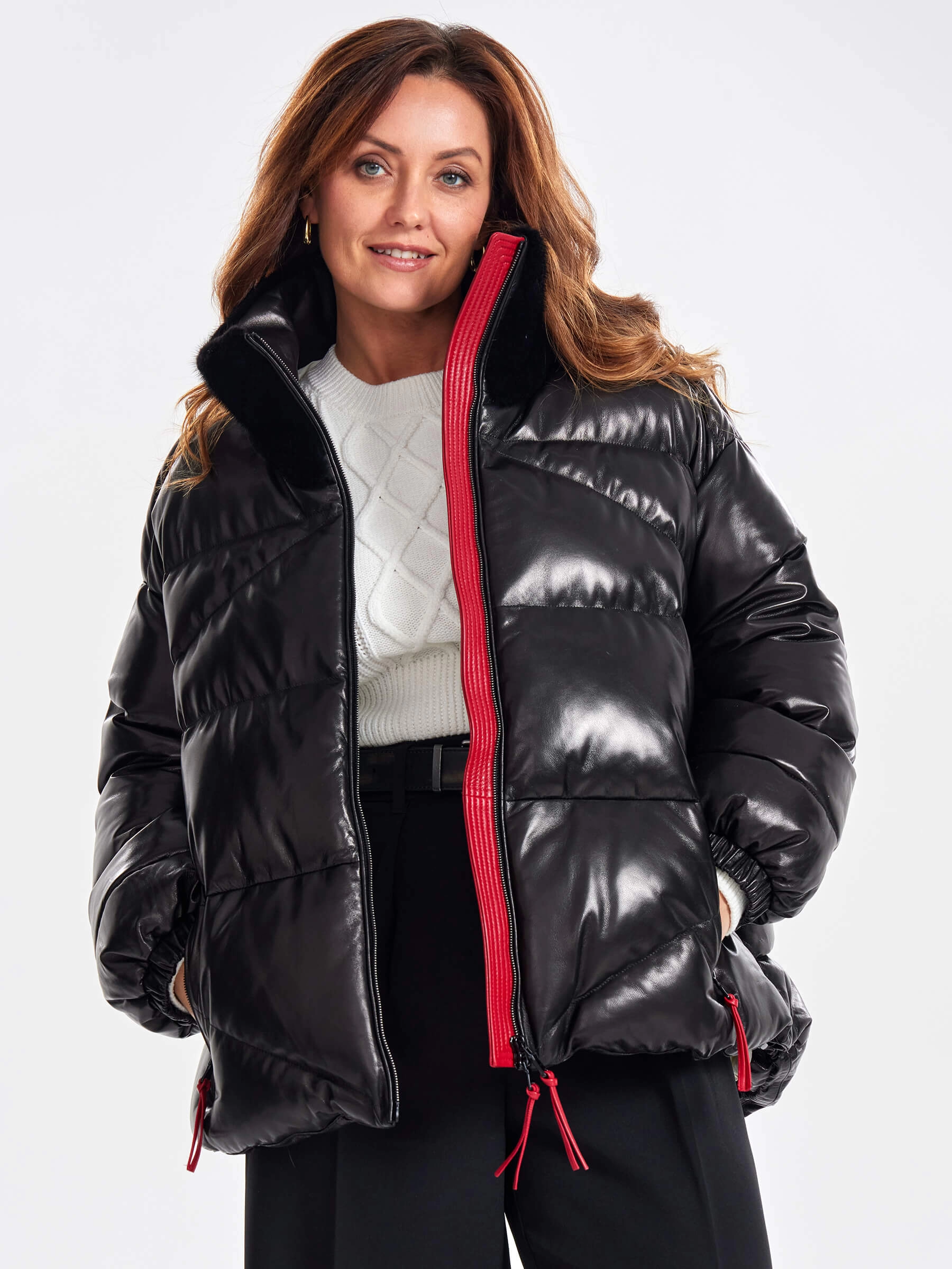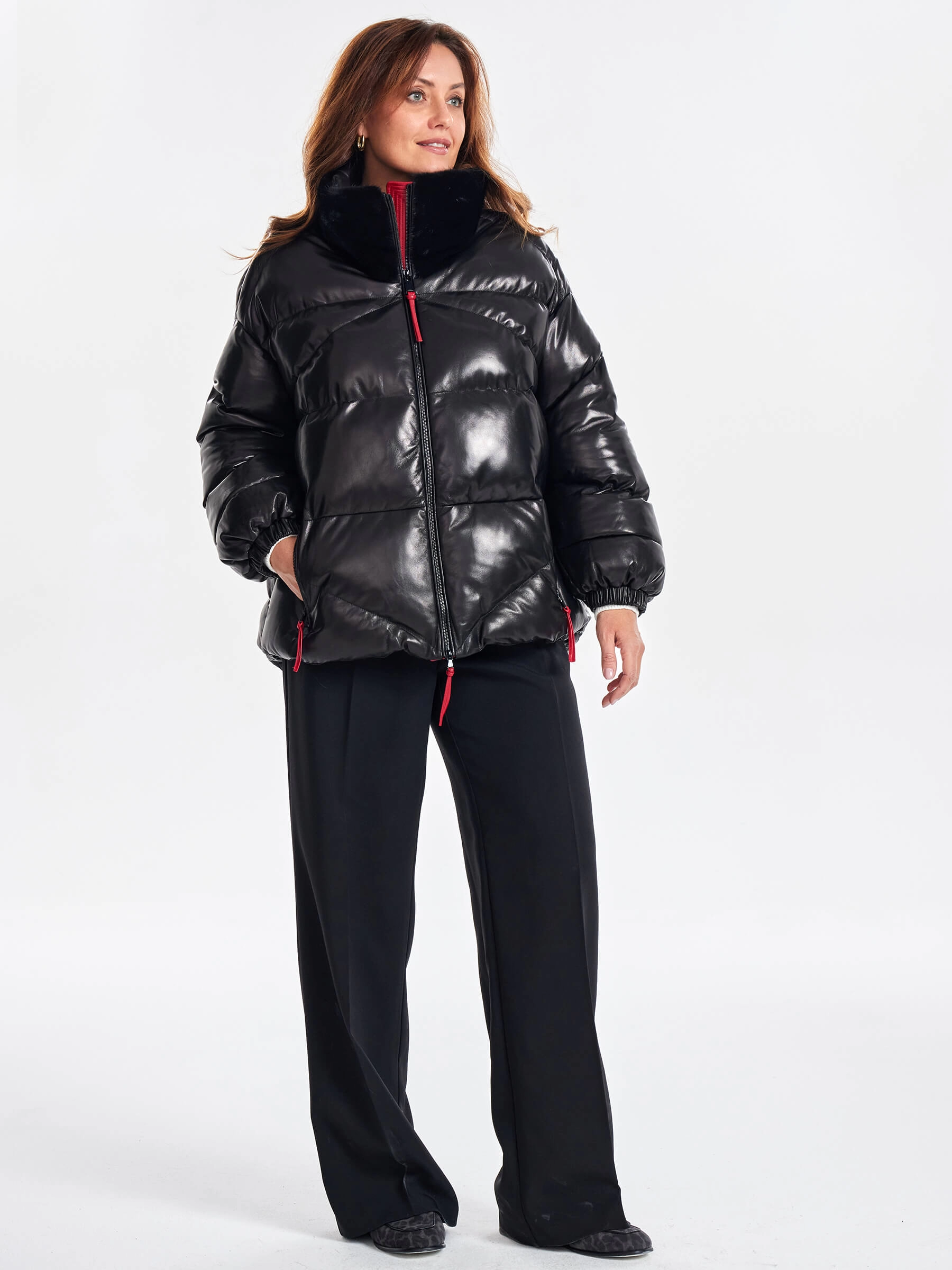 Короткая кожаная куртка из натуральной мягкой кожи премиум класса станет отличным спутником для прогулок в холодную погоду. Немецкий утеплитель синтепон Френденберг обеспечит отличную теплоизоляцию, превосходную паропроницаемость, простой уход. Объемную модель с внутренними кулисками дополнили высоким воротником-стойка из нежного меха норки. Глубокие врезные карманы как и само изделие застегиваются крупными молниями.