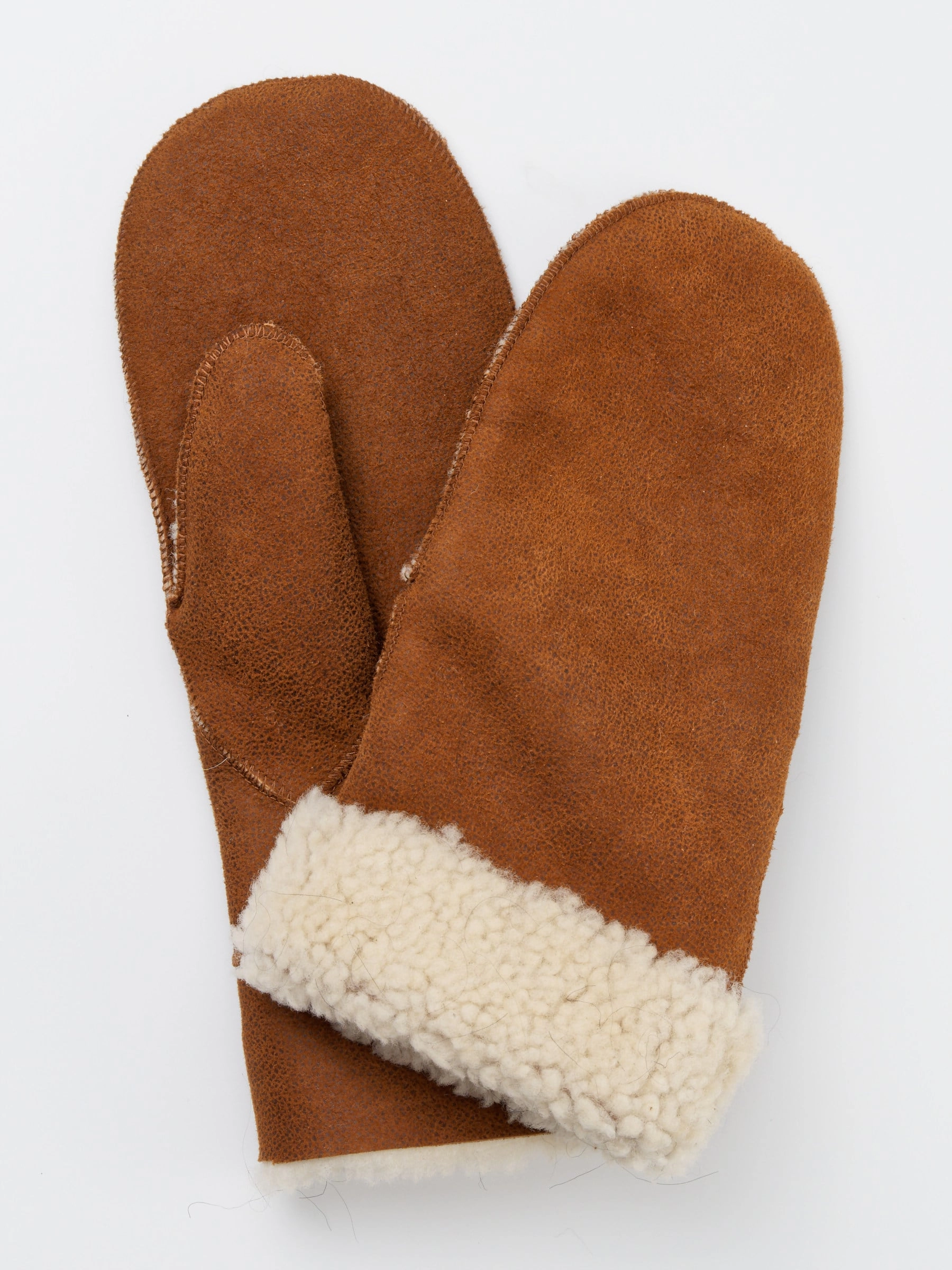 Варежки из овчины меховой женские, табачные, размер One Size, артикул 20360