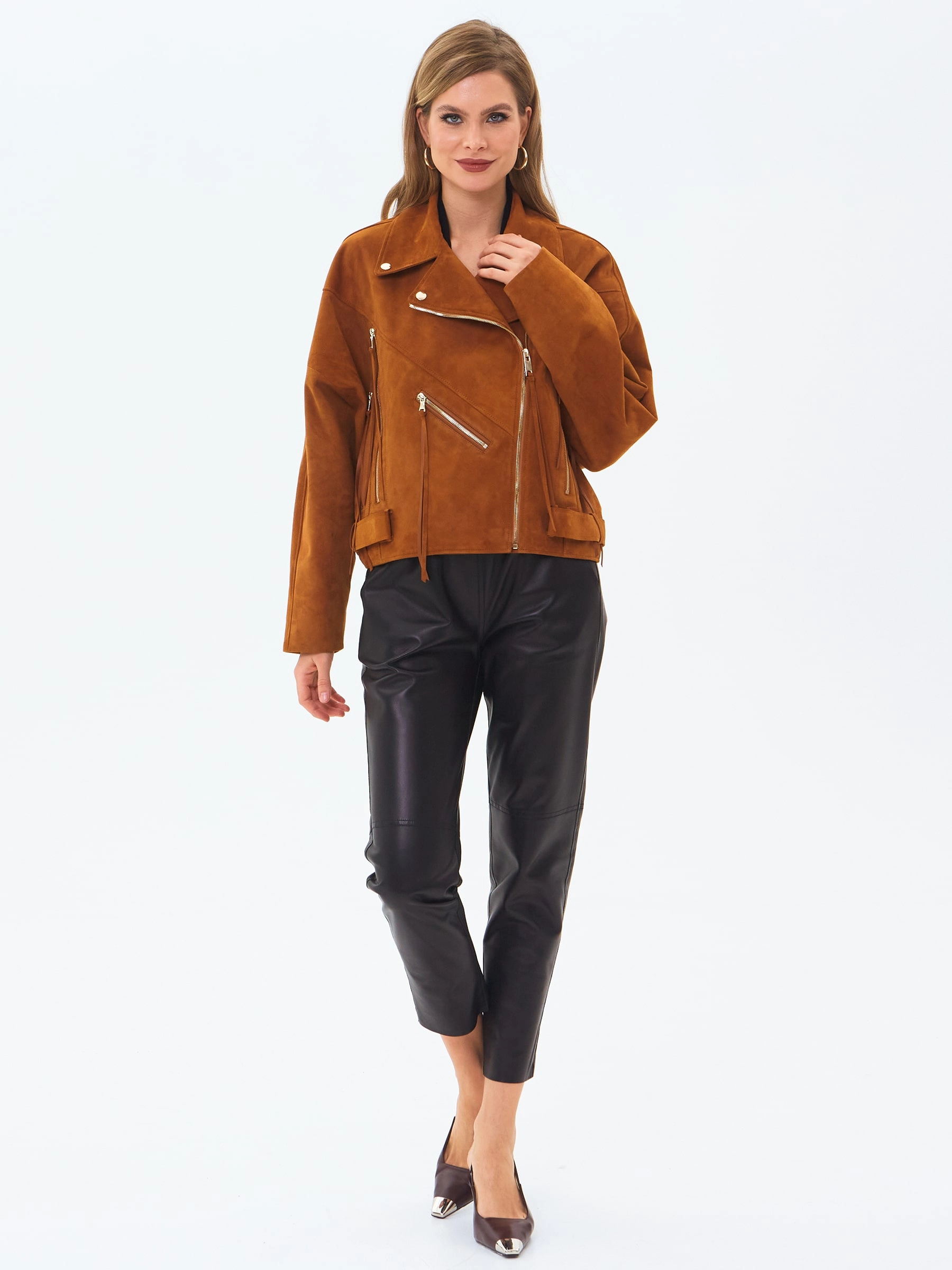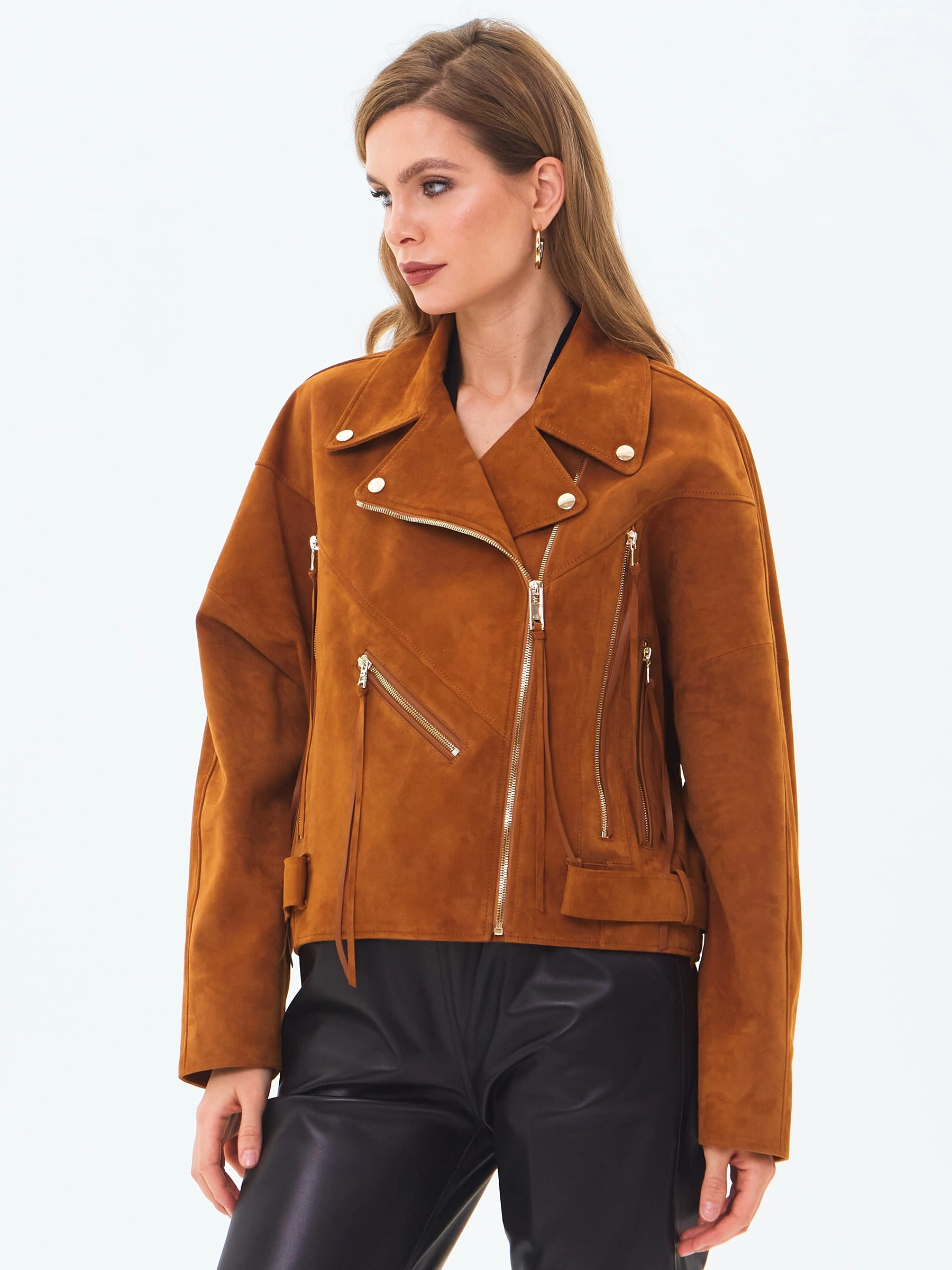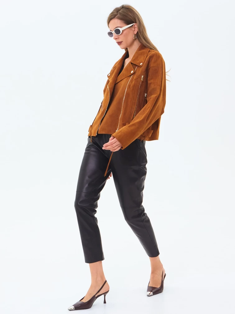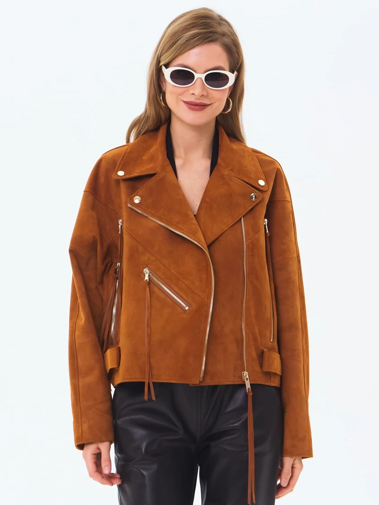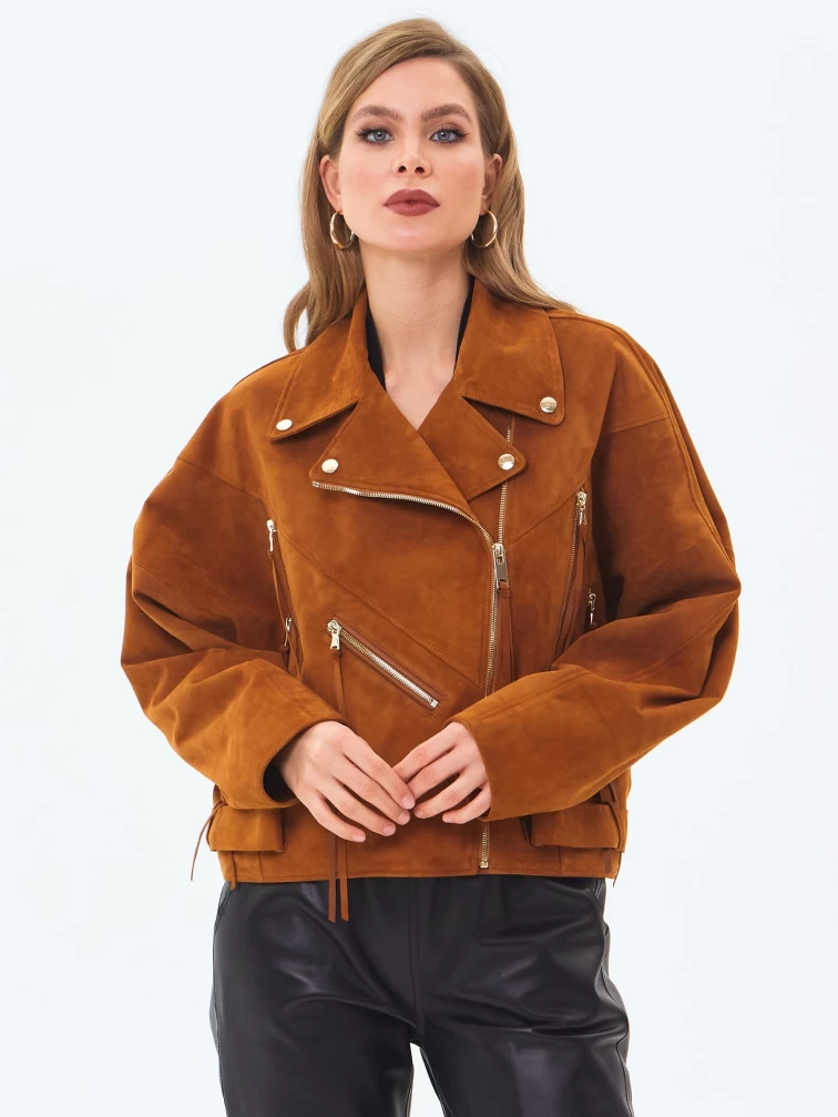 Замшевая короткая куртка косуха для женщин премиум класса 3051з, виски, размер 46, артикул 23410