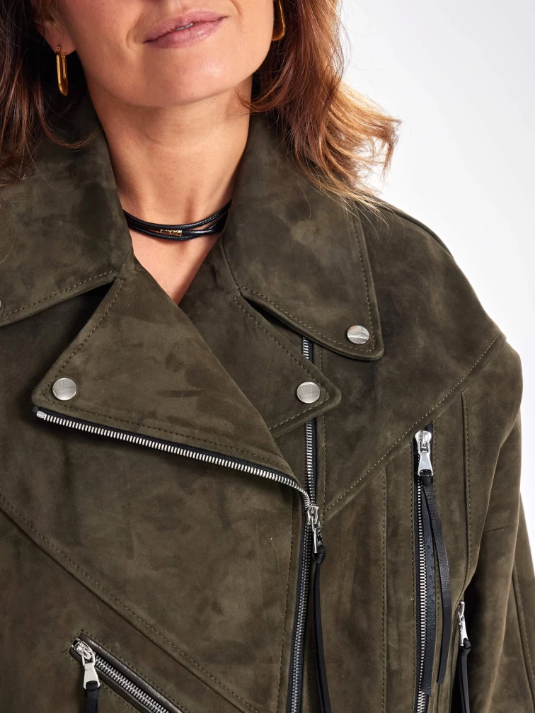 Замшевая короткая куртка косуха для женщин премиум класса 3051з, хаки, размер 44, артикул 23420