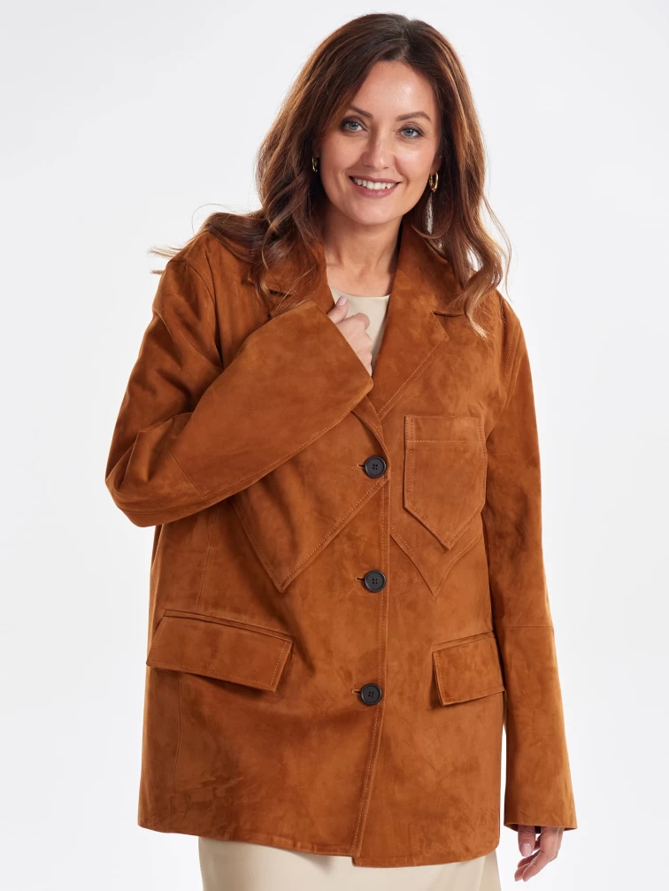 Замшевый пиджак для женщин премиум класса 3069з, виски, размер 44, артикул 24110