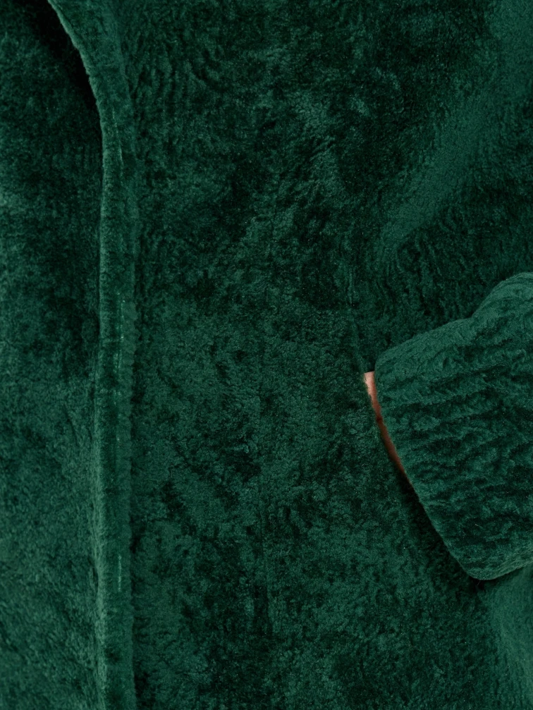 Зеленая дубленка из астрагана 58мех, размер 46, артикул 64760