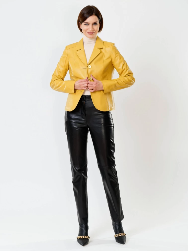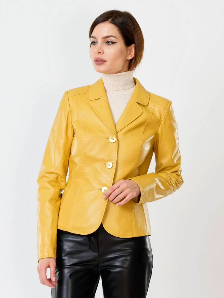 Желтый кожаный пиджак для женщин премиум класса 316рс, размер 44, артикул 90090