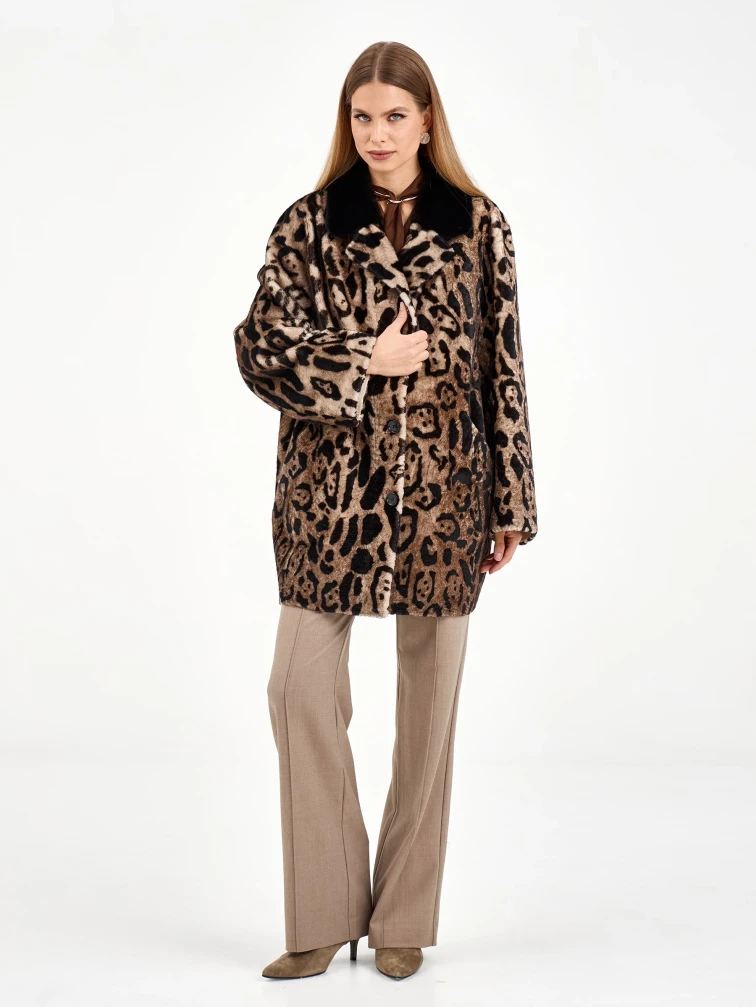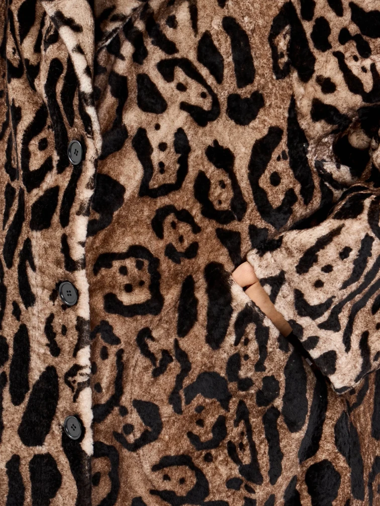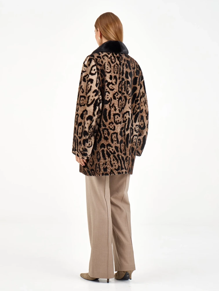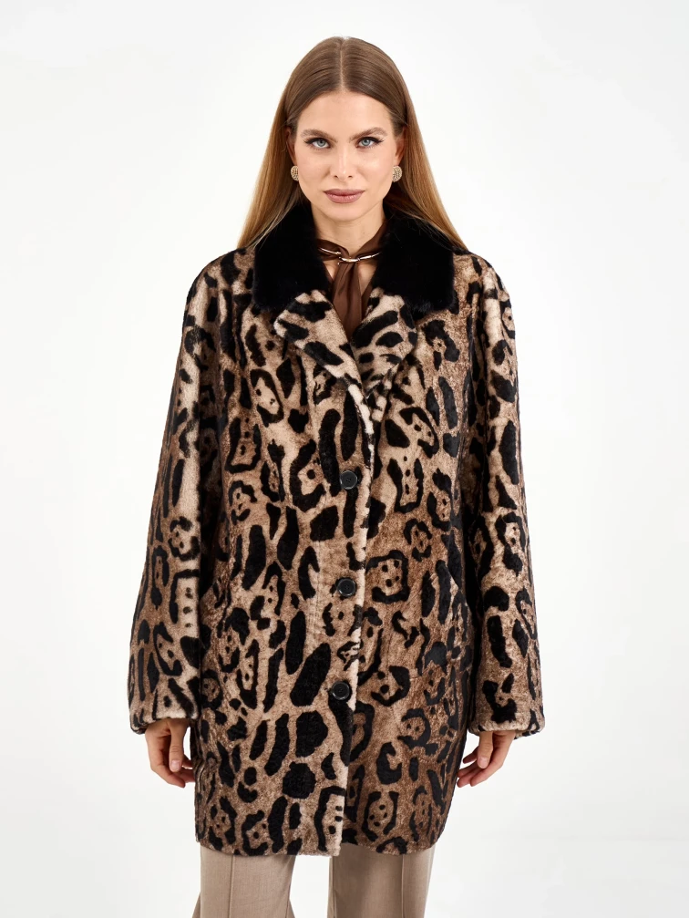 Эта удлиненная дубленка свободного кроя из натуральной овчины с леопардовым принтом сочетает в себе дерзость и элегантность. Английский воротник с отделкой из меха норки и лацканы из овчины под леопарда создают игру фактур. Рекомендация: наденьте ее с однотонной основой — темными джинсами, водолазкой и сапогами на каблуке, чтобы образ получился стильным и сбалансированным. Идеальная модель для создания модного образа с акцентом.