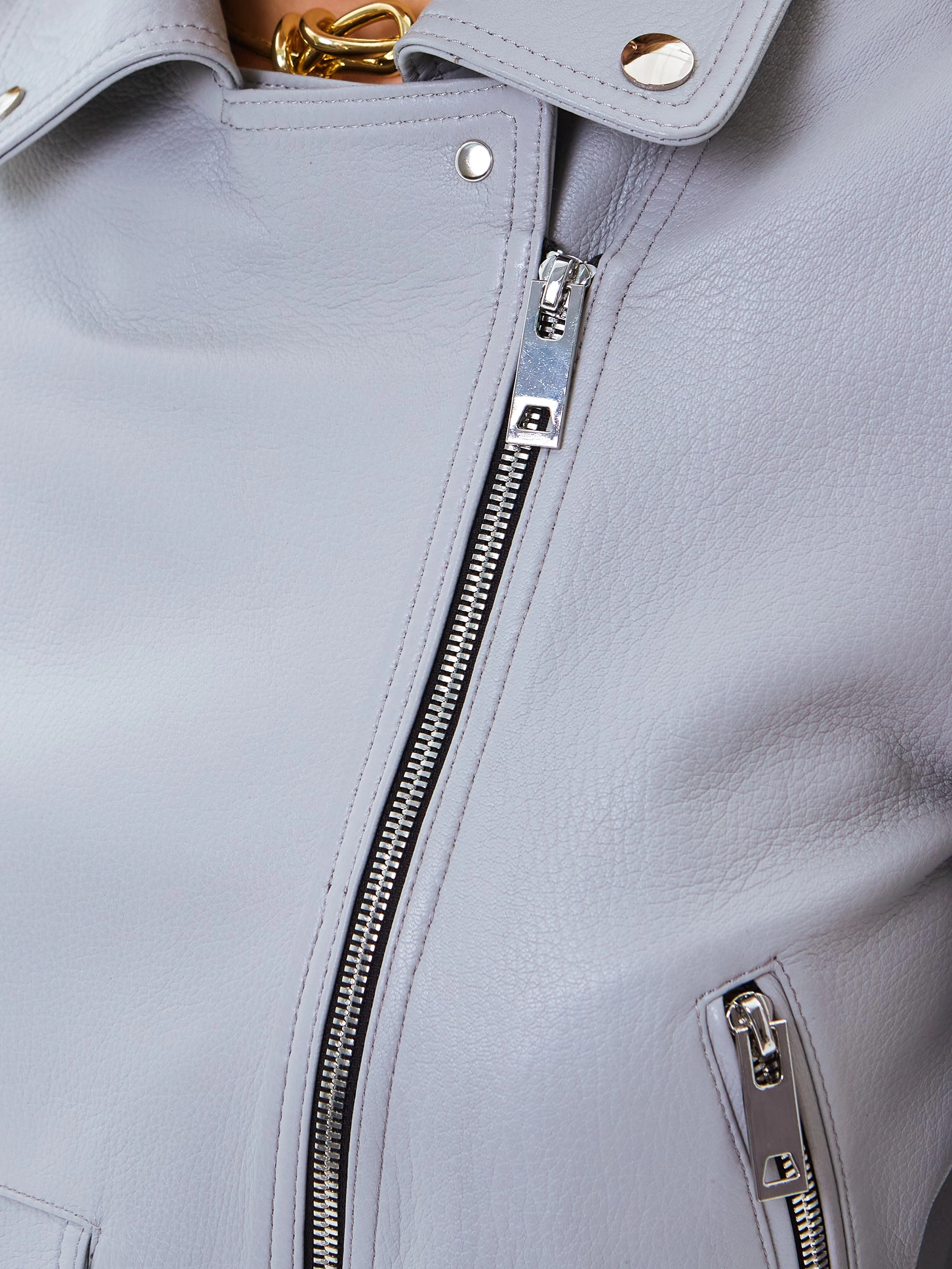 Женская кожаная куртка косуха с поясом премиум класса 3080, серая, размер 42, артикул 24530