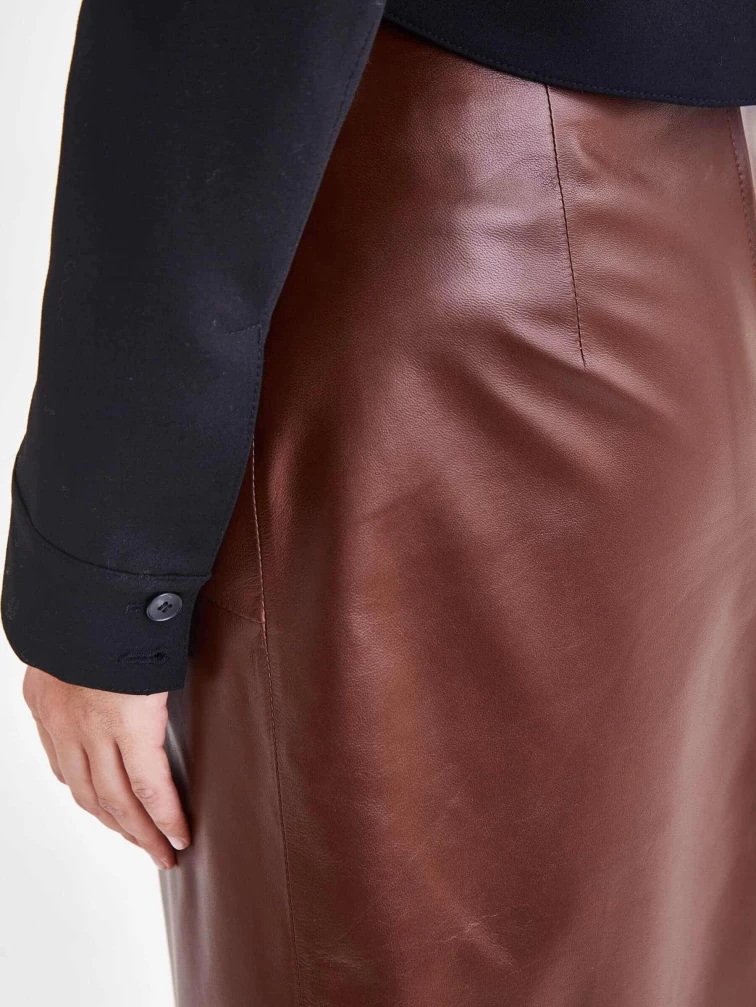 Юбка миди из натуральной кожи 15, табачная, размер 44, артикул 85890
