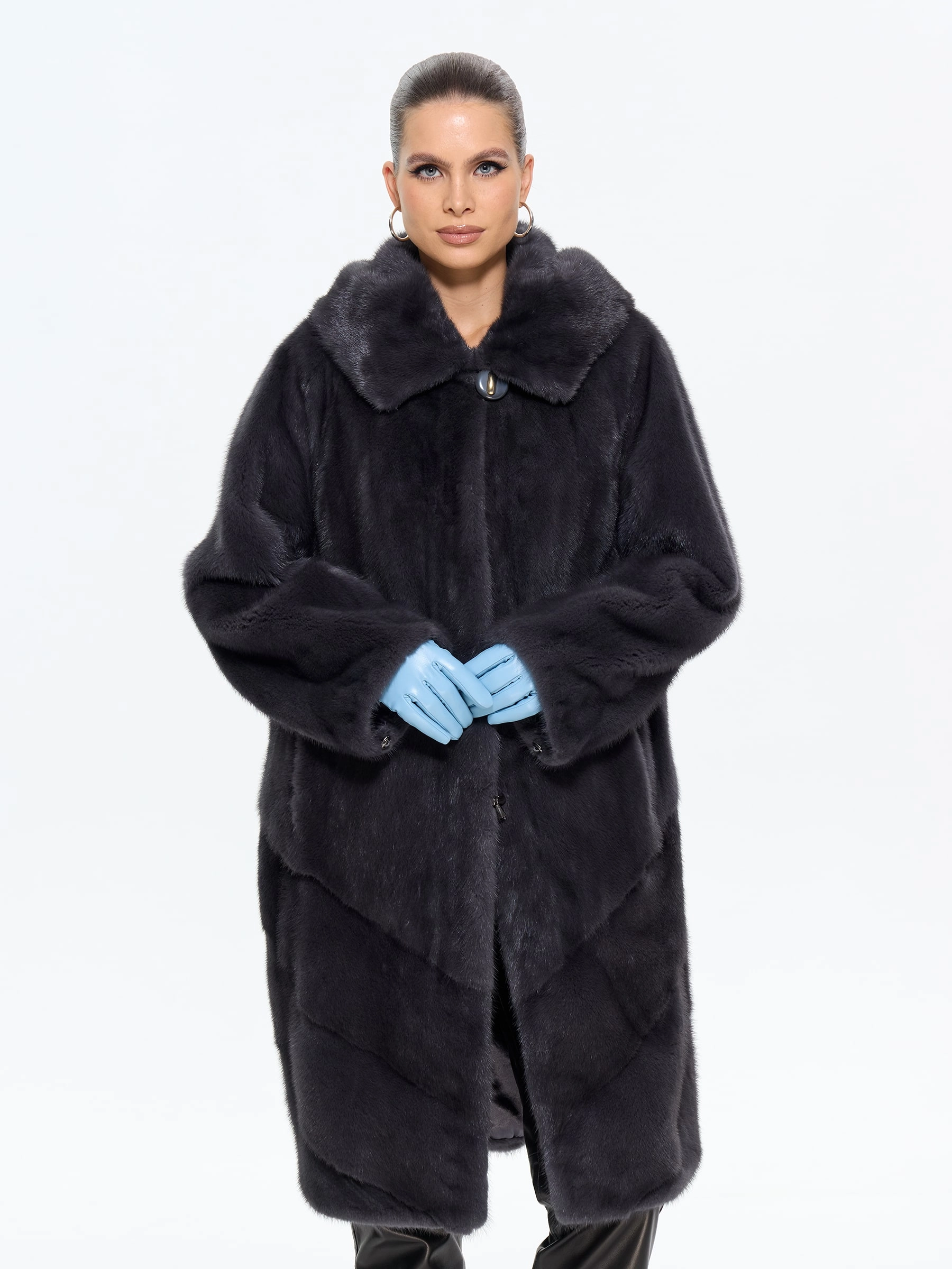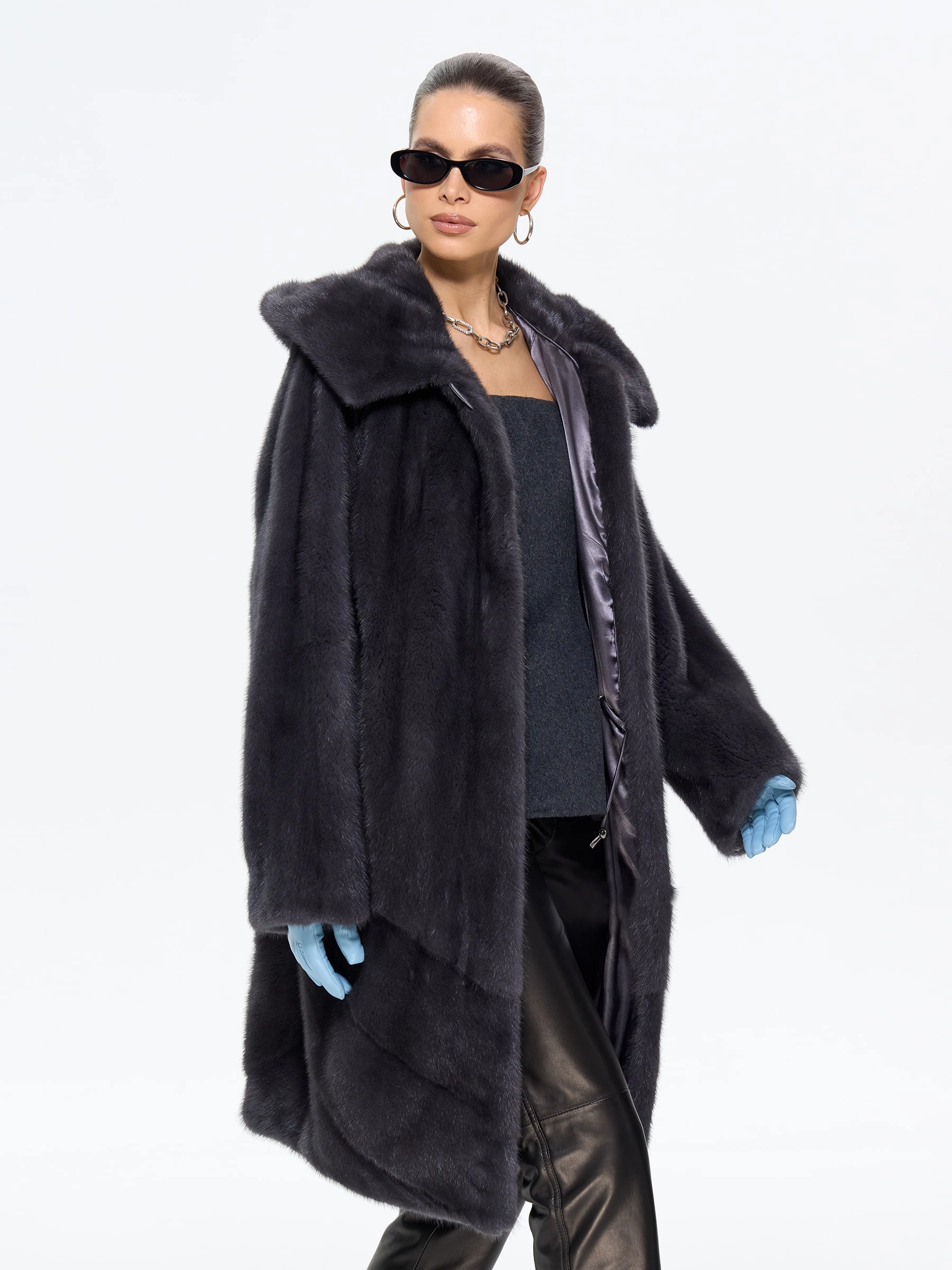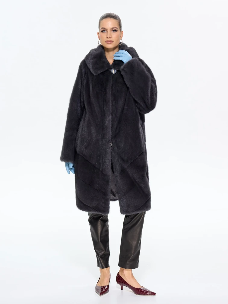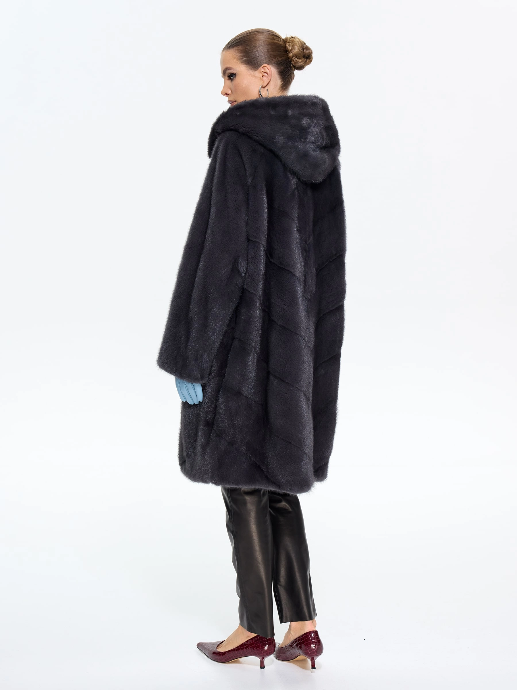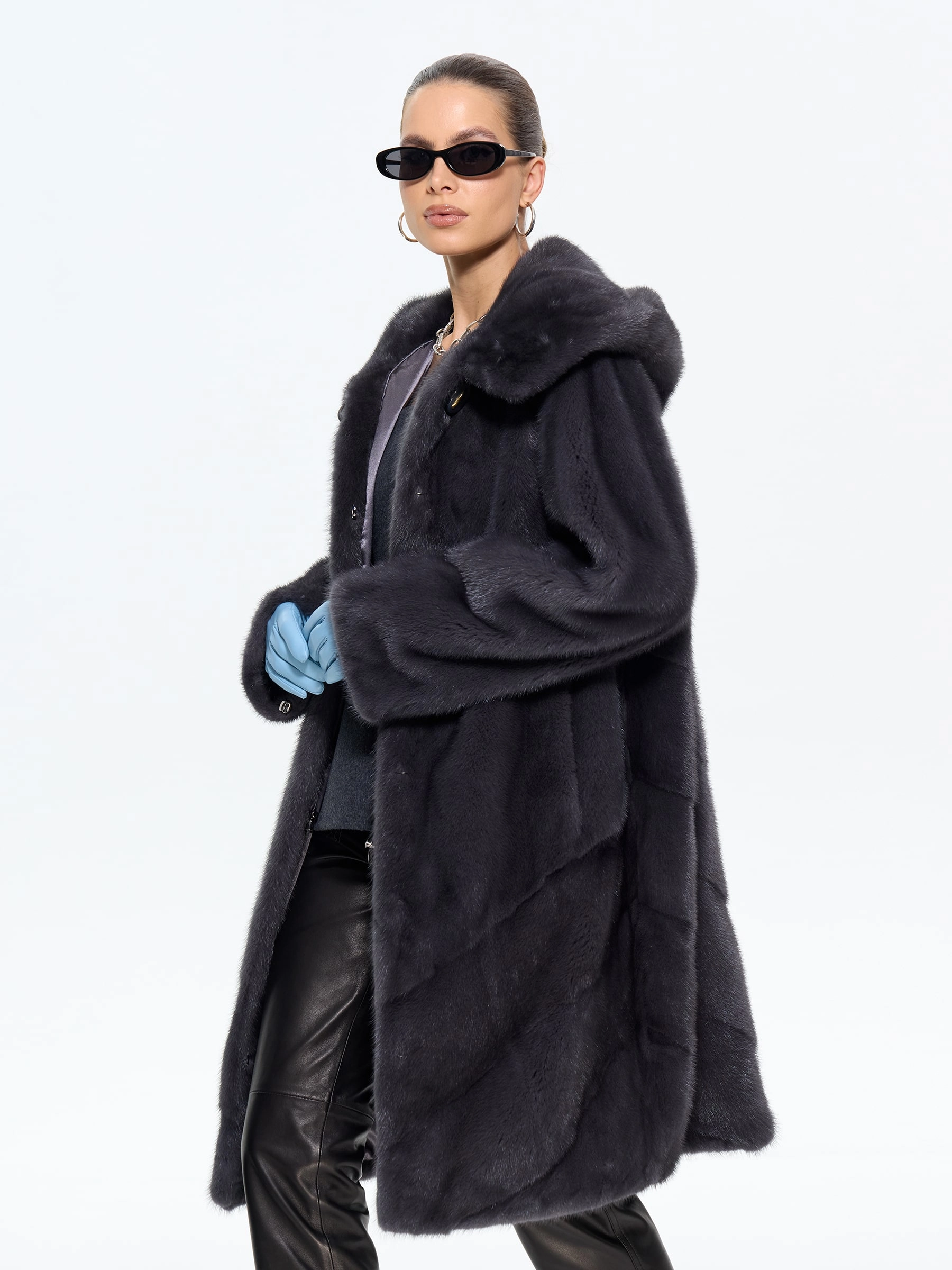 Женская норковая шуба с капюшоном М-101-9- 708, графитовая, размер 52, артикул 65370
