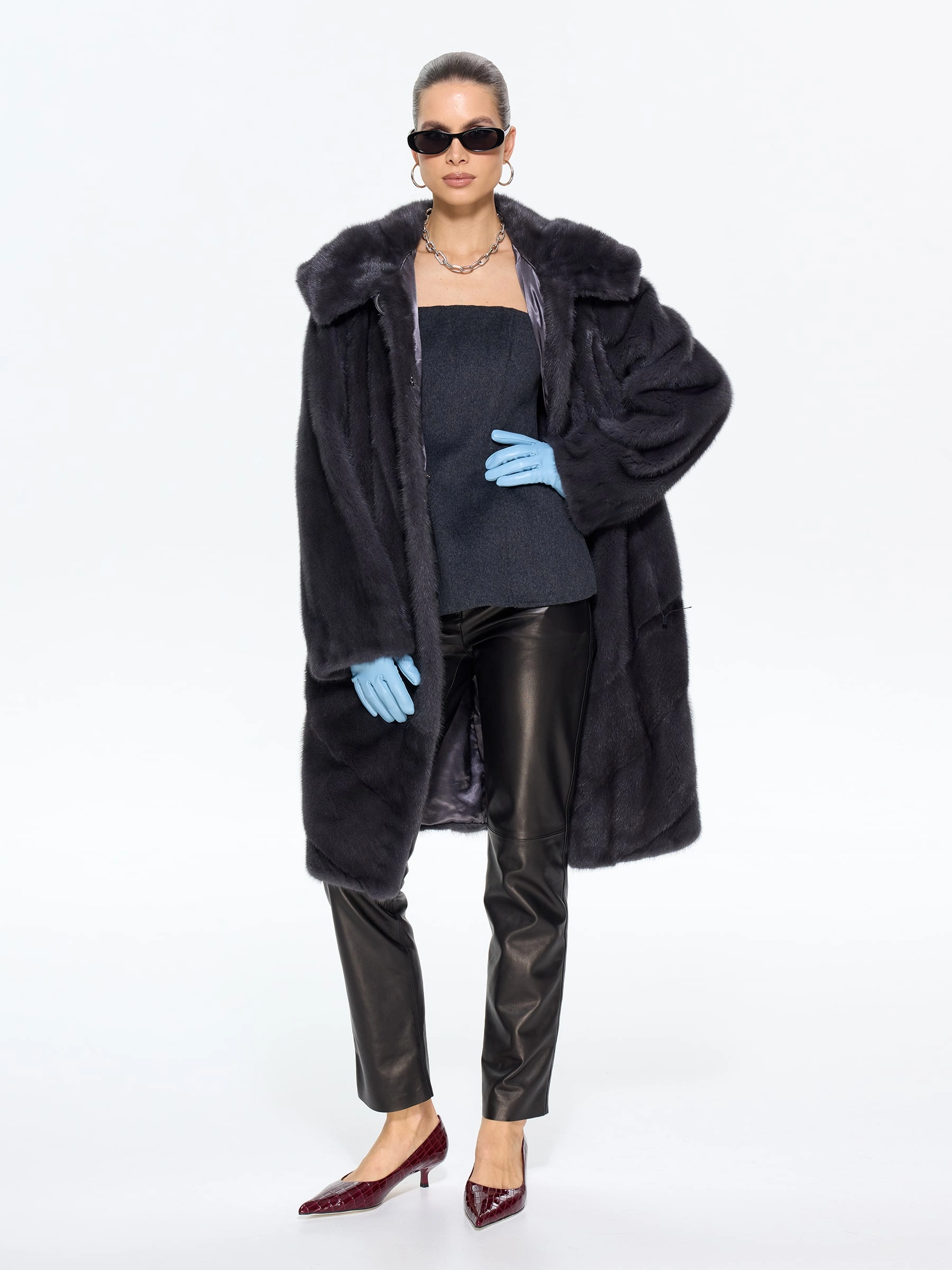 Подарите себе роскошь классики с этой элегантной шубой из густого меха норки премиум-класса с капюшоном. Модель прямого силуэта длиной 100 см искусно сшита с диагональной раскладкой меха на спине и по низу, что придает образу динамику и подчеркивает богатую текстуру меха. Практичность и утонченность сочетаются в деталях: глубокий капюшон, втачные рукава, клипсы и удобные боковые карманы. Стилисты рекомендуют носить эту шубу с джинсами и высокими сапогами для повседневного образа или с платьем-миди и сапогами-челси для элегантного выхода — она станет безупречной инвестицией в ваш стиль на долгие годы.