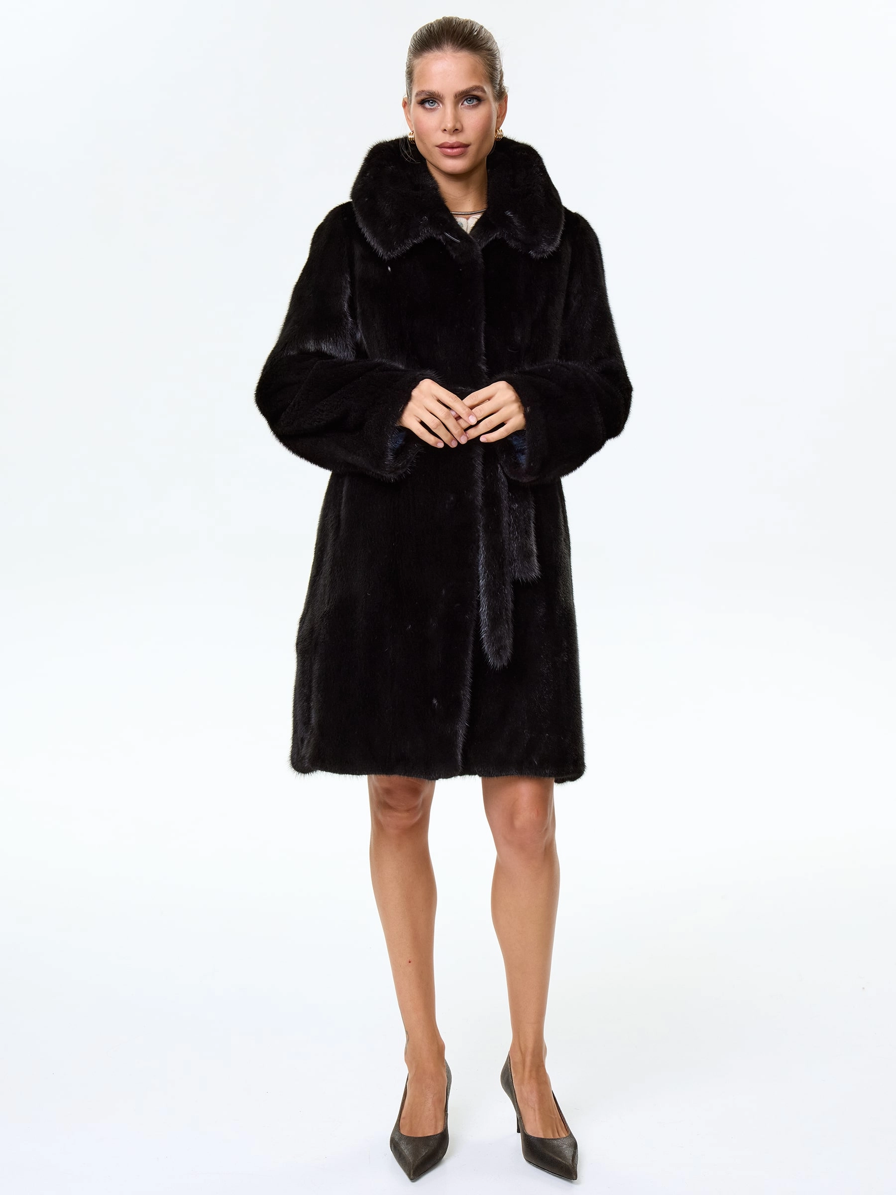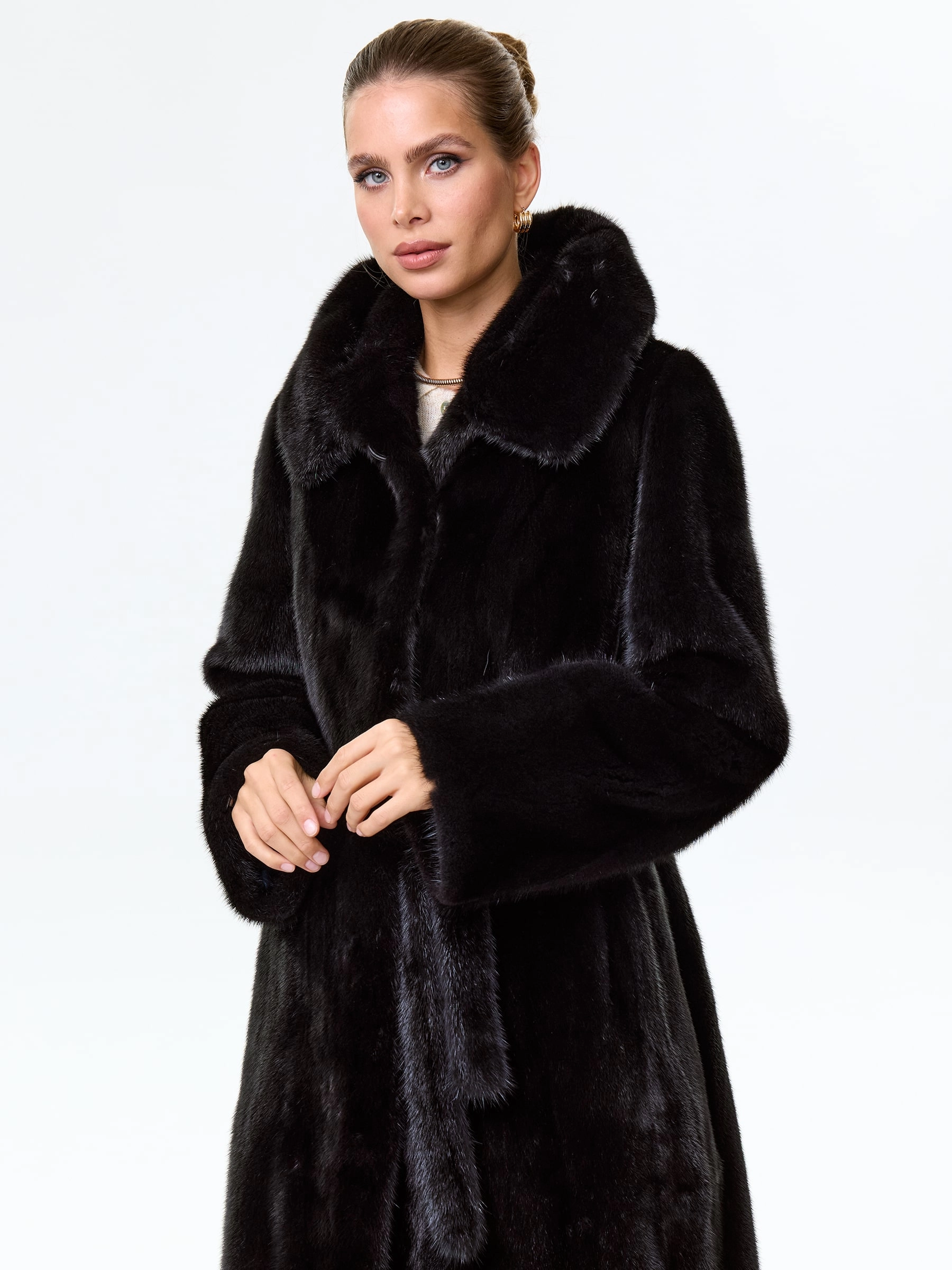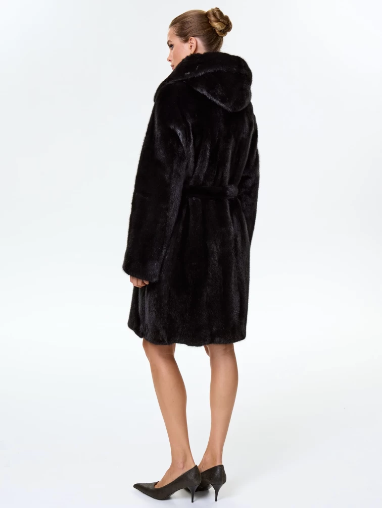 Товар женская норковая шуба с капюшоном премиум класса лина, черная, размер 48, артикул 34180 выполнен из норка с застежкой клипсы. Рассчитан на сезон: зима. Длина изделия 97 см, силуэт прямой.